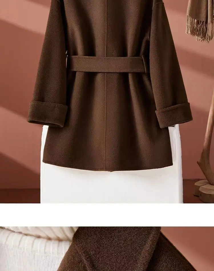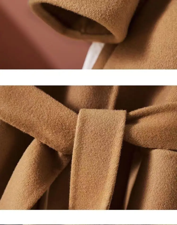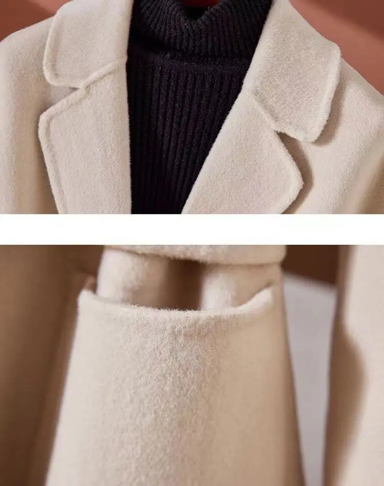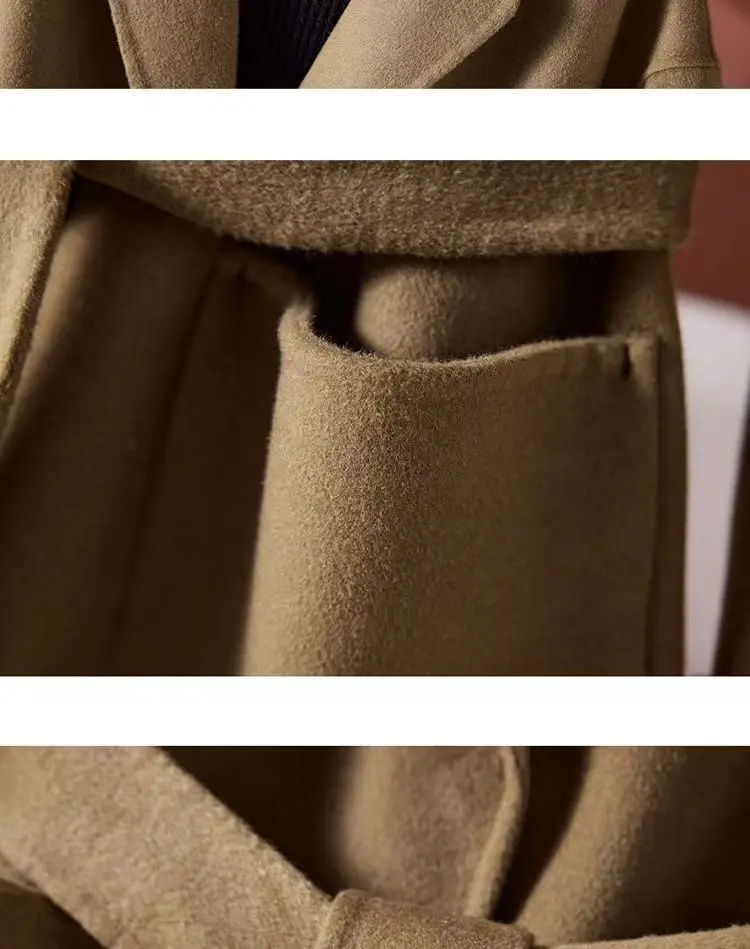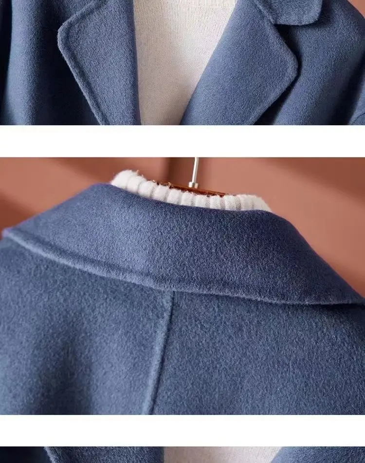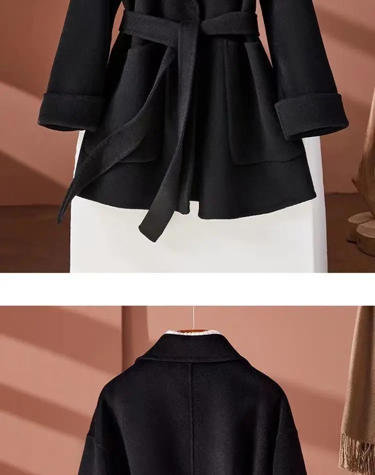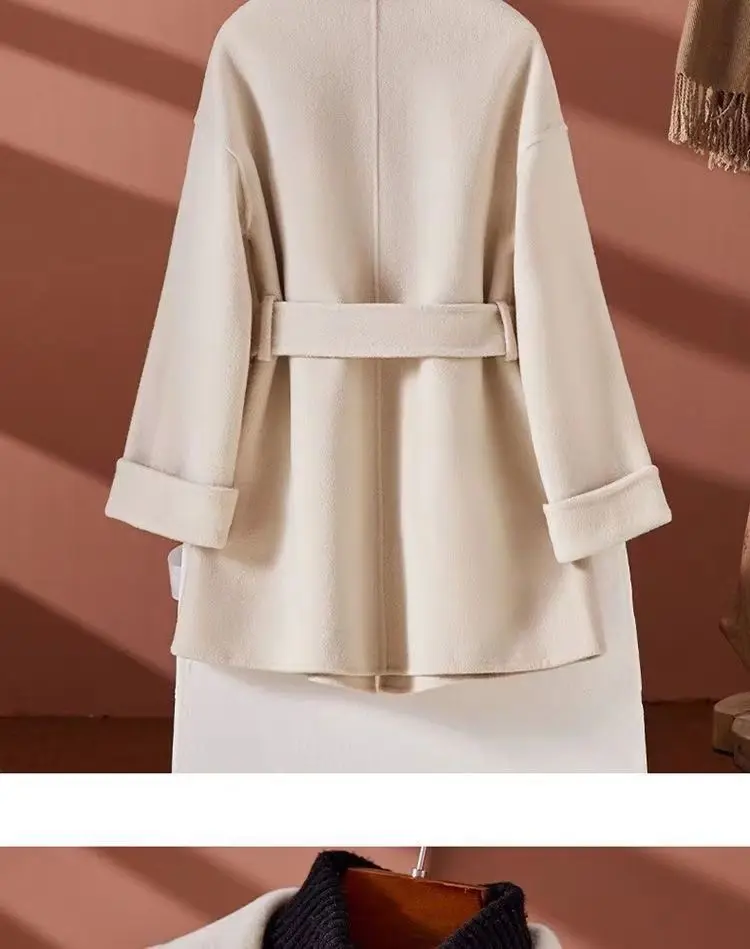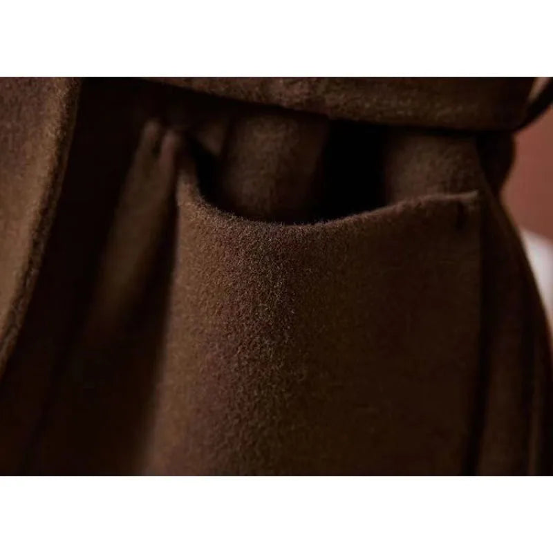 GETADME New Autumn Winter Double-Sided Wool Coat Women's Overcoat Fashion Long Suit Collar Loose Tie Leisure Wool Windbreaker Jacket