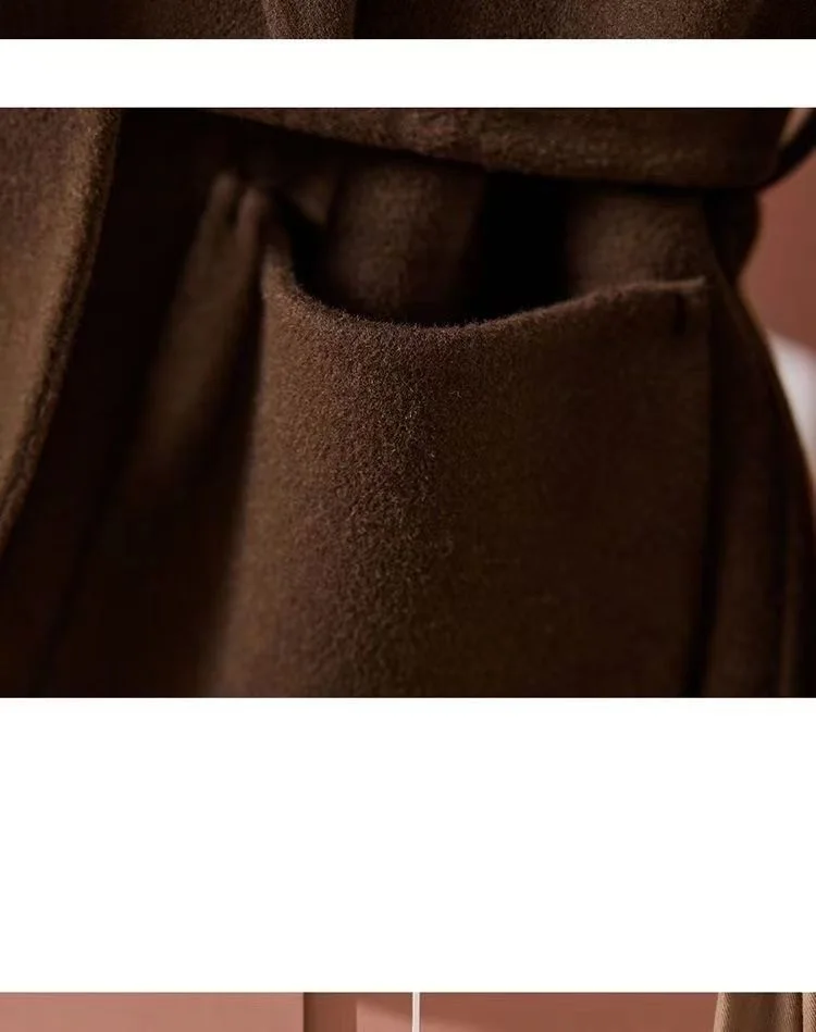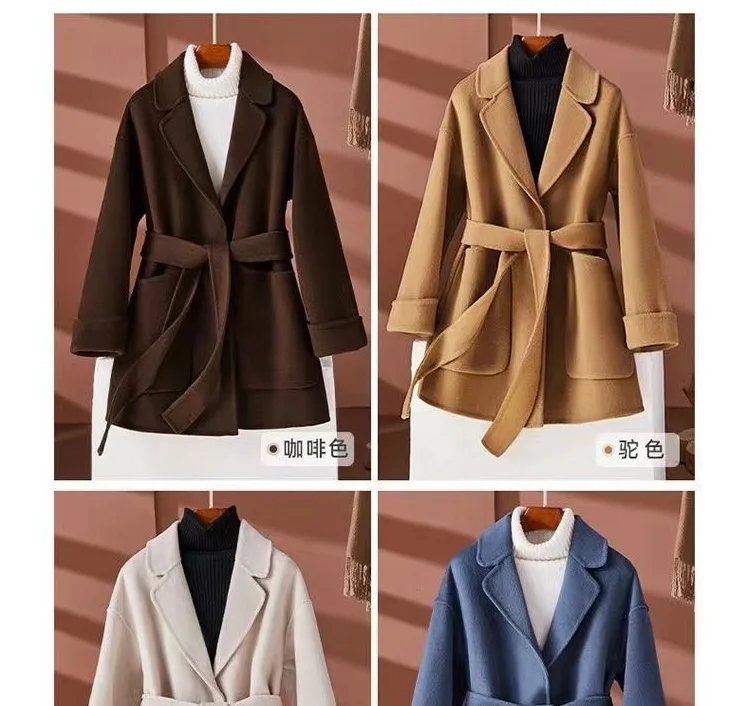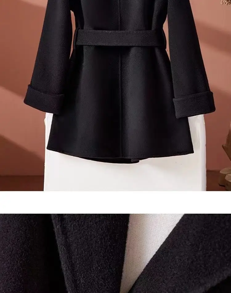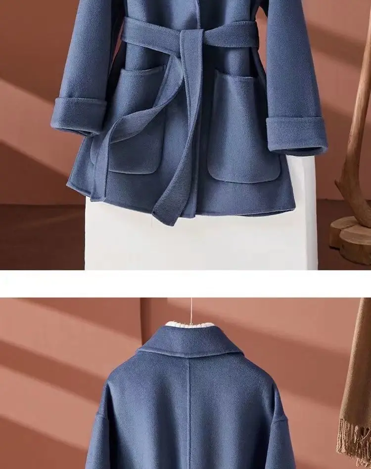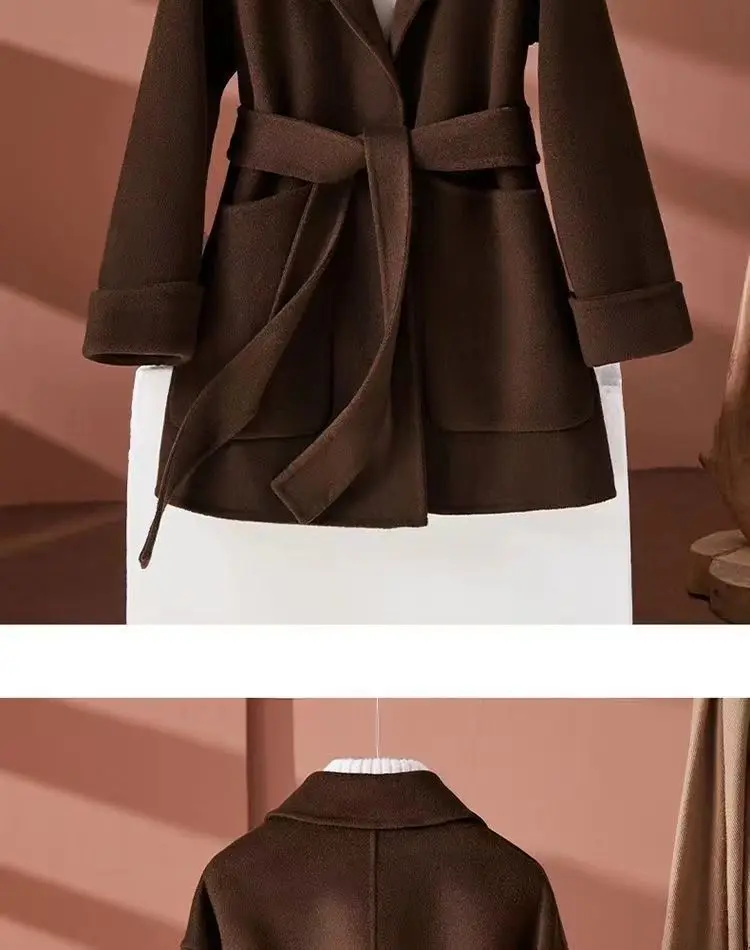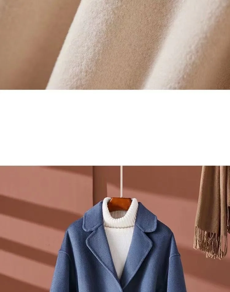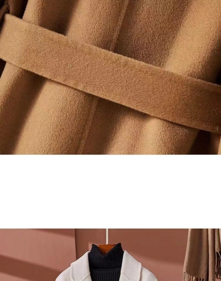 GETADME New Autumn Winter Double-Sided Wool Coat Women's Overcoat Fashion Long Suit Collar Loose Tie Leisure Wool Windbreaker Jacket