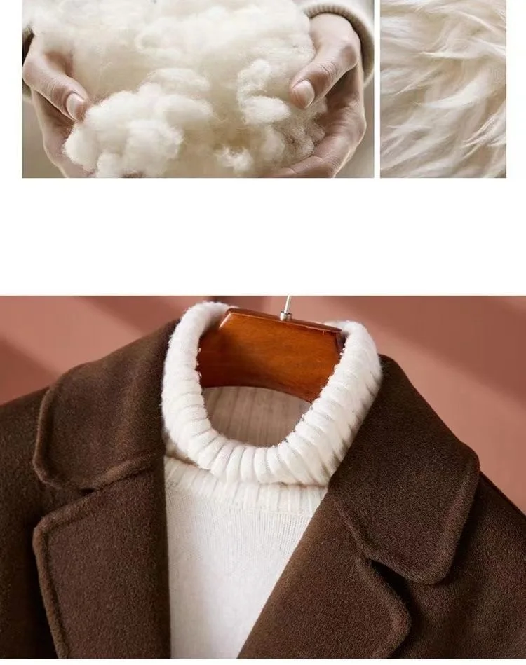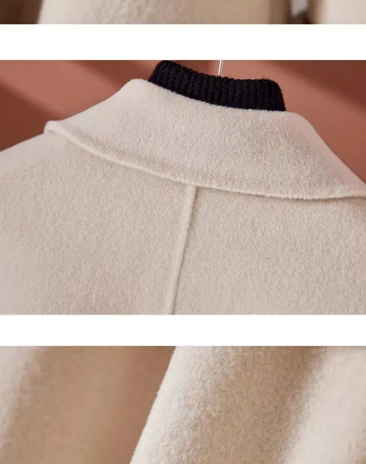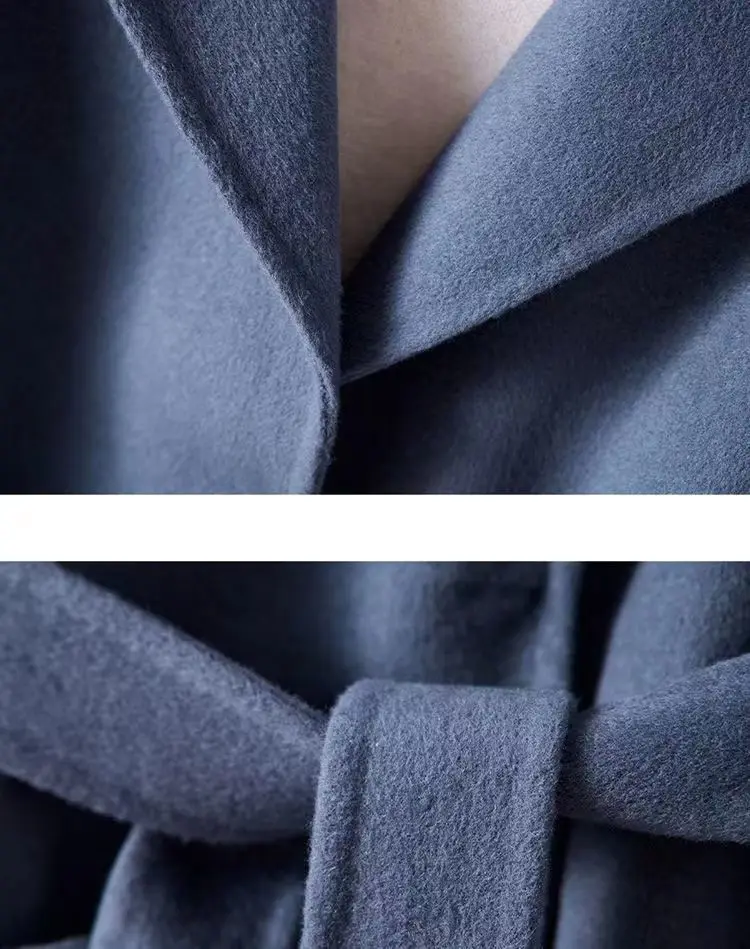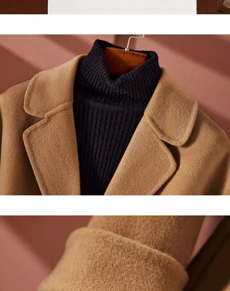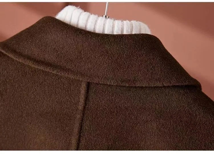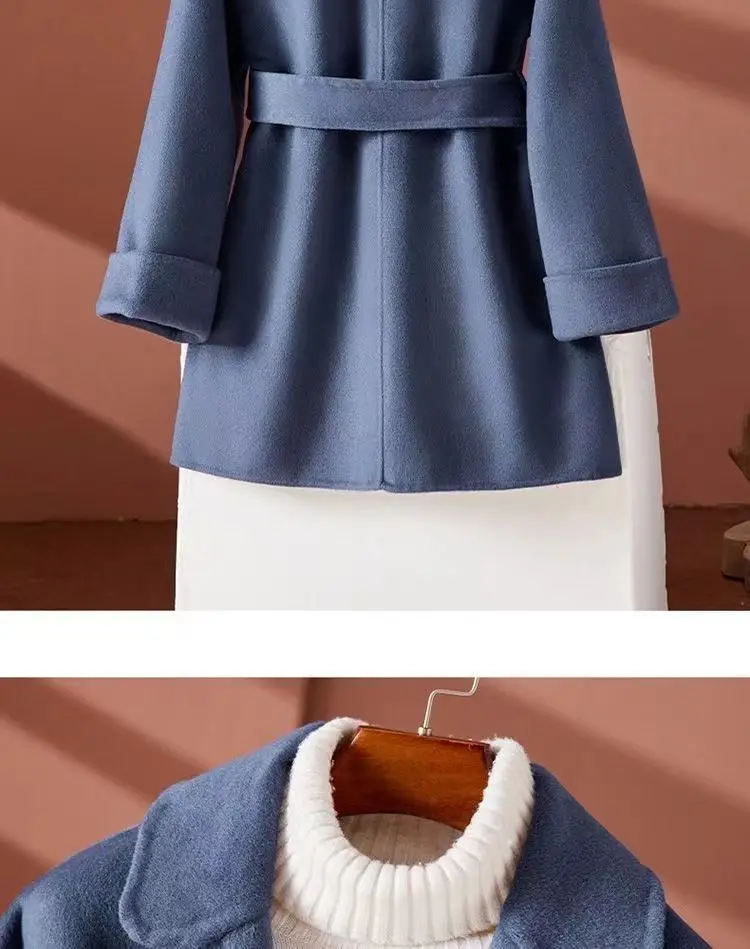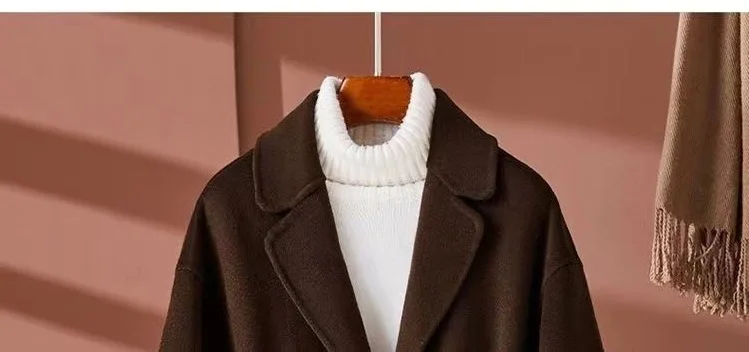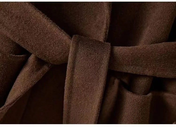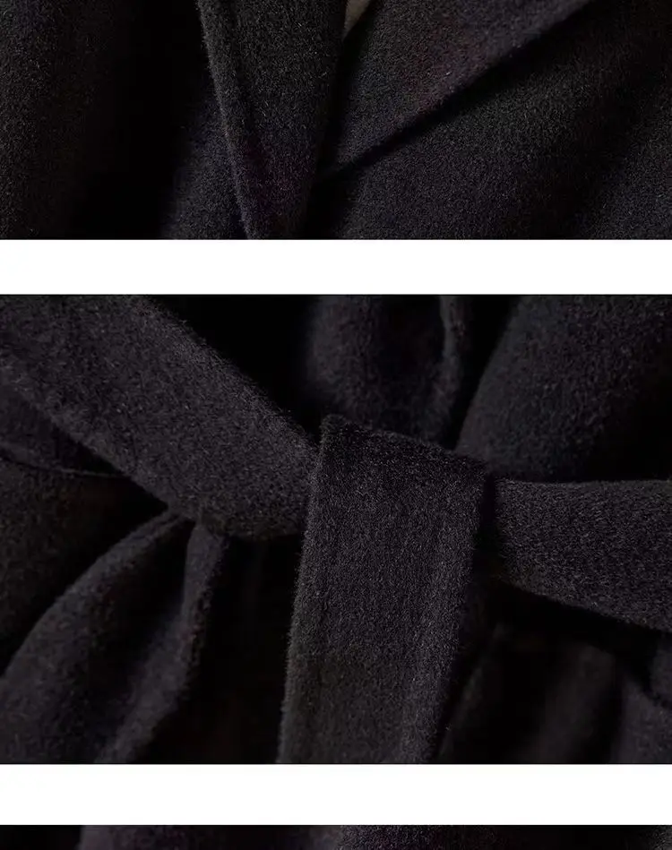 GETADME New Autumn Winter Double-Sided Wool Coat Women's Overcoat Fashion Long Suit Collar Loose Tie Leisure Wool Windbreaker Jacket