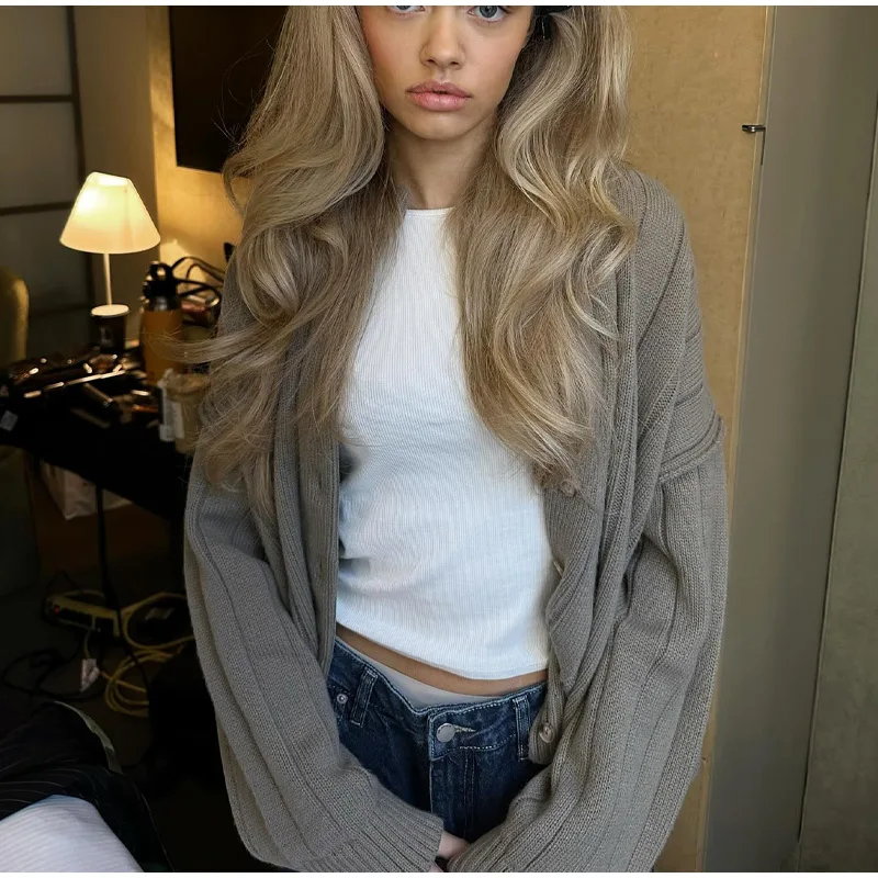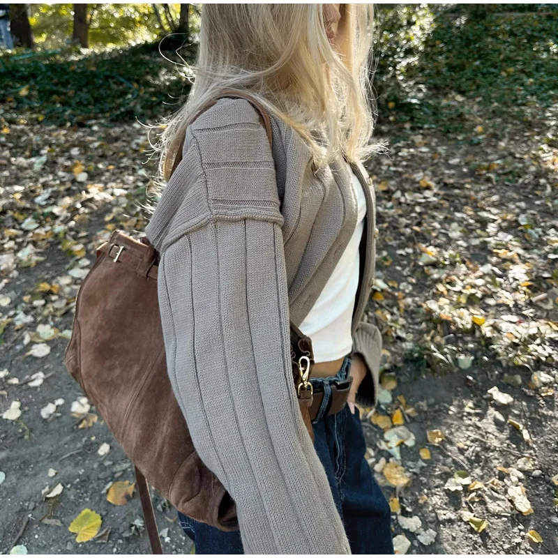 GETADME New Fashion Round Collar Knitted Cardigan For Women Casual Single Breasted Long Sleeve Loose Sweater 2024 Fall Ladies Streetwear