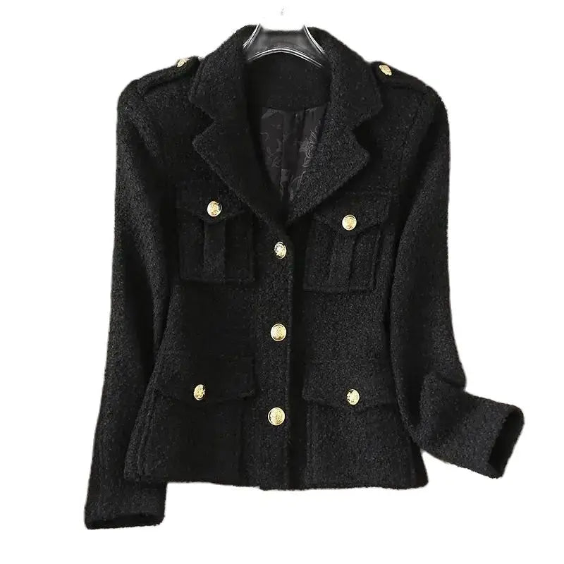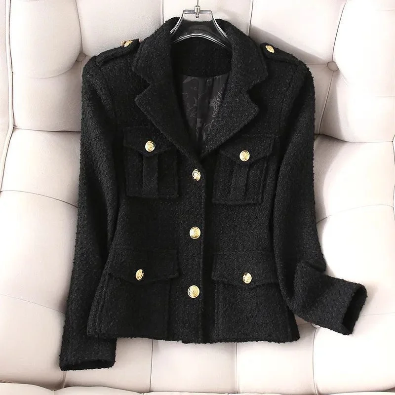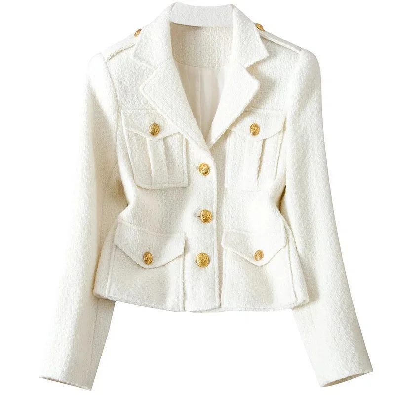 GETADME New Fashion White Blazer Suit Collar Small Fragrance Jacket High-Quality Tweed Coat Short Black Wool Outerwear Female Tops 4XL