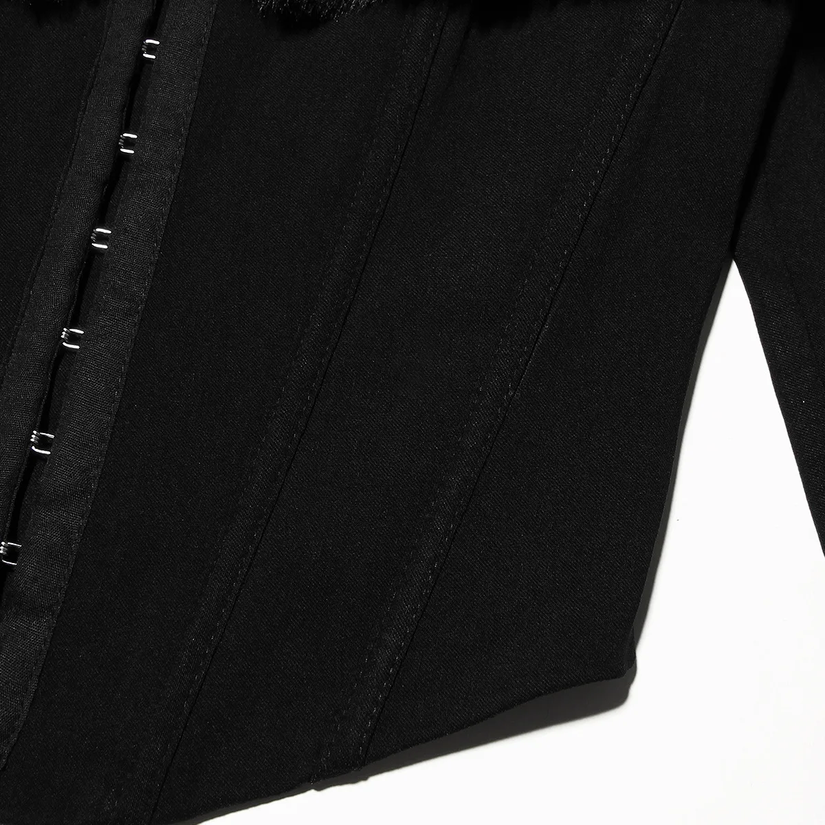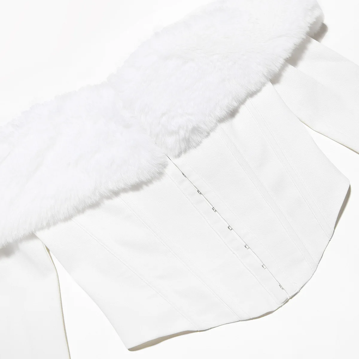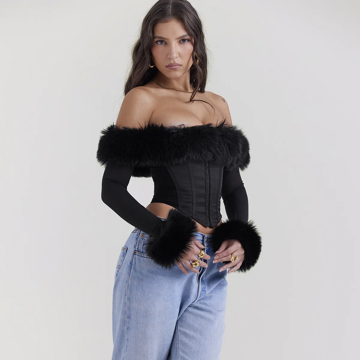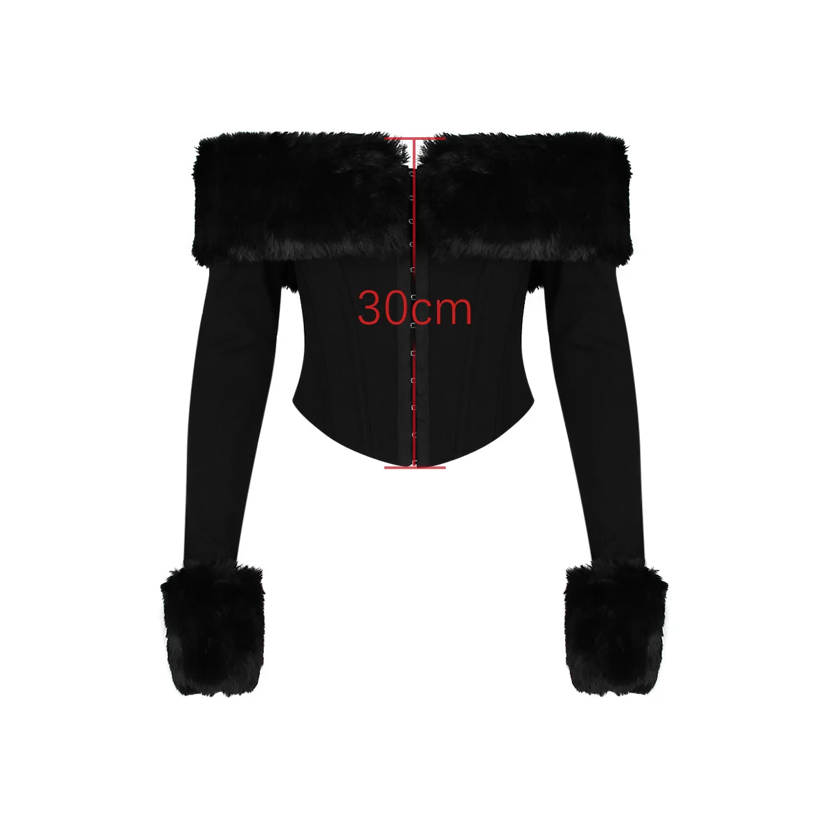 GETADME Oligai Long Sleeve Corset Top Faux Fur Collar Bodycon Cropped Top Sexy Black Elegant Off The Shoulder Blouse Women's Clothing