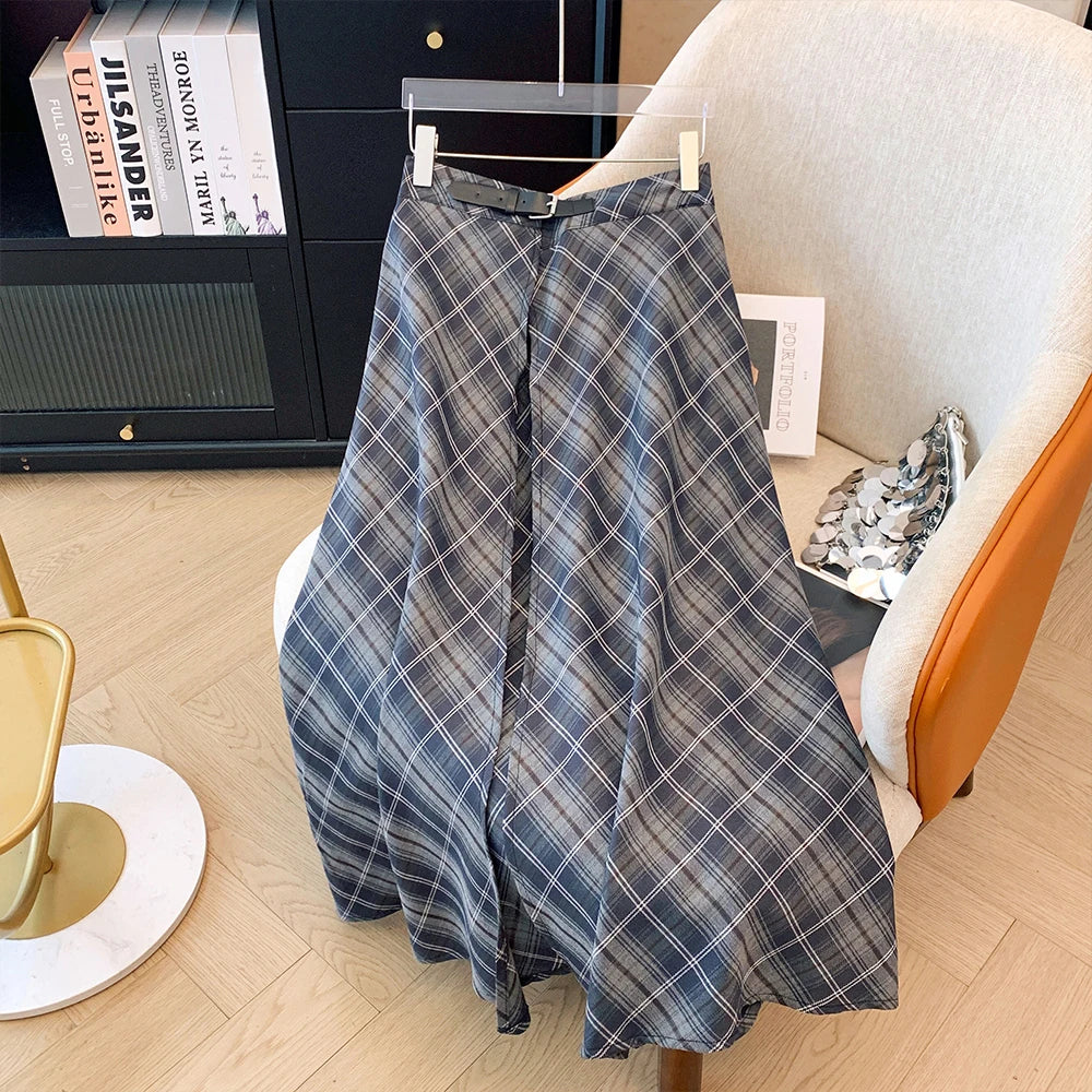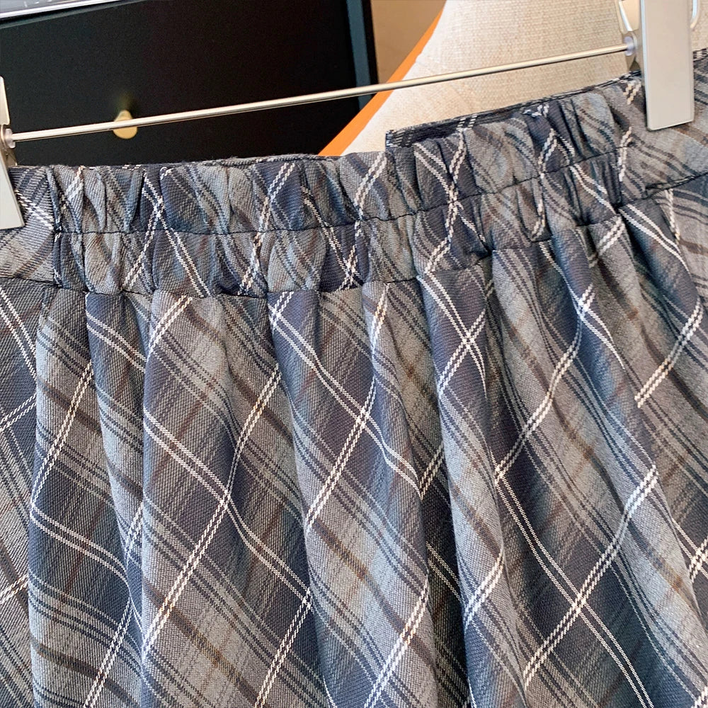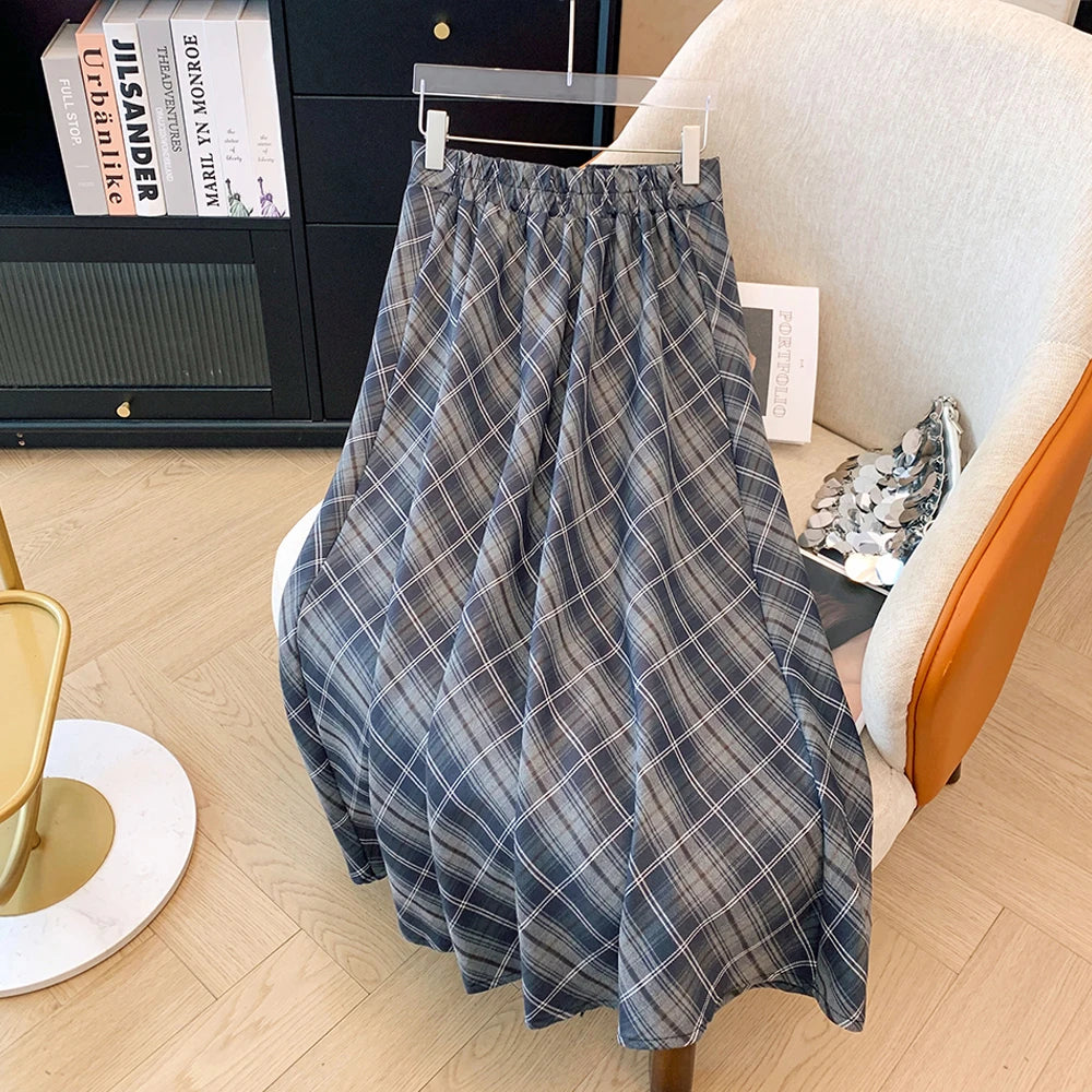 GETADME Plus-size women's spring summer autumn casual open skirt elastic waist loose decorative skirt commuter plaid skirt 2025 new