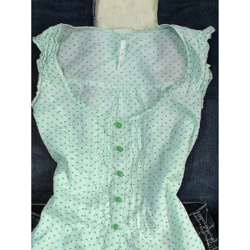GETADME Polka Dot T-shirt Slim Goth Sweet Punk Y2k Vintage Button Harajuku Korea O-Neck Kawaii Sleeveless Vest Crop Top 2000s Grunge Emo