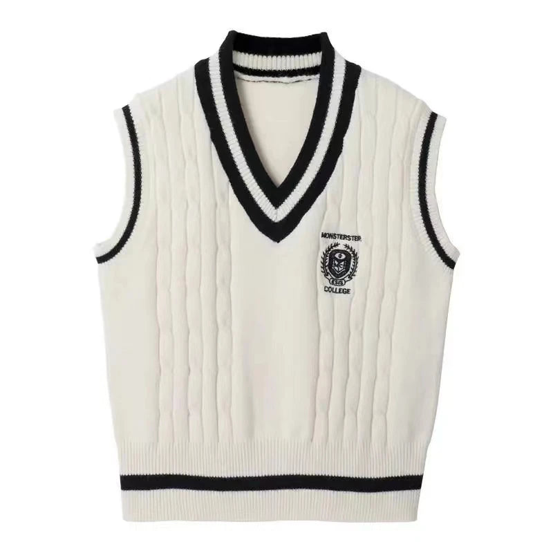 GETADME PTKPCC New Spring and Autumn Knitted Vest Women's Sweater Korean Edition British Academy Style Sang Wear Versatile Top