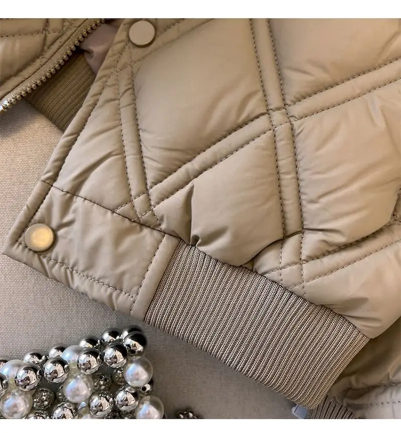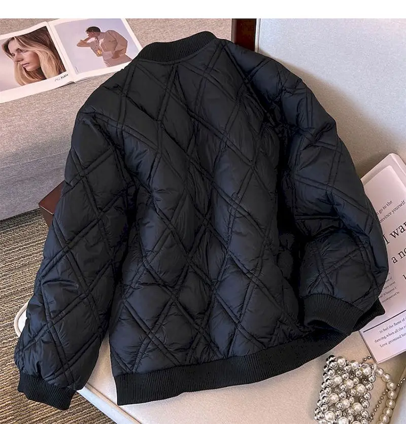 GETADME Quilted Coats for Women Lightweight Cotton-padded Cropped Baseball Jackets Long Sleeve Solid Loose Casual Vintage Women Clothing