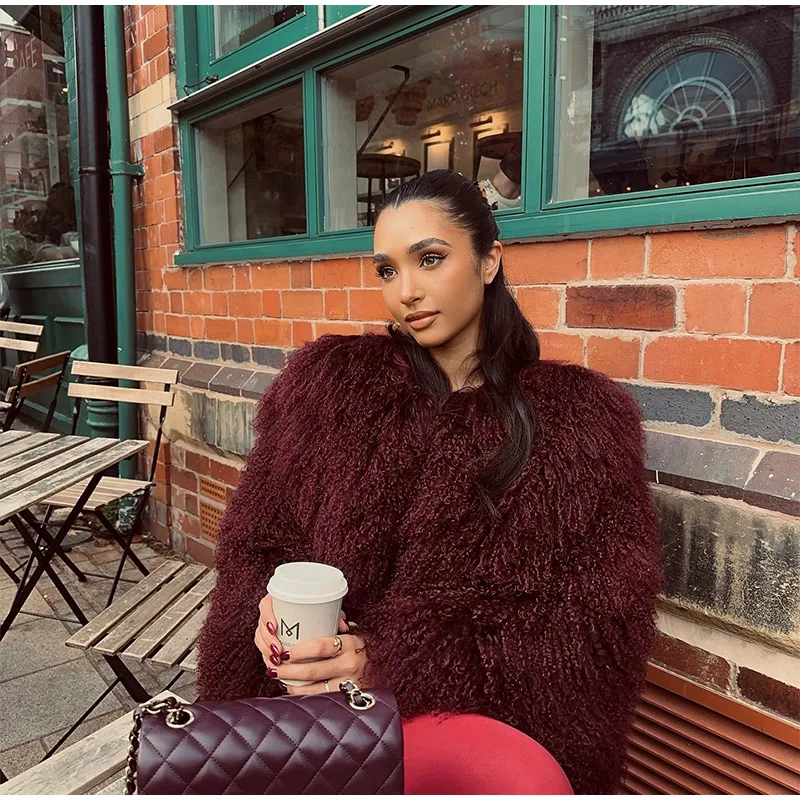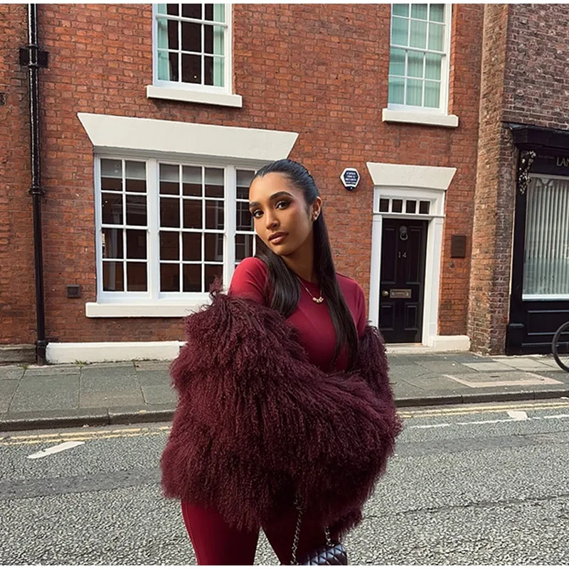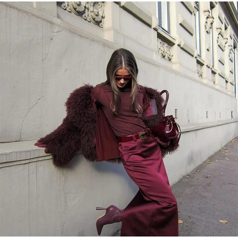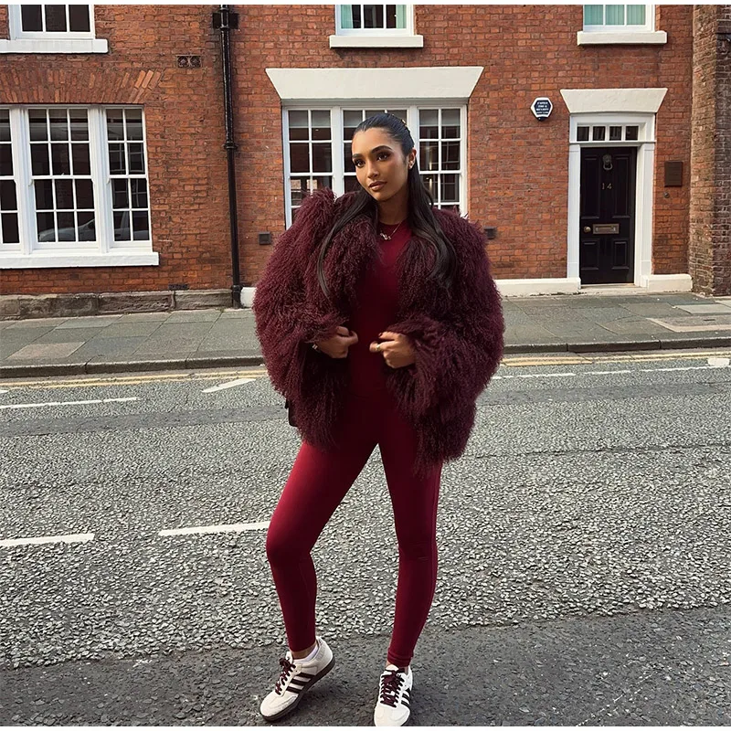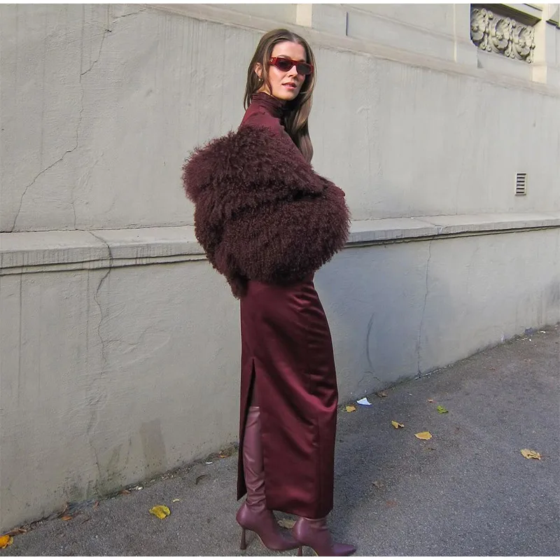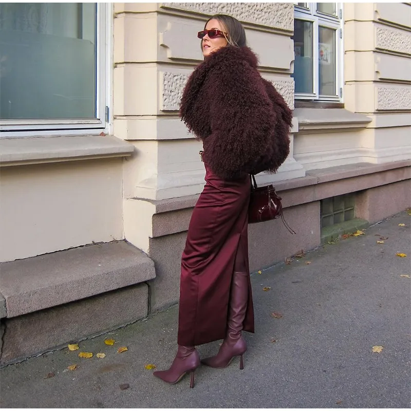 GETADME Retro Burgundy Tassels Faux Fur Long Sleeves Short Coat Elegant Loose Turn-down Collar Jacket 2025 New Woman High Street Coats