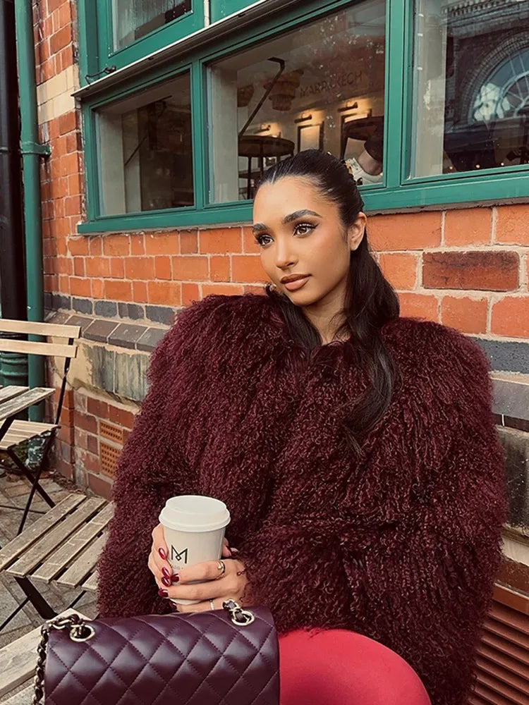 Model Number : Retro Burgundy Tassels Faux Fur Long Sleeves Short Coat