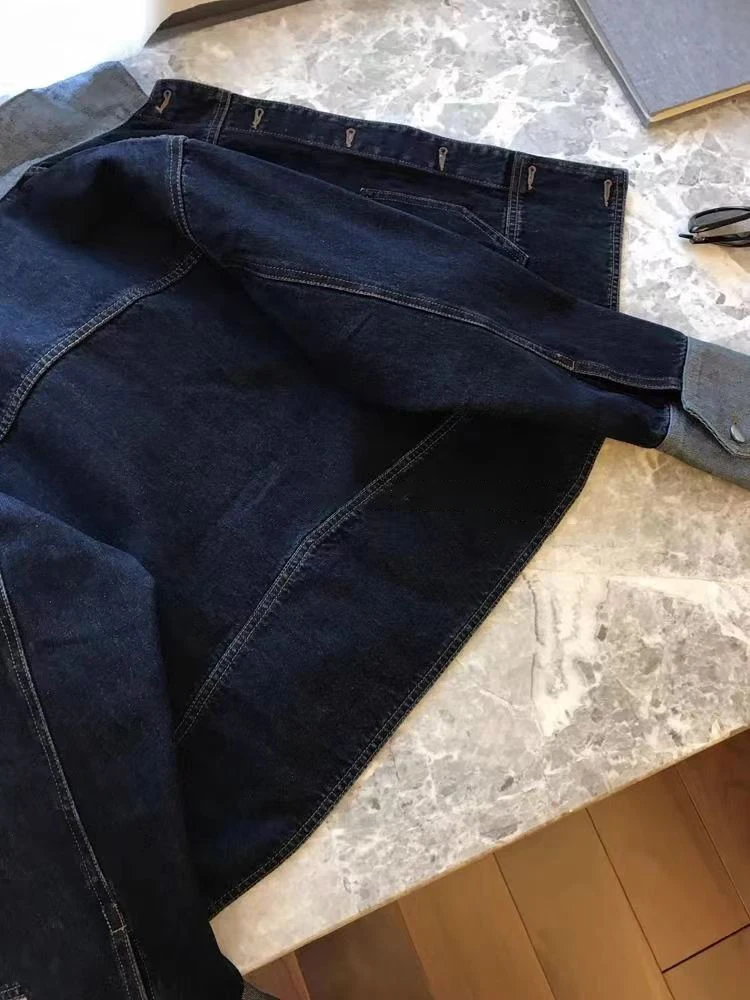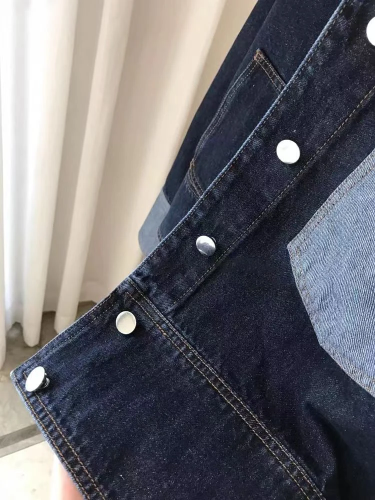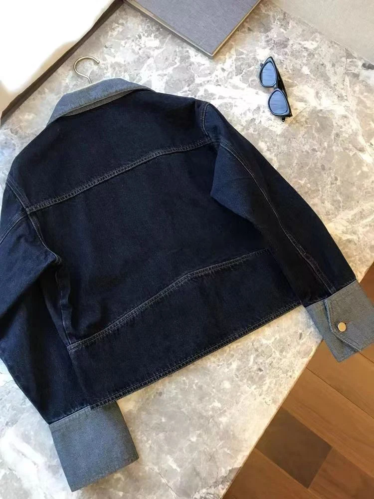 GETADME Retro Contrasting Color Laple Denim Jacket for Women 2024 Autumn New Loose Single-breasted Coats Casual Versatile Short Top