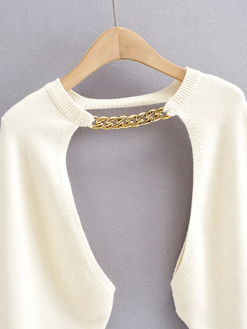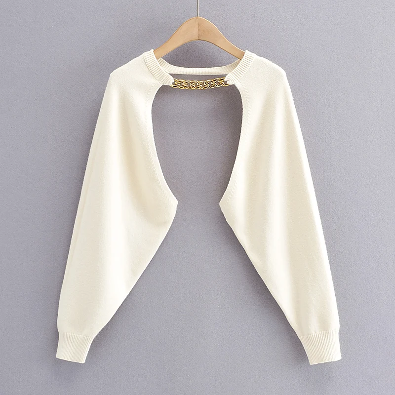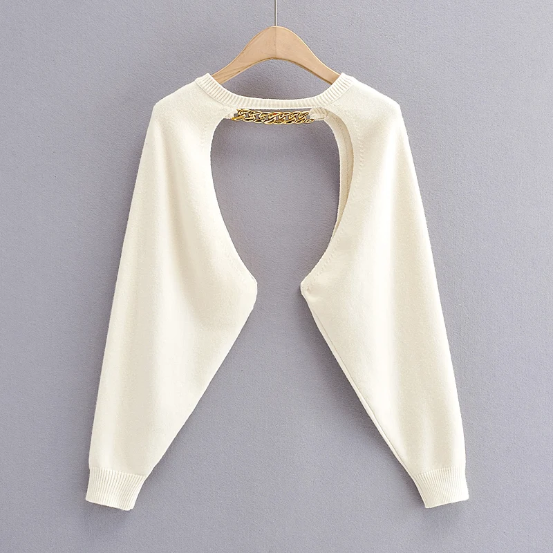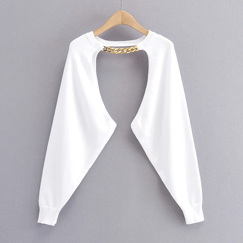 GETADME Sexy cropped cardigan knitted short cardigan sweaters for women fashion cute tops korean style long sleeve top punk chain