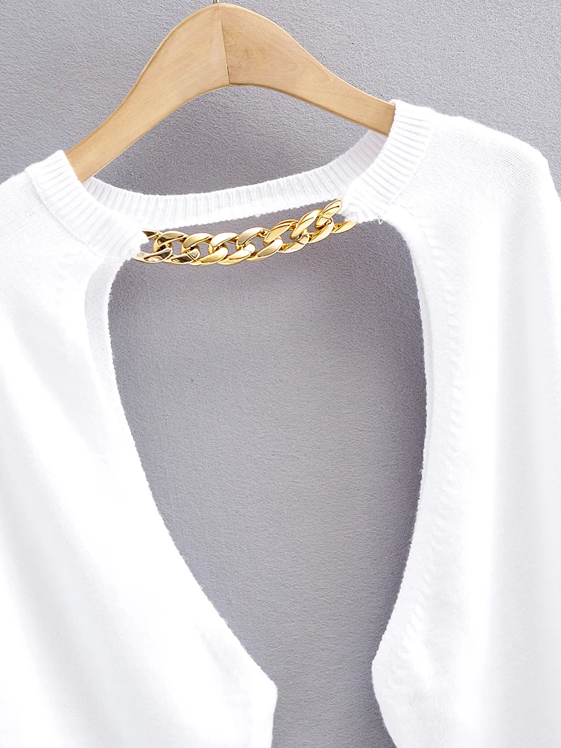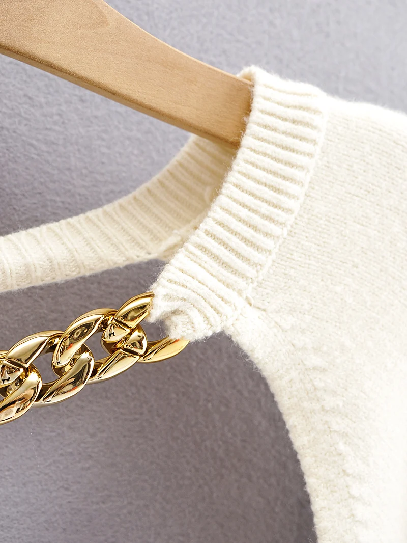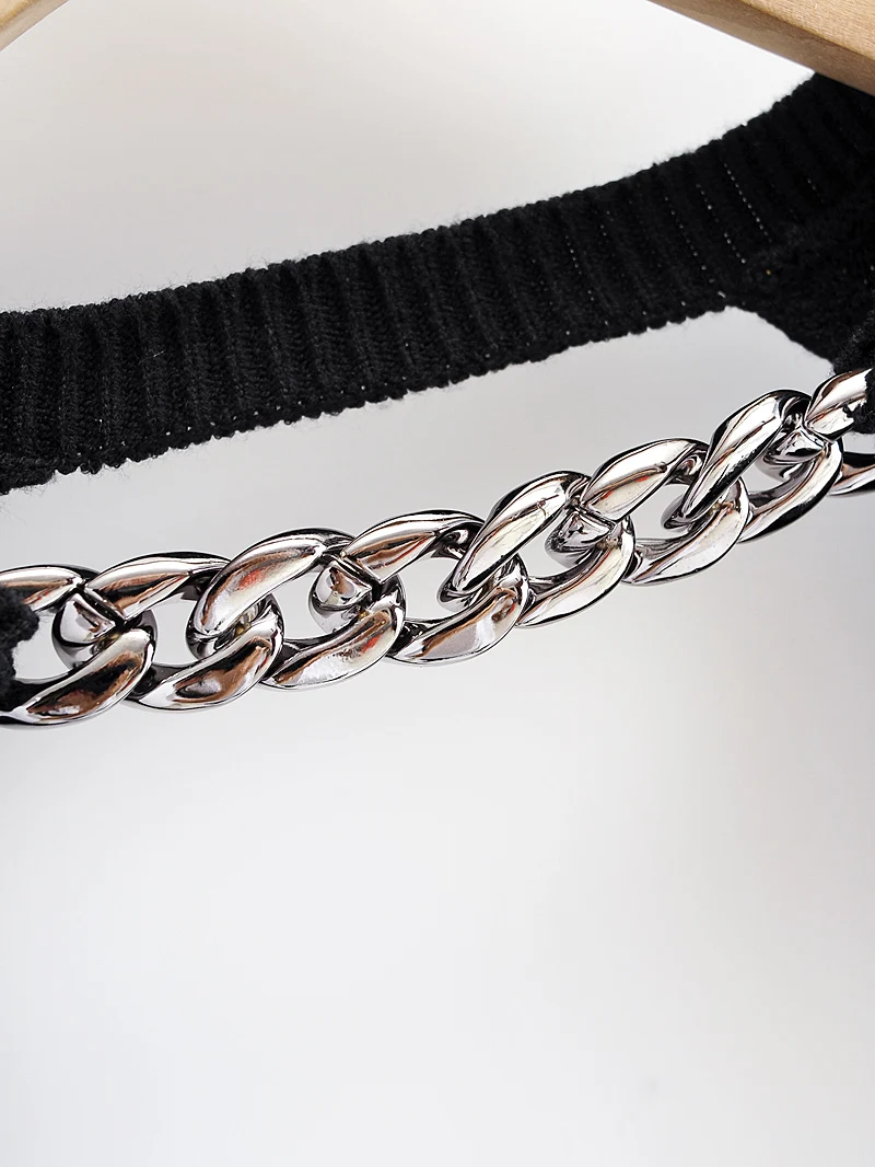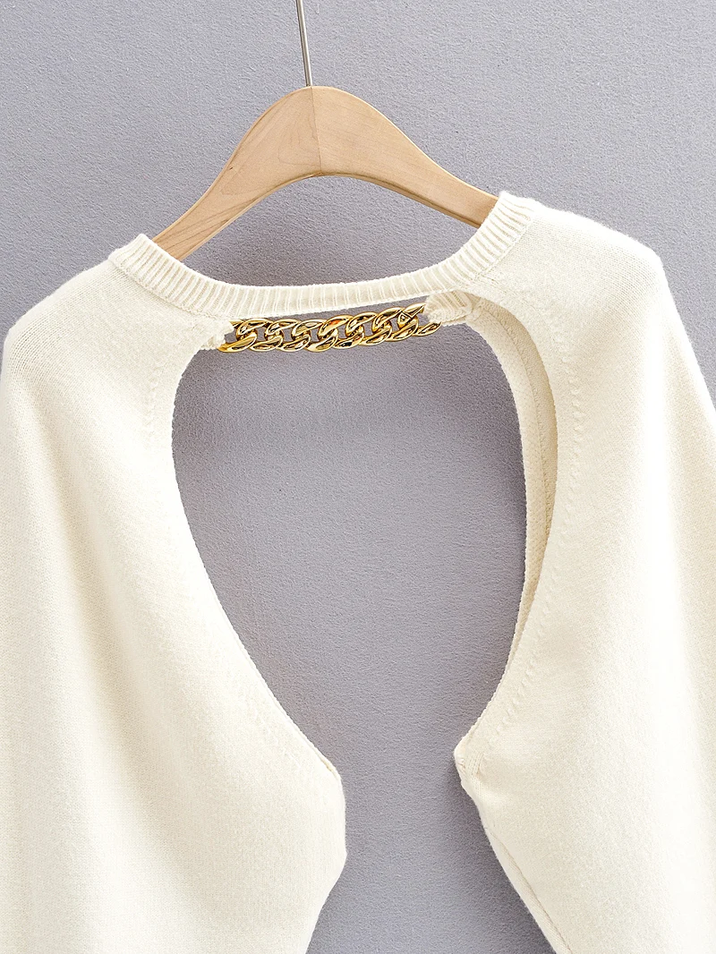 GETADME Sexy cropped cardigan knitted short cardigan sweaters for women fashion cute tops korean style long sleeve top punk chain