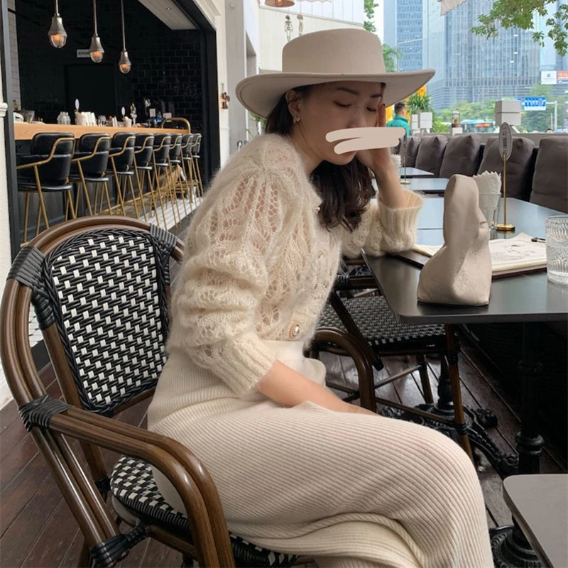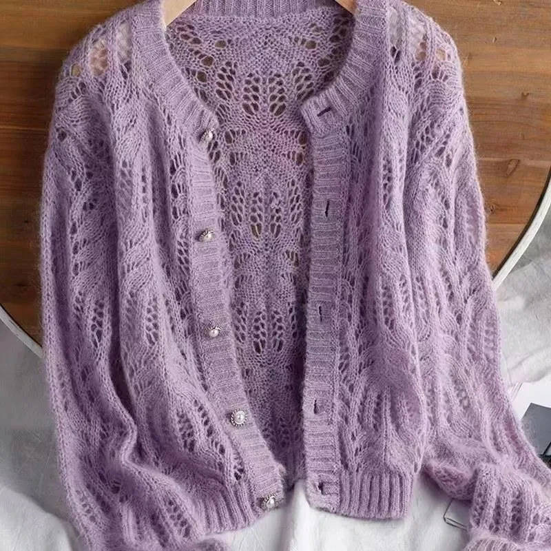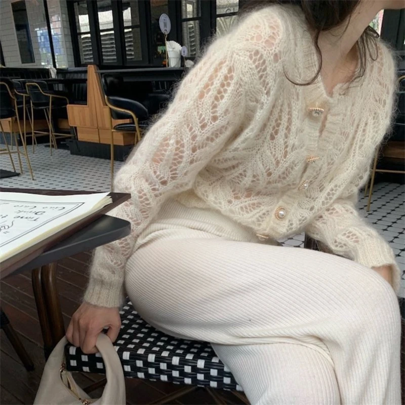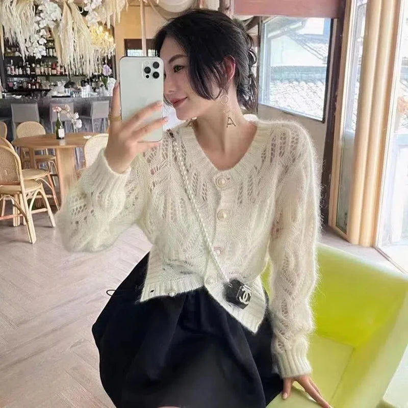 GETADME Sexy Hollow Out Knitted Cardigan Women 2022 Autumn Single-Breasted V-Neck Sweaters Korean Style Long Sleeve Knitwear Jumpers