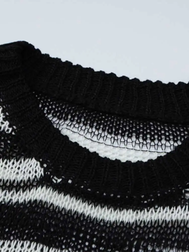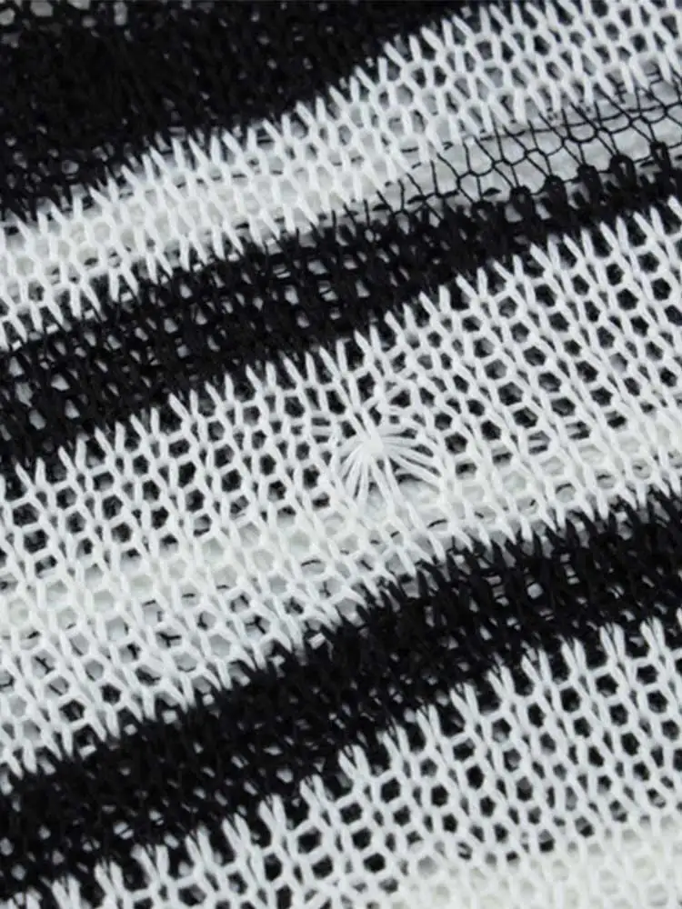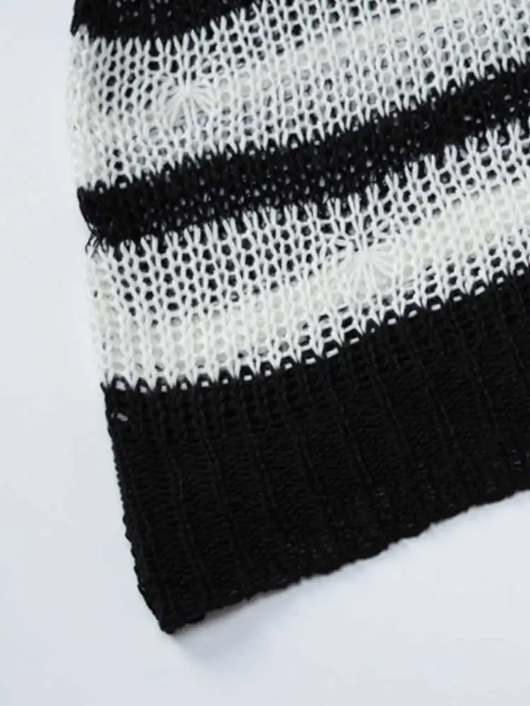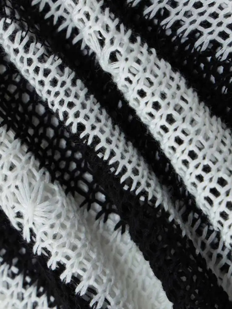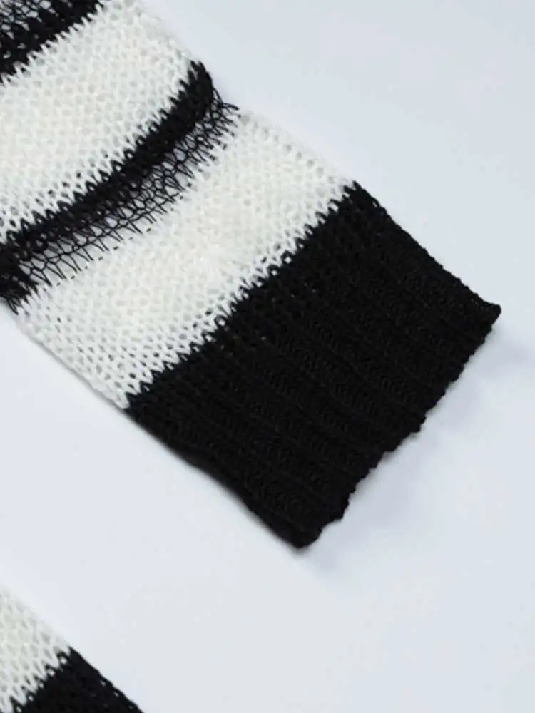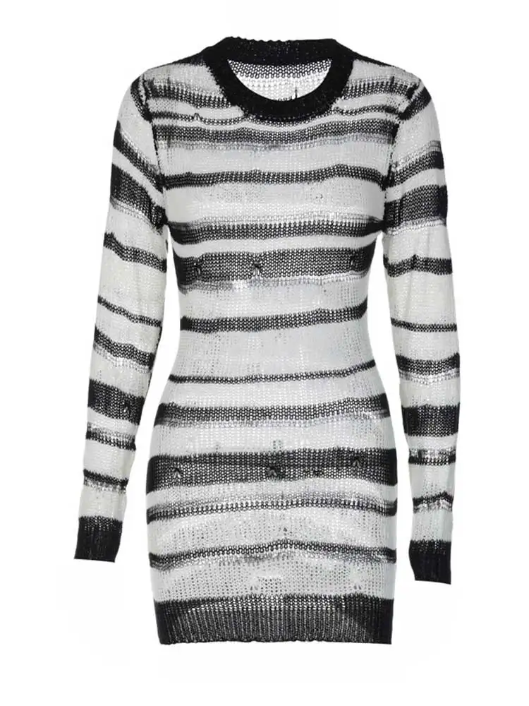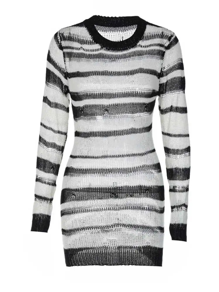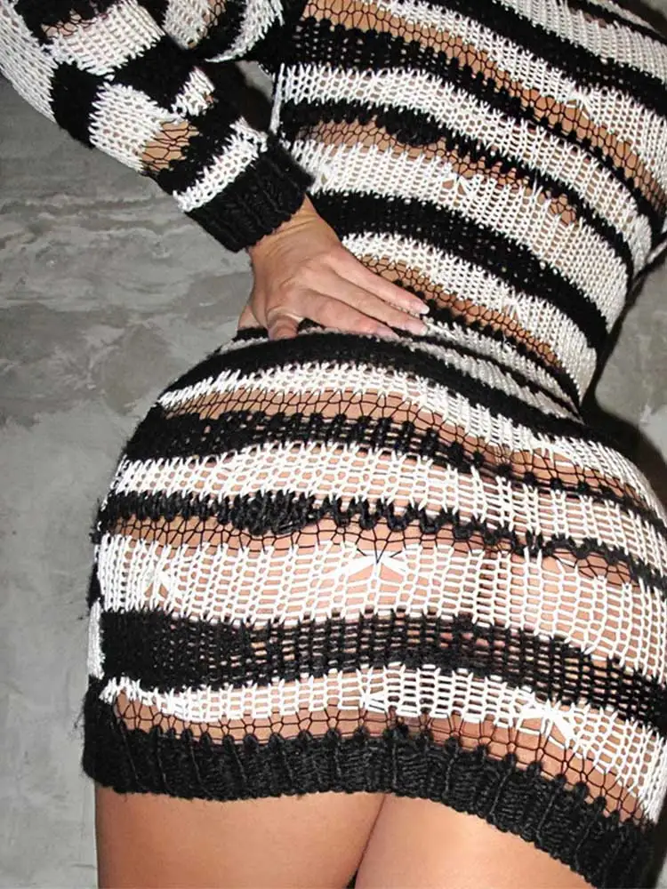GETADME Sexy Knit Sweater Wrap Hip Dress 2025 Fall Women's Long Sleeve Striped Dresses Hollow Out Knitted Sweater Mini Bodycon A3057