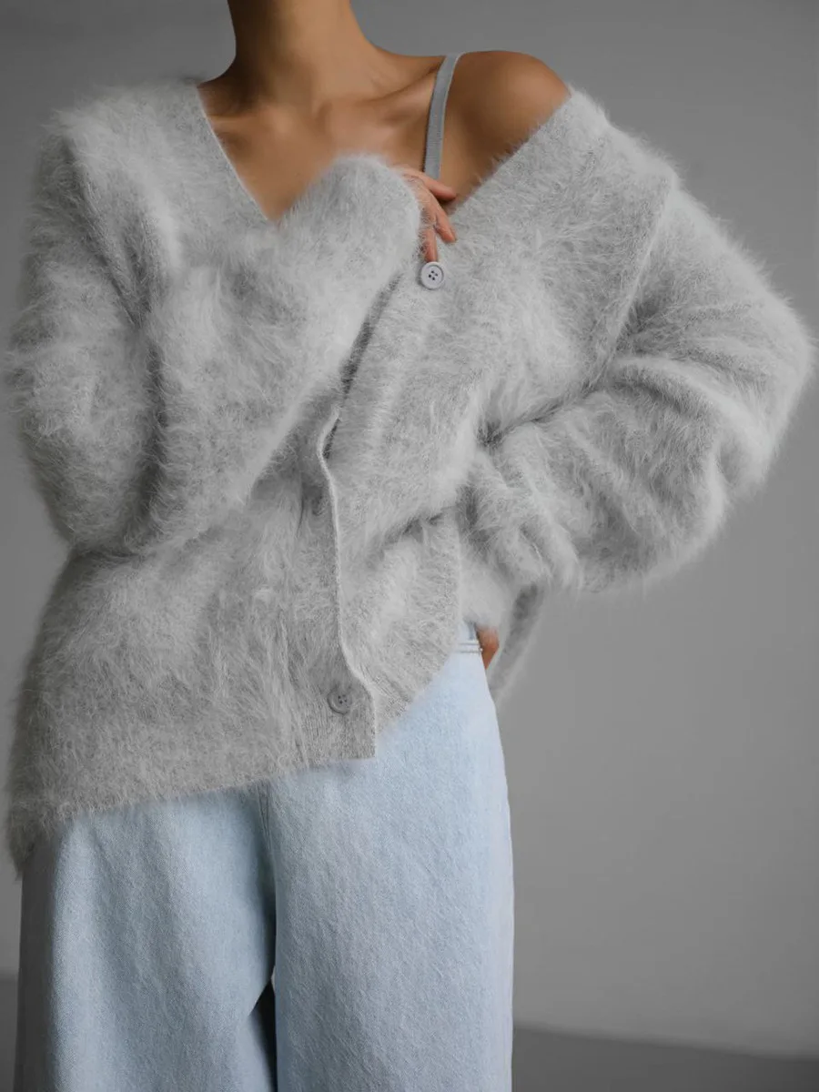 GETADME Sexy Mohair Cardigan for Women Loose Long Sleeve Single Breasted Knitted Pullover 2025 Autumn Chic Lady Streetwear Sweater Coat