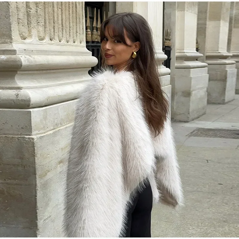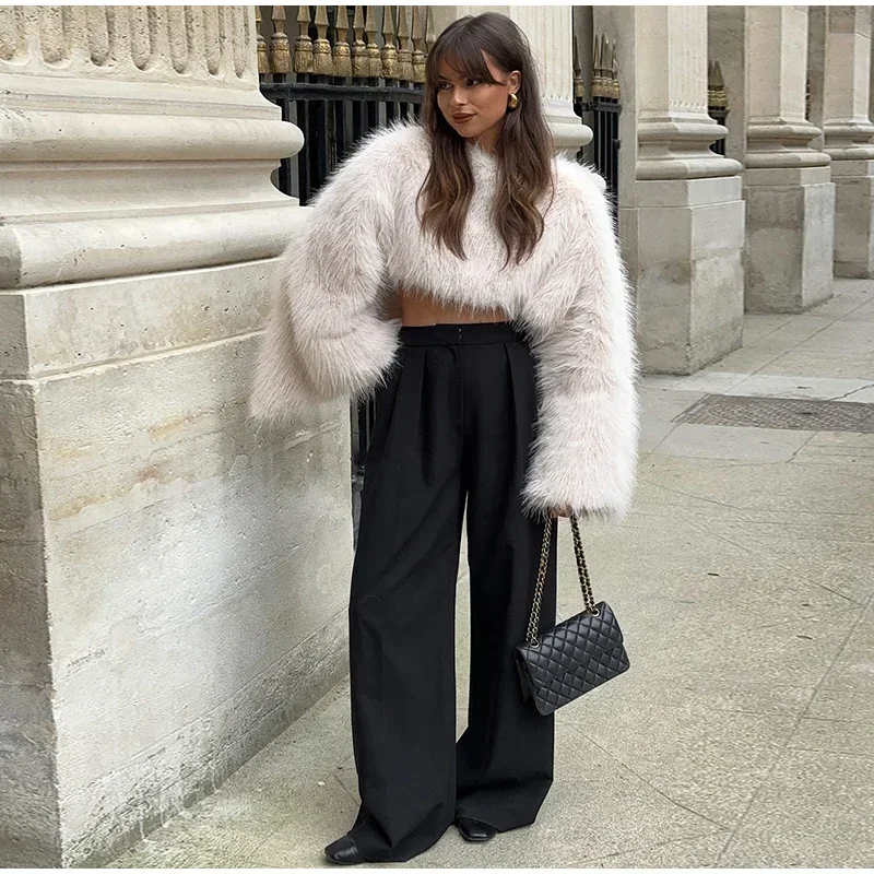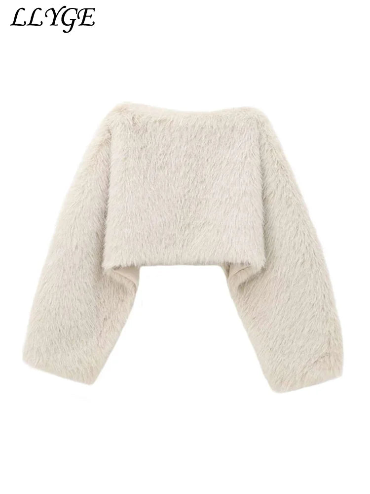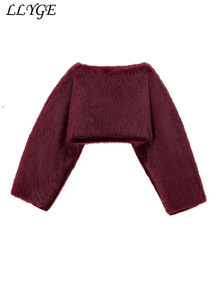 GETADME Sexy Women's Crop Faux Fur Coat Street O-neck Long Sleeve Female Plush Outwear 2025 Autumn Winter Lady Warm Furry Streetwear New