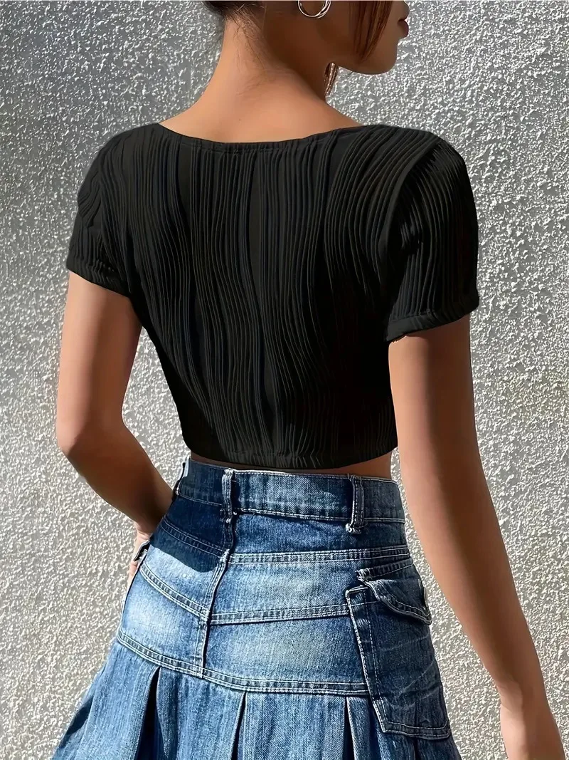 GETADME Short Sleeve Solid Color Summer Women Casual T Shirts Summer Hot Sexy Basic Fashion Crop Tops Fashion Streetwear Tees Club