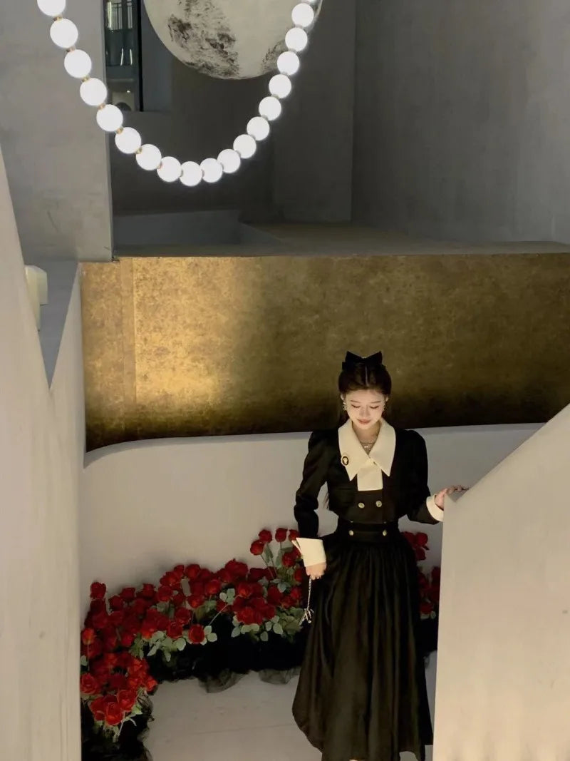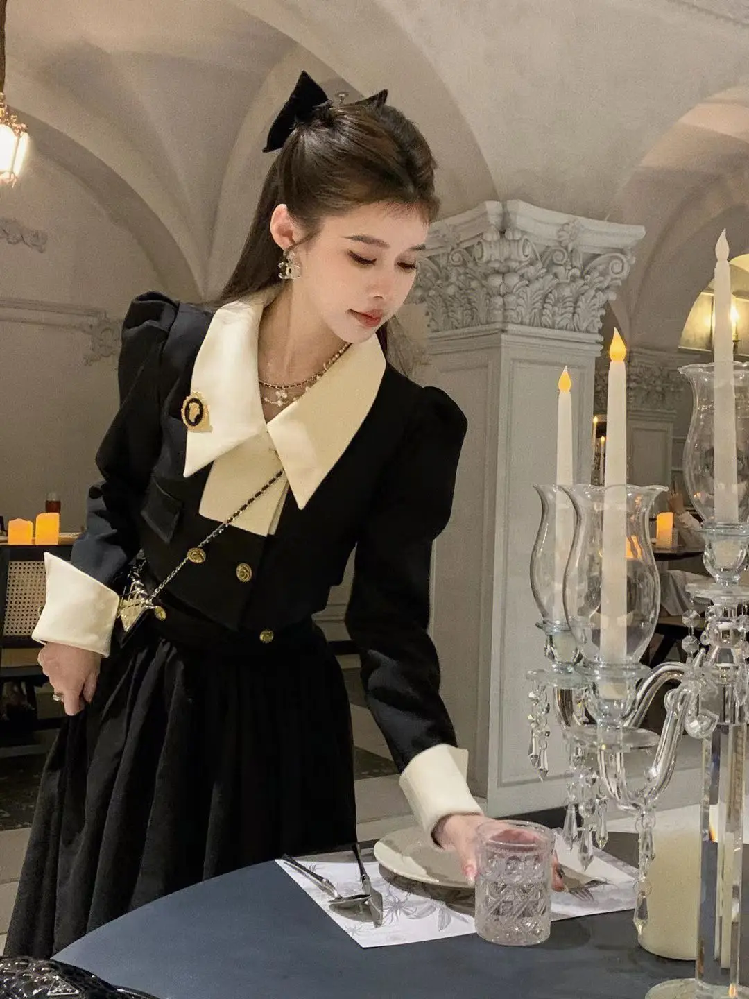 GETADME Spring New Elegant 2 Piece Sets Womens Vintage Black Blazer Skirts Suit Femme Outfits Autumn Korean Fashion y2k Clothes