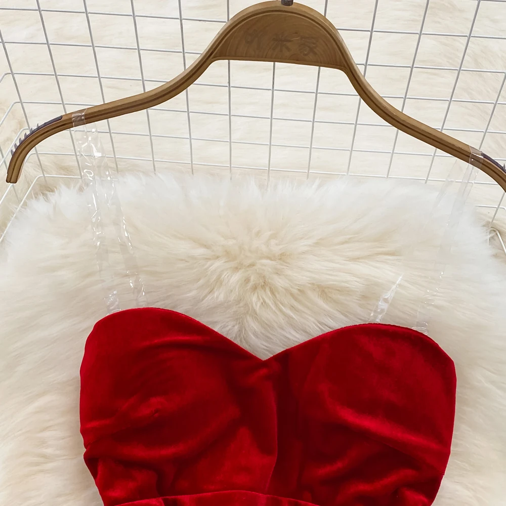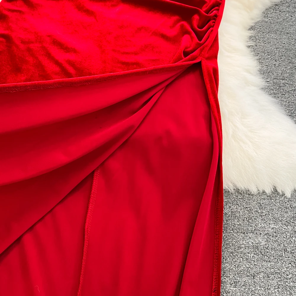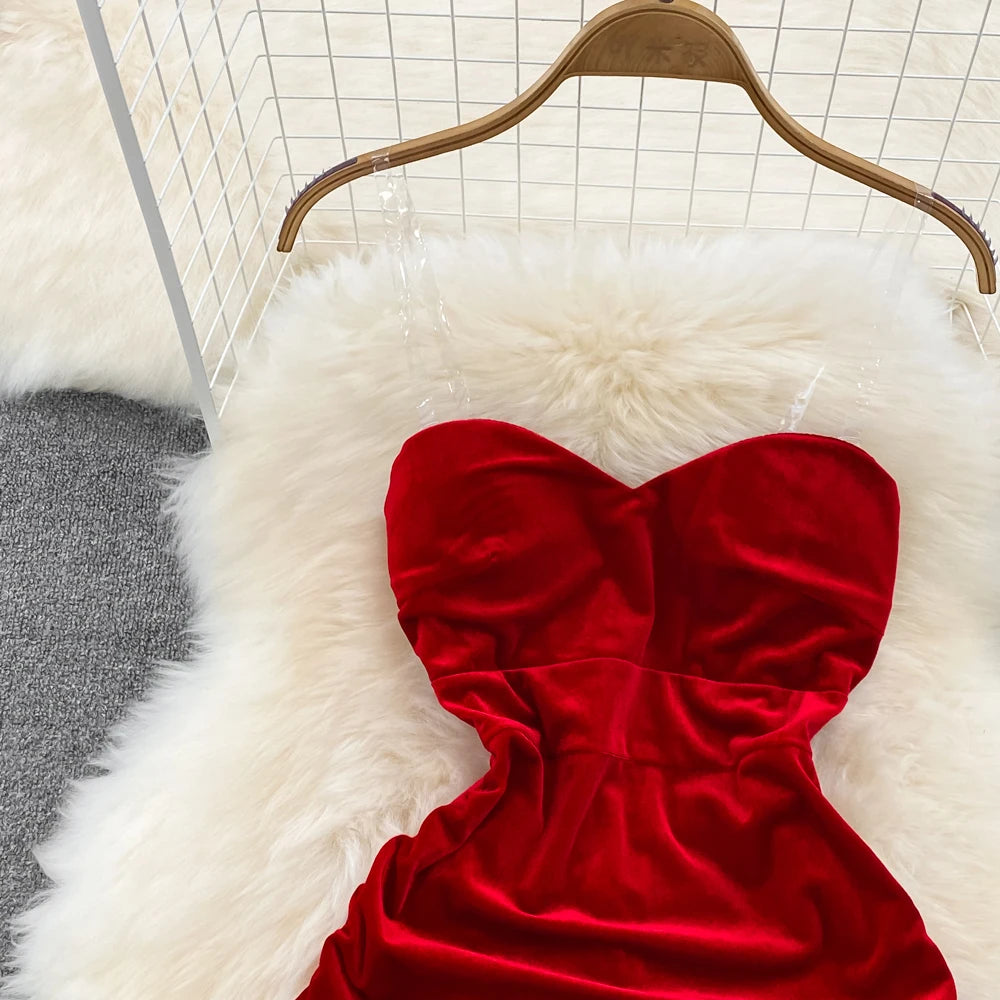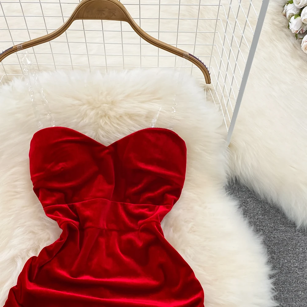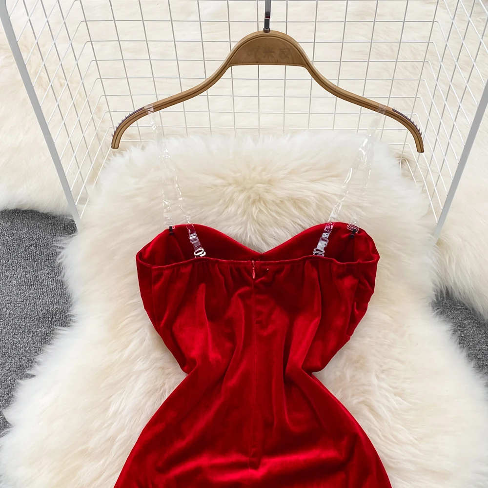 GETADME Spring Summer Sexy Maxi Dresses for Women Bodycon Velvet Strap Backless Female Robe Elegant Vintage Split Party Holiday New In