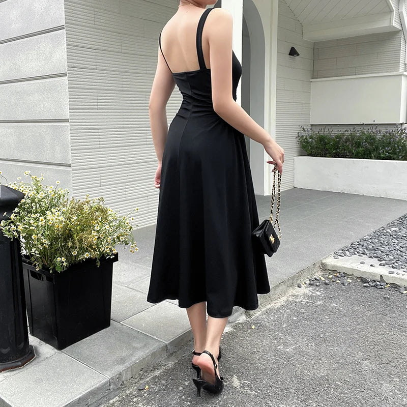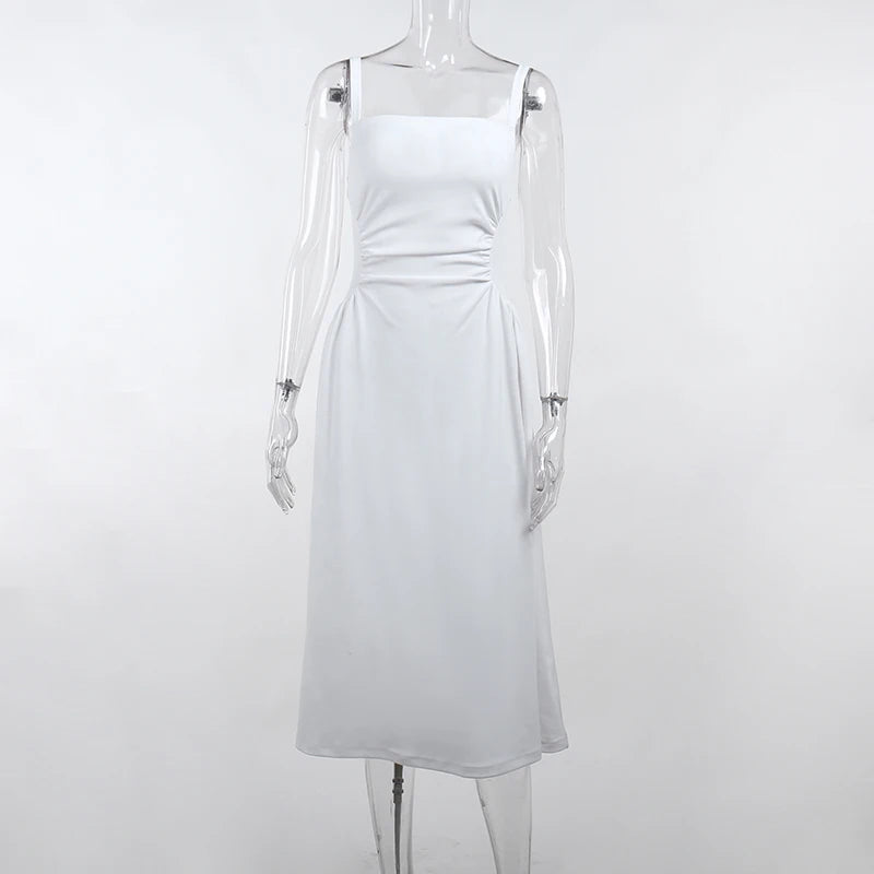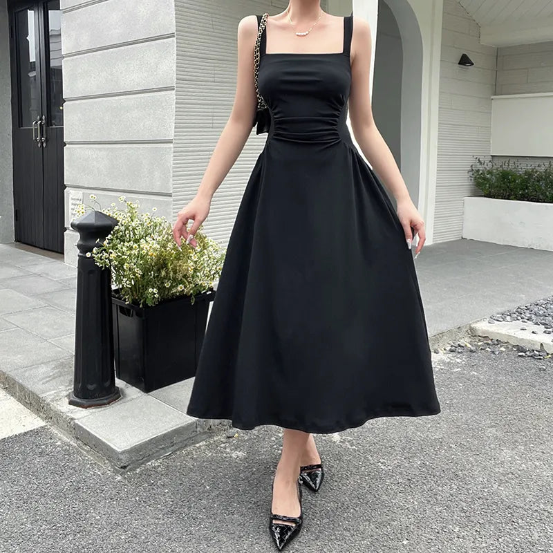 Getadme-Summer Elegant Casual A-Line Satin Midi Dress Women Sleeveless Vintage Party Birthday Vestidos Female Chic Solid Robe JY23115GN