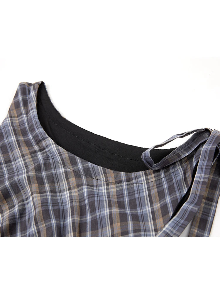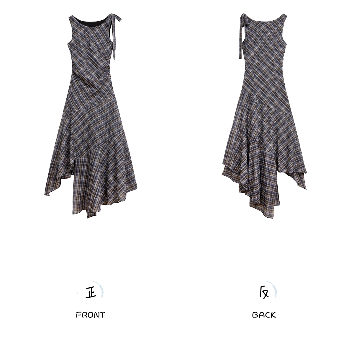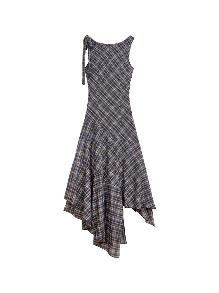 GETADME Summer Evening Irregular Design Prom Gown Sleeveless Long Plaid Dress Women Vintage Old Money Frocks One-Piece Graduation Y2k