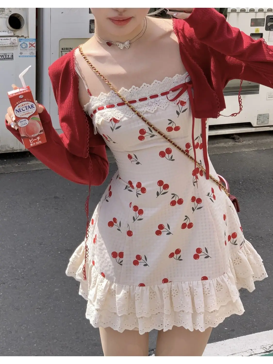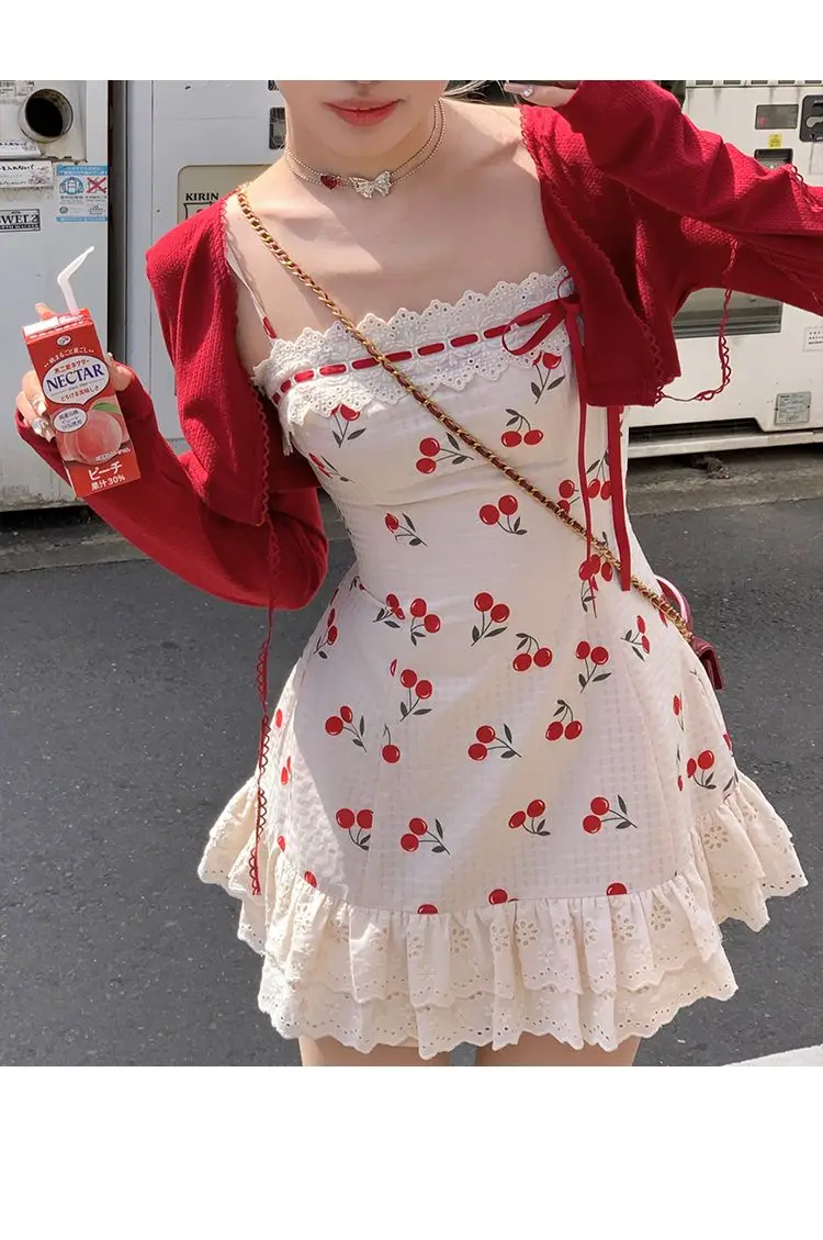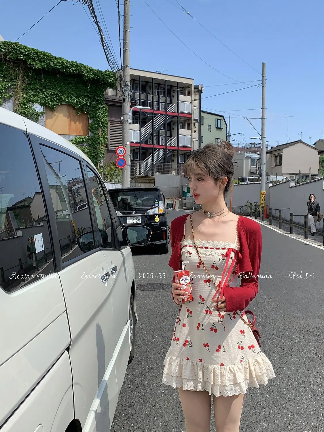 GETADME Summer Lace Kawaii Dress Women Vintage Sleeveless Elegant Sweet Mini Dress Female Floral Print Korean Designer Strap Dress 2025