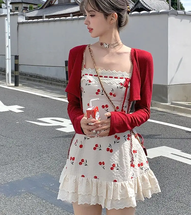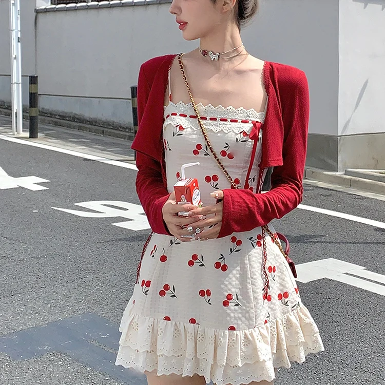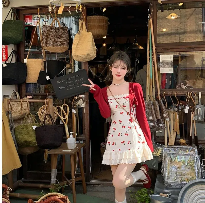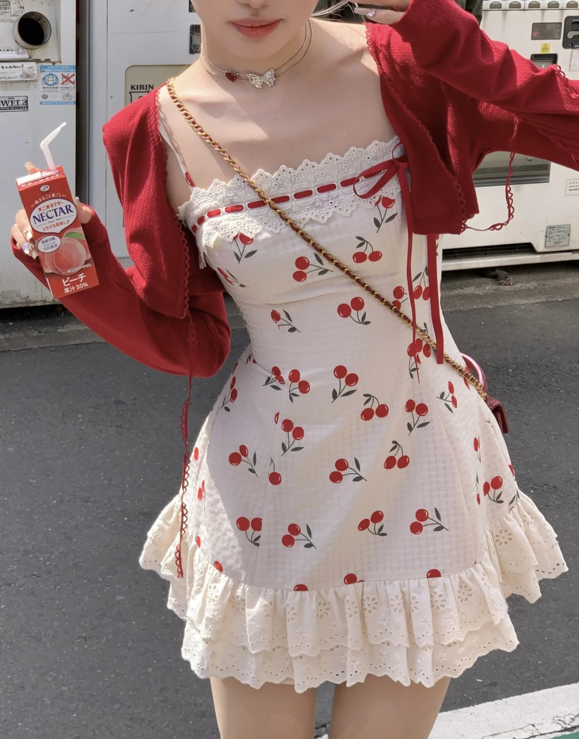 GETADME Summer Lace Kawaii Dress Women Vintage Sleeveless Elegant Sweet Mini Dress Female Floral Print Korean Designer Strap Dress 2025