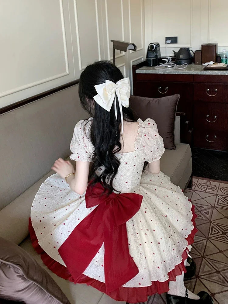 GETADME Summer New Sweet Mini Dresse French Square Collar Princess Bow Short Sleeve Dress Women Elegant Party Vintage Dresses Vestidos