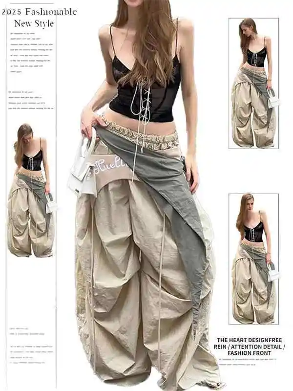 GETADME Summer Women Goblin Core Long Trousers Parachute Pants Harajuku Y2K Streetwear Loose Grunge 2000s Streetwear Hip-pop Sweat Pants