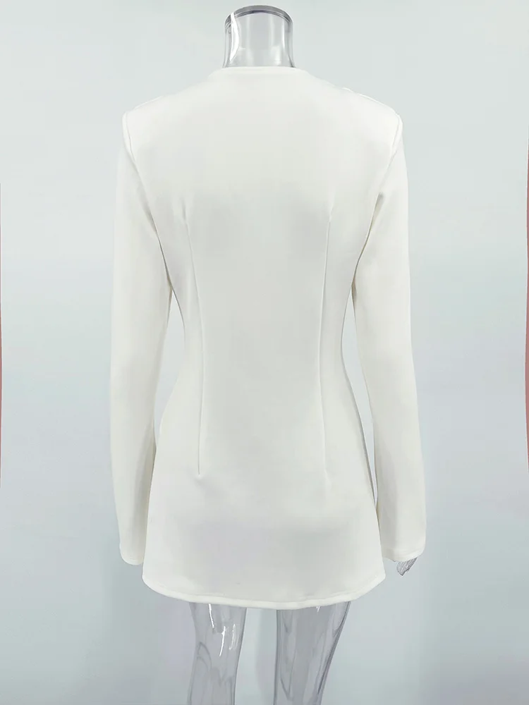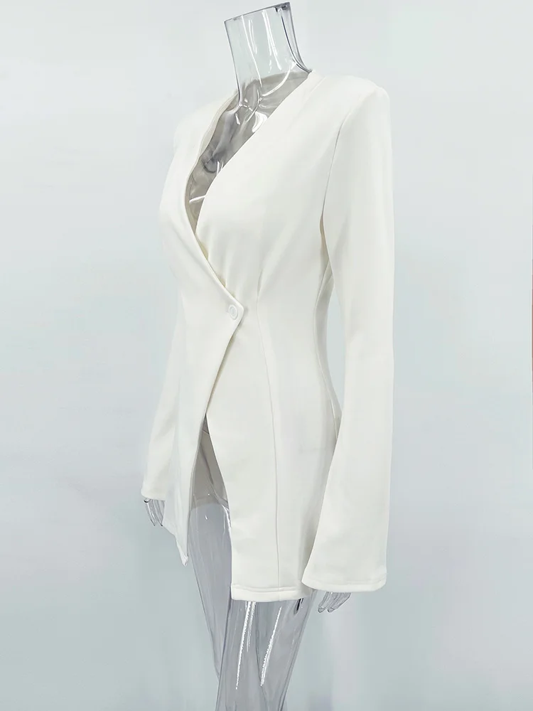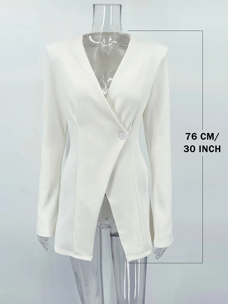 GETADME TARUXY Slim White Button Blazer Coat For Women V Neck Long Sleeve Office Lady Coat Slit High Waisted Outwear Autumn Winter New