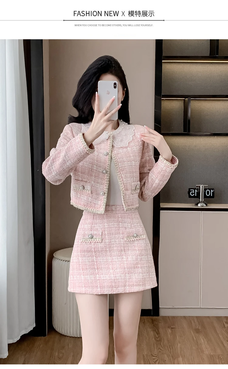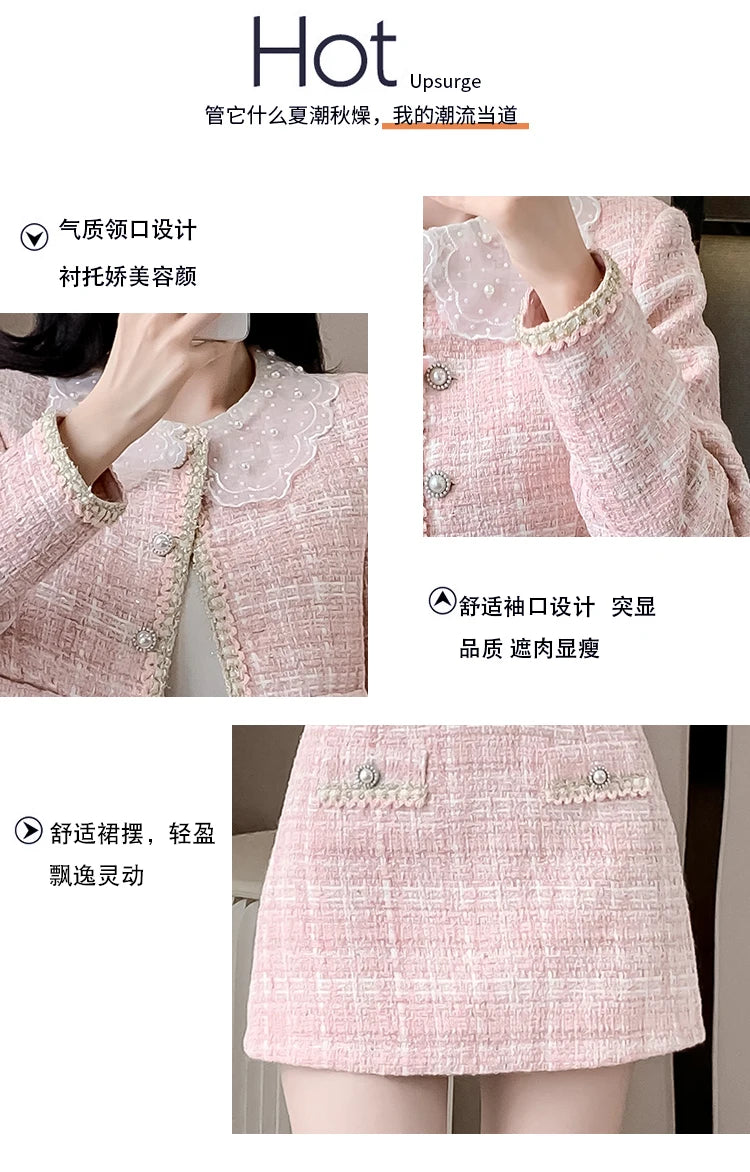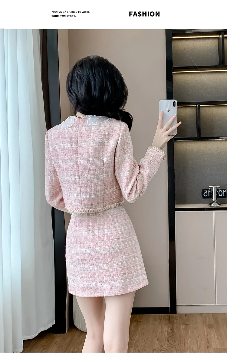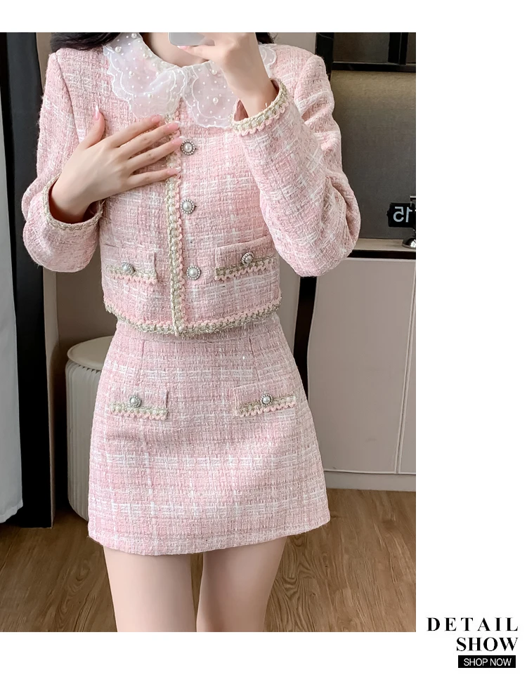 GETADME Tweed Jacket and Skirt Set for Women French Vintage Small Fragrance Two Piece Outfits Coat and Skirt High Quality