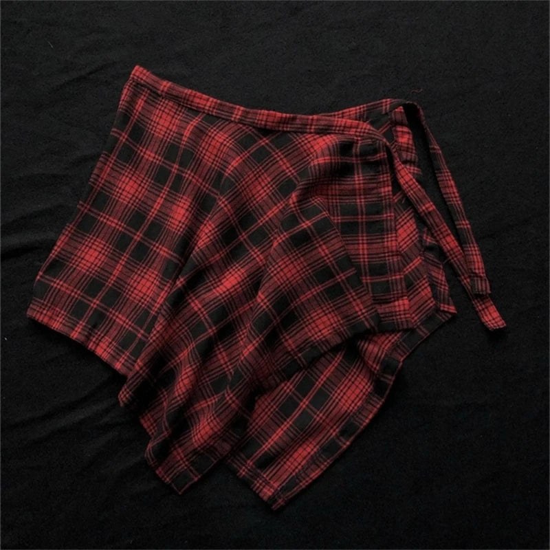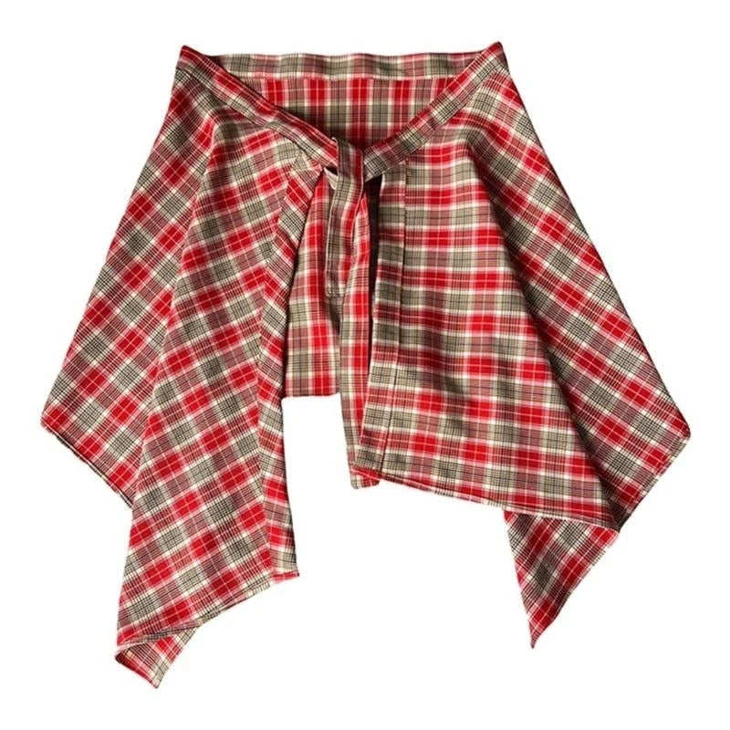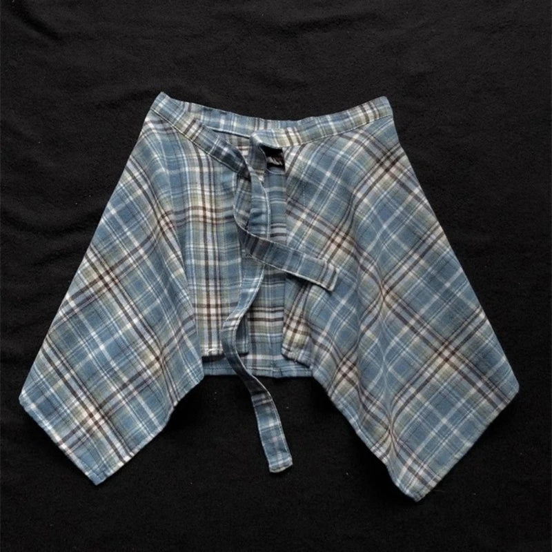 GETADME Unisex Layered A Line Wrap Skirt Hiphop Street Dance Checkered Hip Scarf Tie Up Asymmetrical Overskirt Shirt Extender