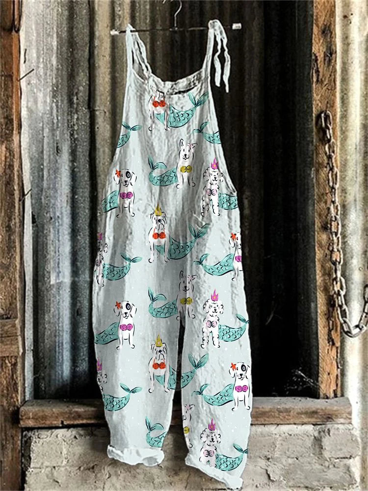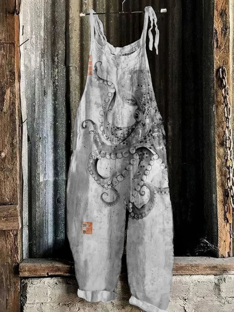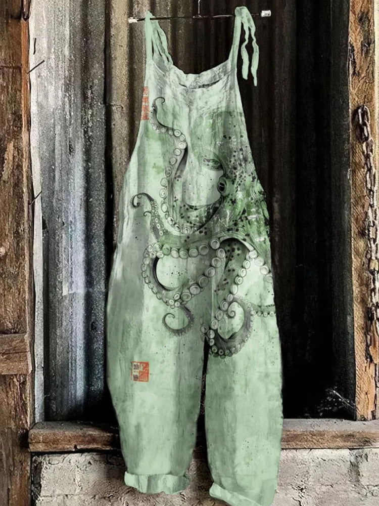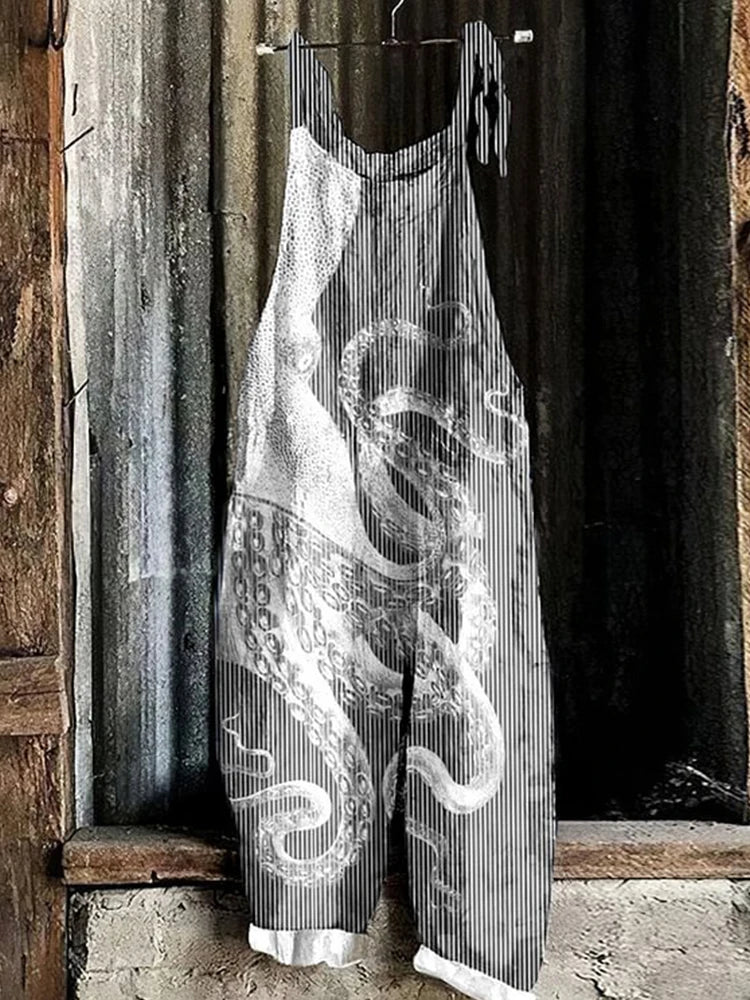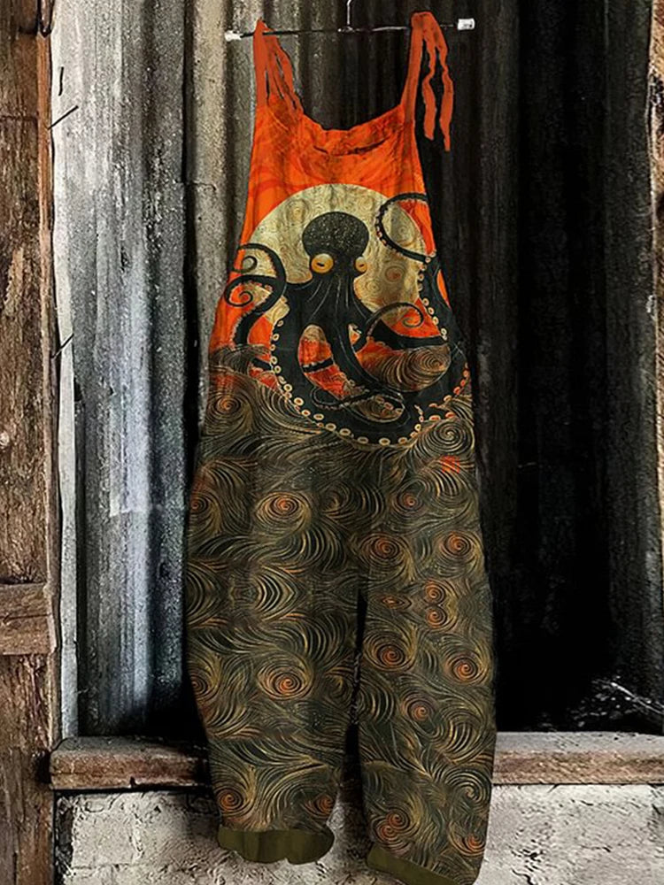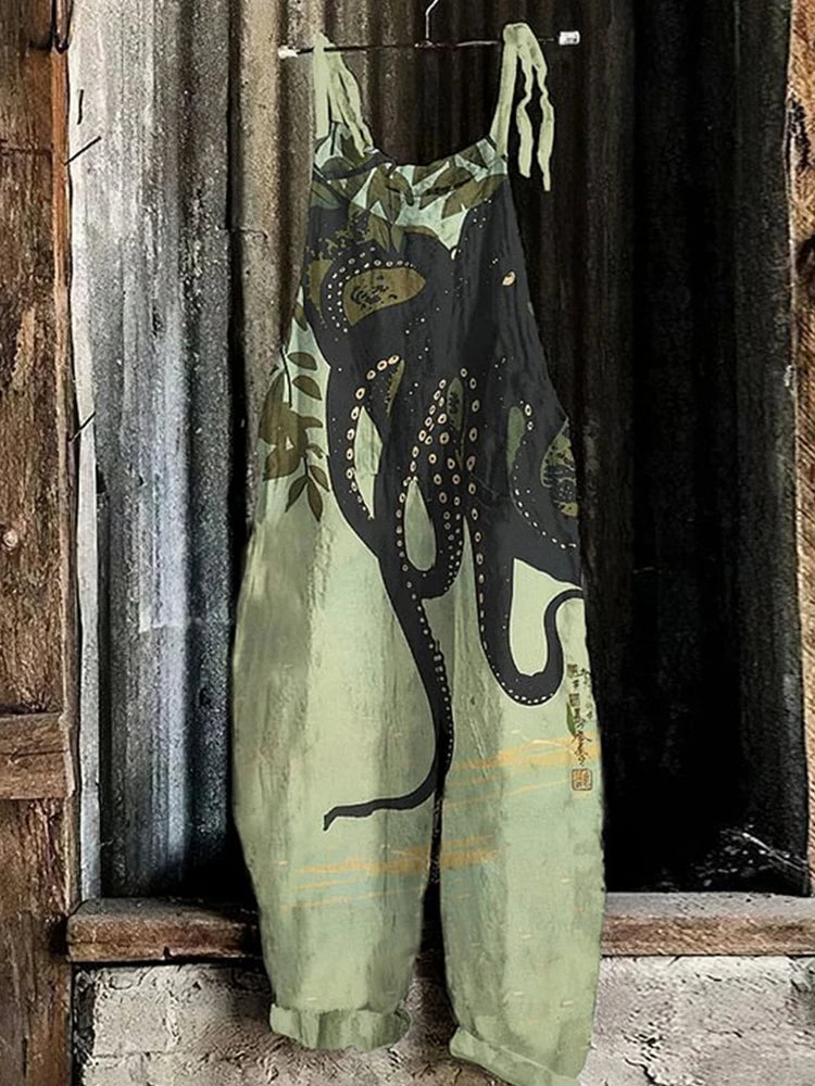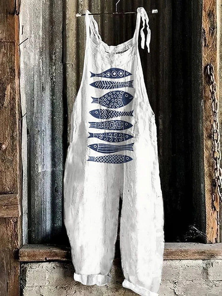 GETADME Vintage Japanese Seahorse Print Holiday Beach Casual Loose Strap Romper Shorts Urban Street Trend Loose Romper Pants S-5XL
