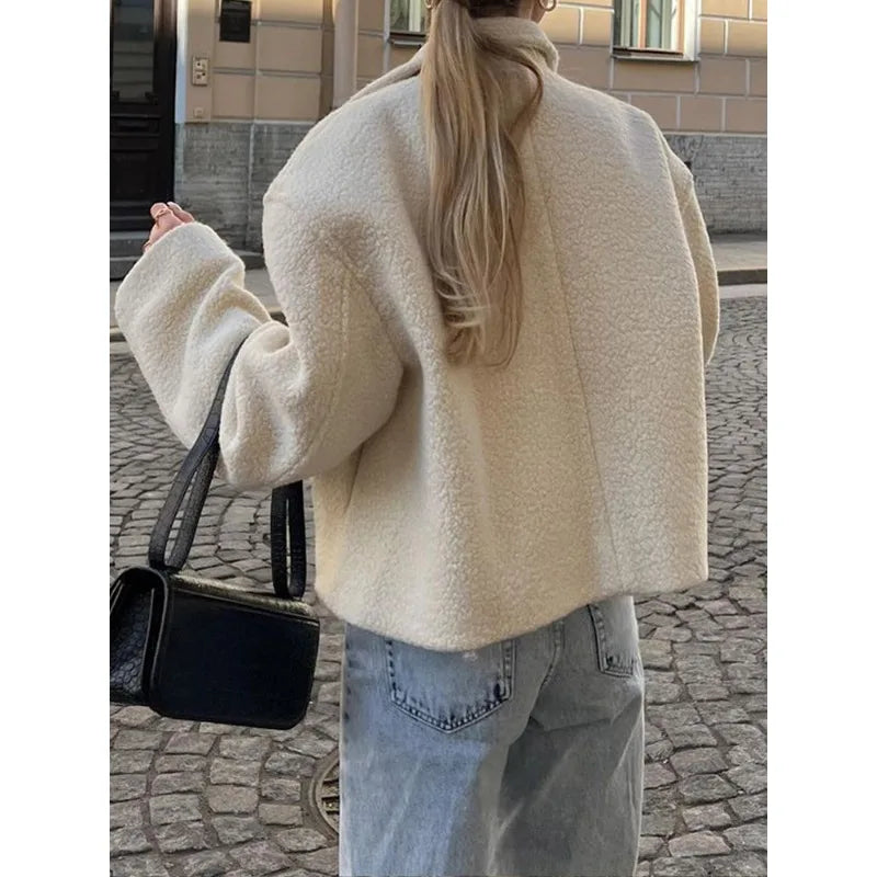 GETADME Winter Fashion Solid Color Lamb Wool Solid Color Jacket Flip Collar Women's Thick Warm Zipper Long Sve Short Coat 2025 New Wo