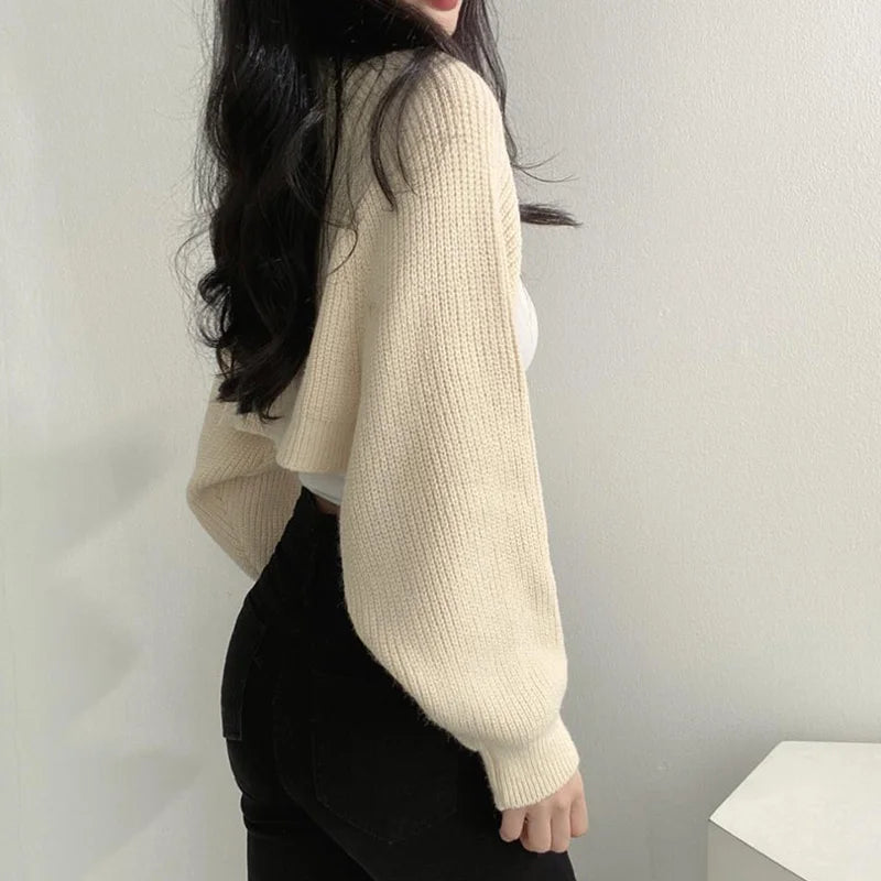 GETADME Women Autumn Versatile Knitted Short Cardigan Sweater Shawl Korean Fashionable Women's Top
