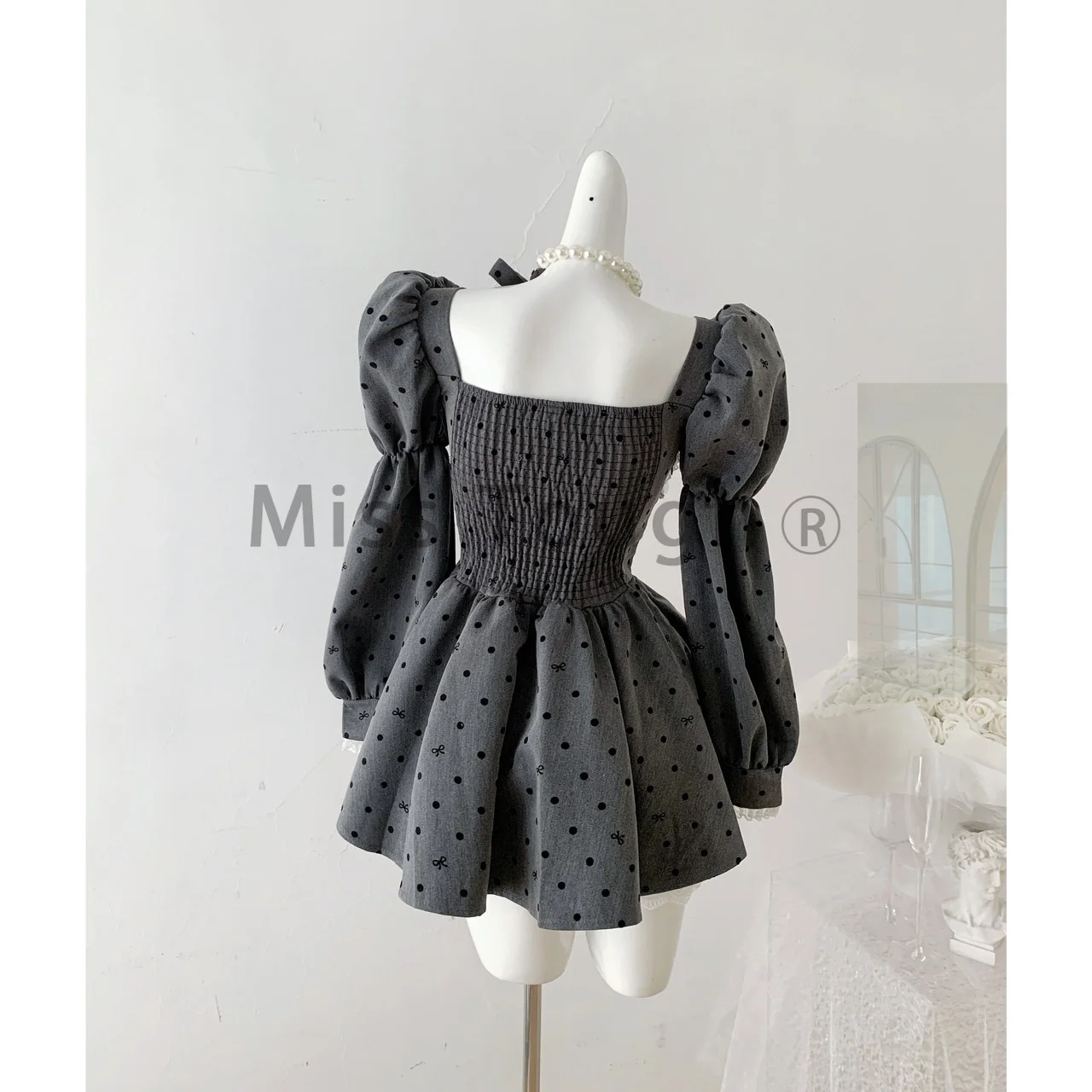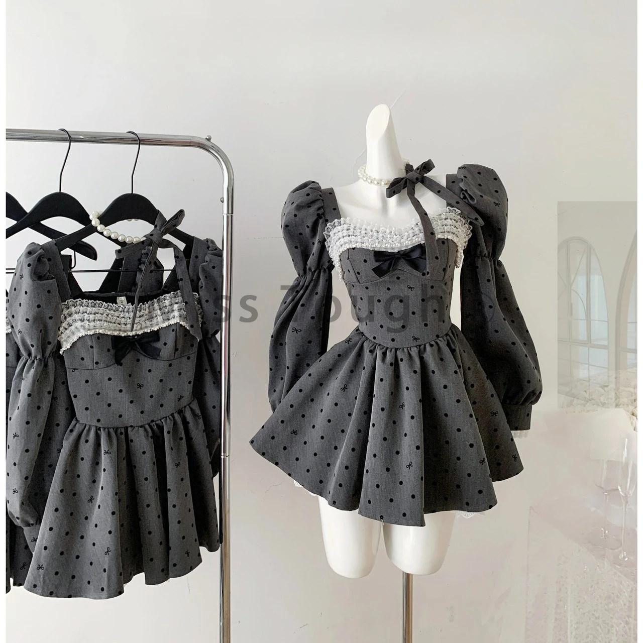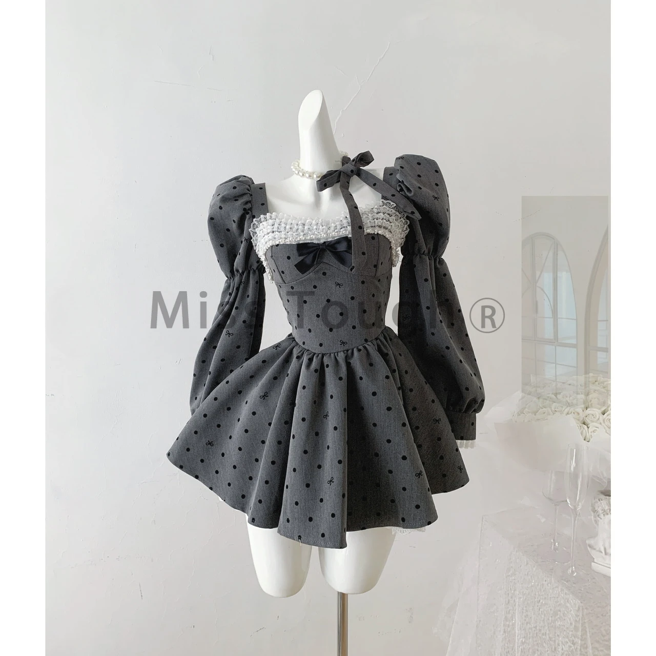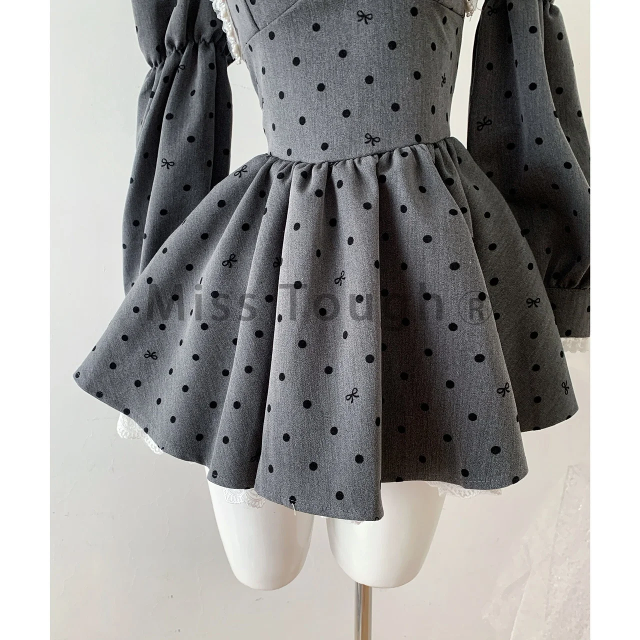 GETADME Women Elegant Prom Gown Girl Fairy Dress Mini Frocks Long Sleeve Polka Dot One-Piece Evening Coquette Party 2000s Y2k Birthday