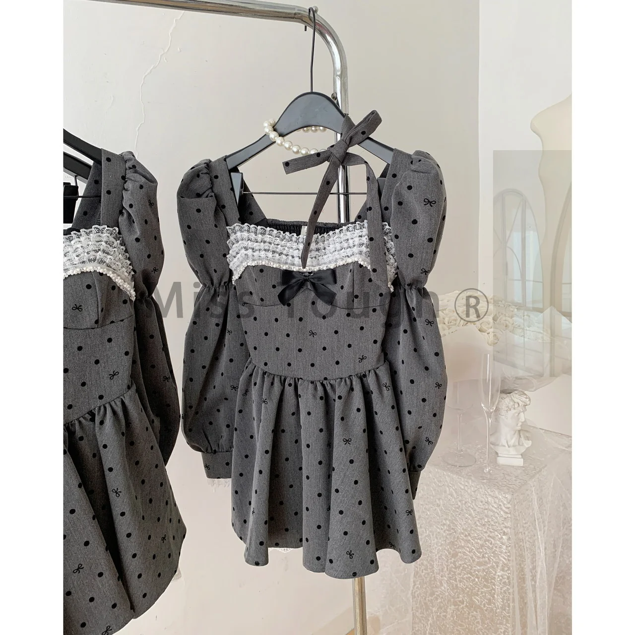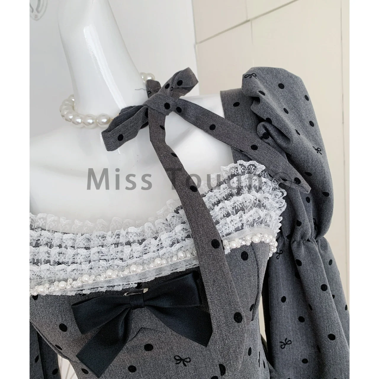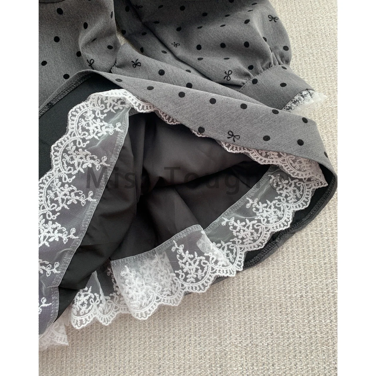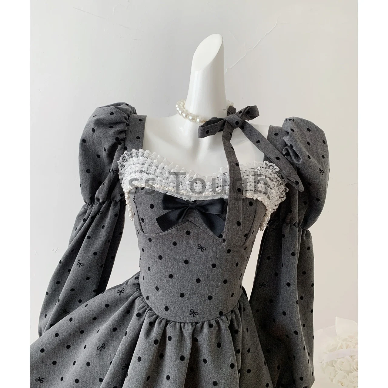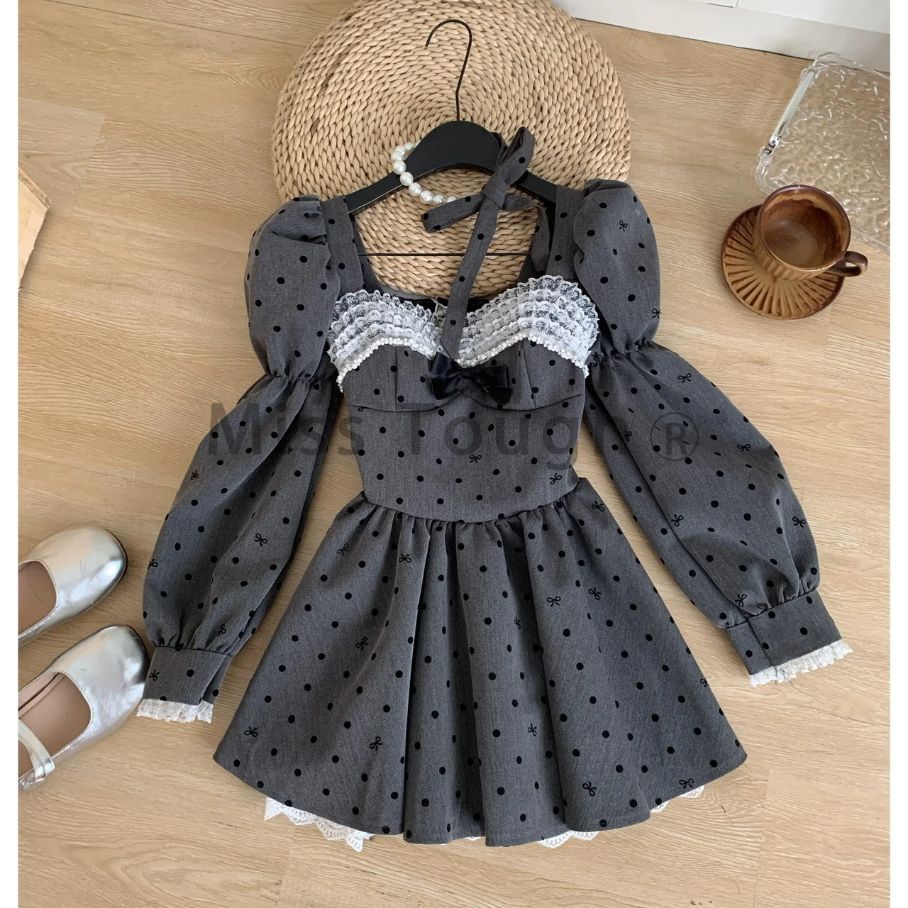 GETADME Women Elegant Prom Gown Girl Fairy Dress Mini Frocks Long Sleeve Polka Dot One-Piece Evening Coquette Party 2000s Y2k Birthday
