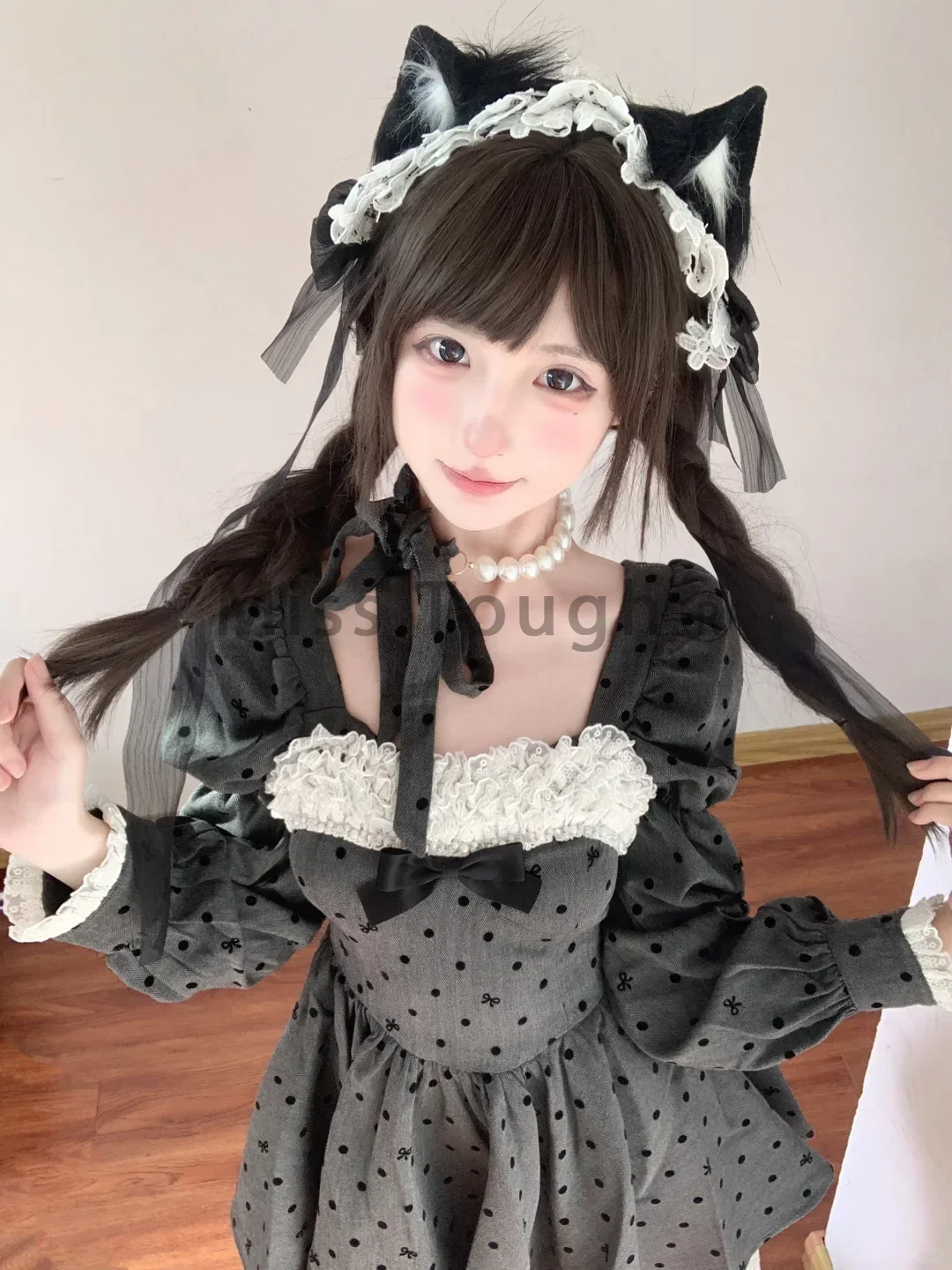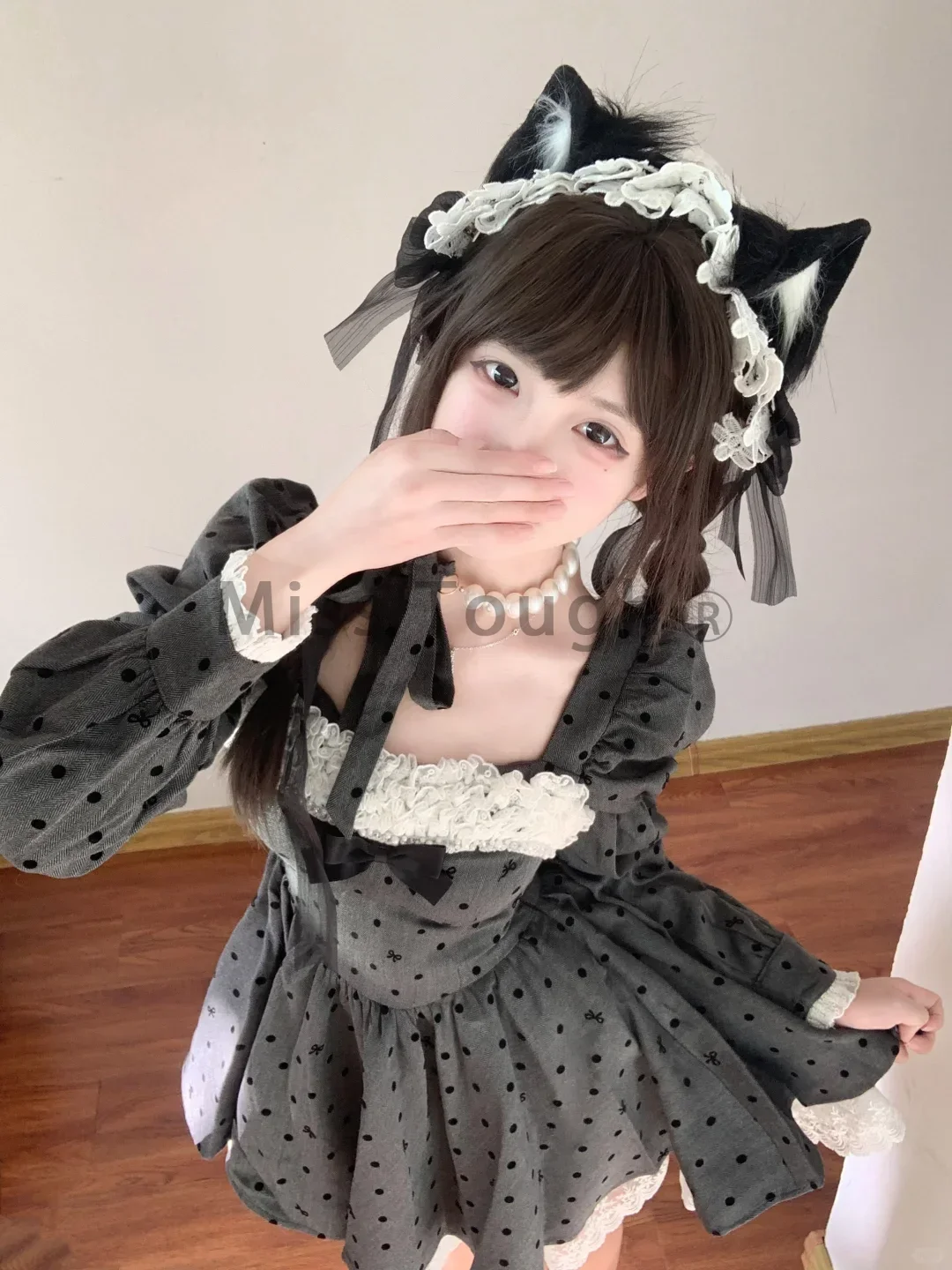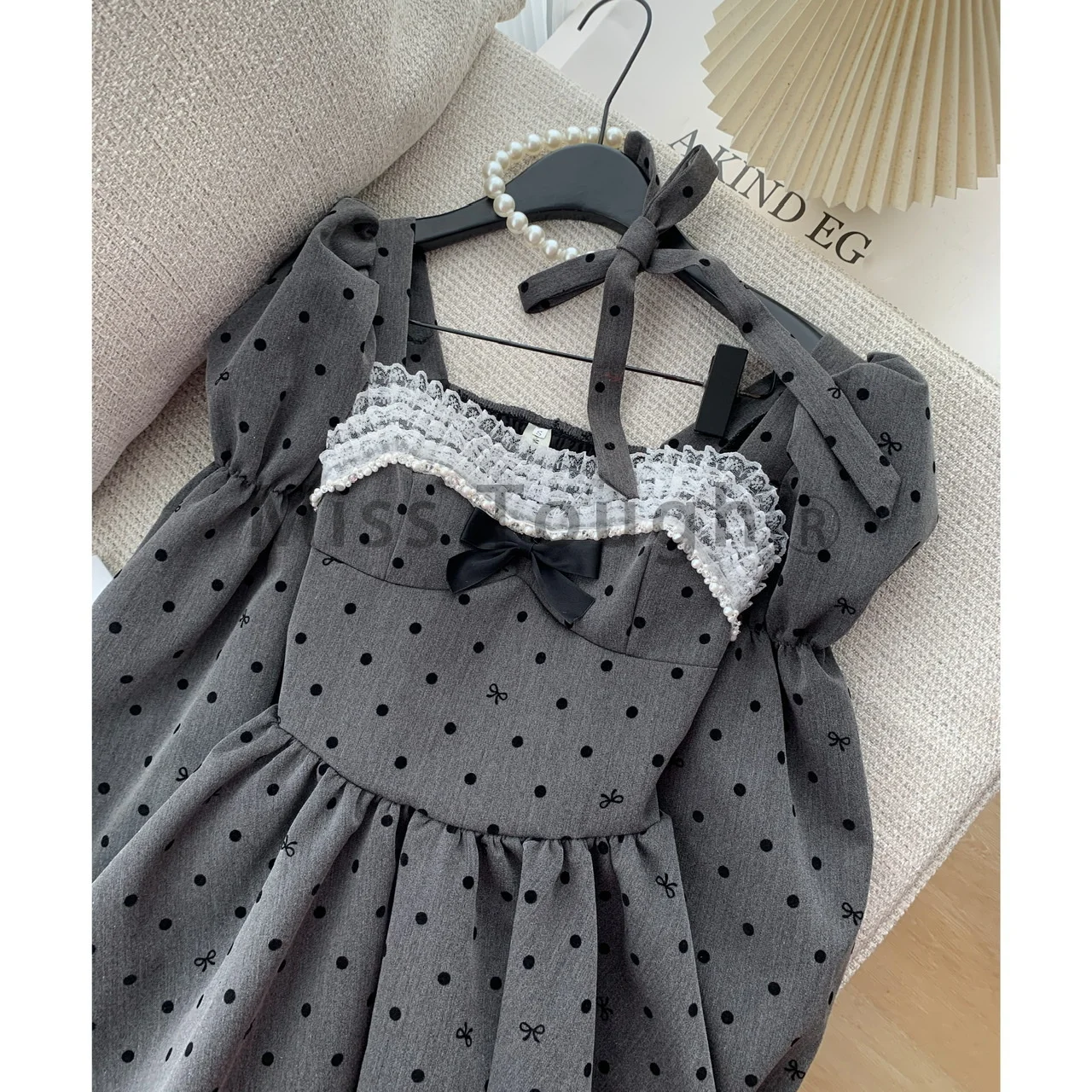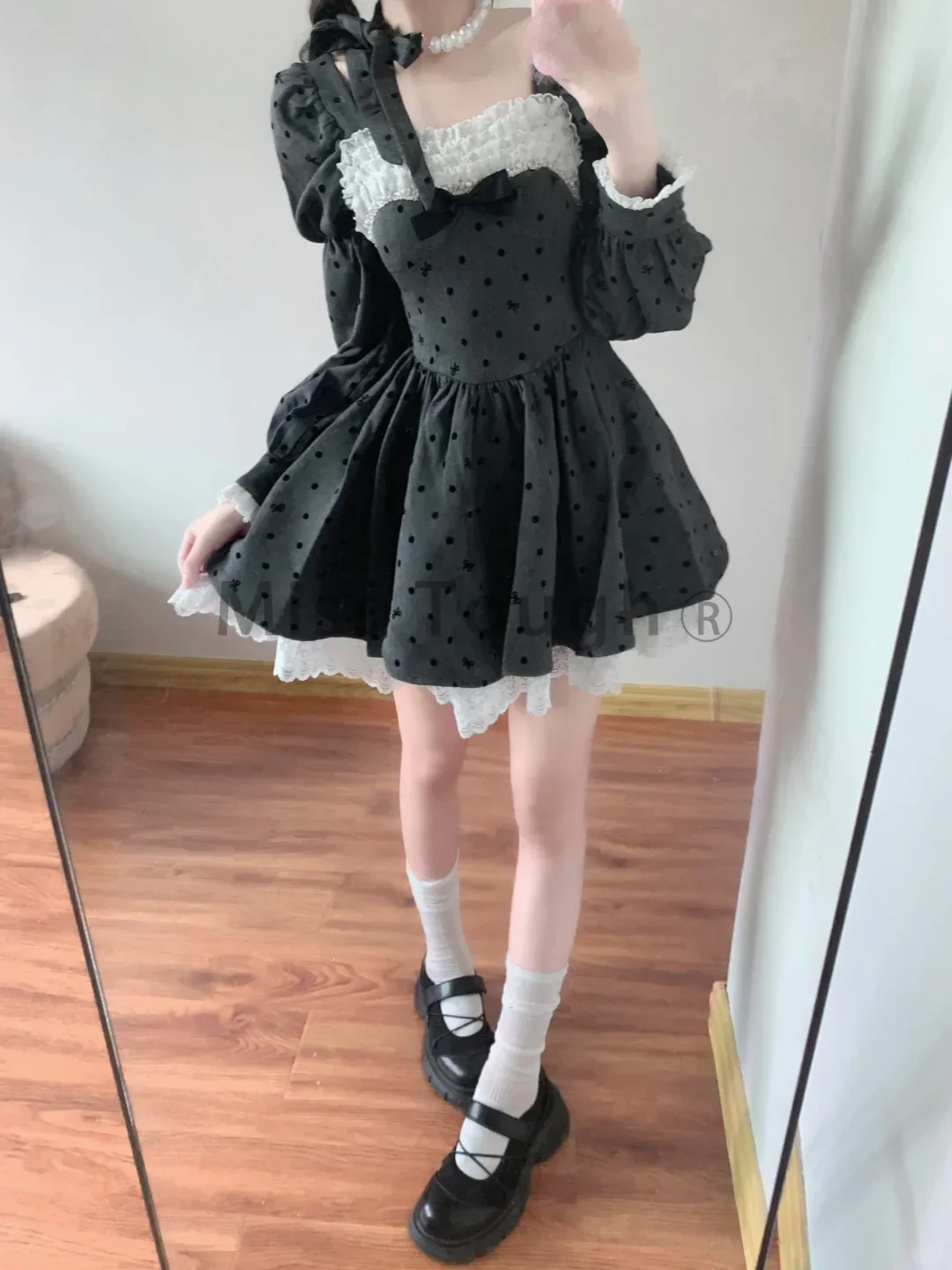 GETADME Women Elegant Prom Gown Girl Fairy Dress Mini Frocks Long Sleeve Polka Dot One-Piece Evening Coquette Party 2000s Y2k Birthday