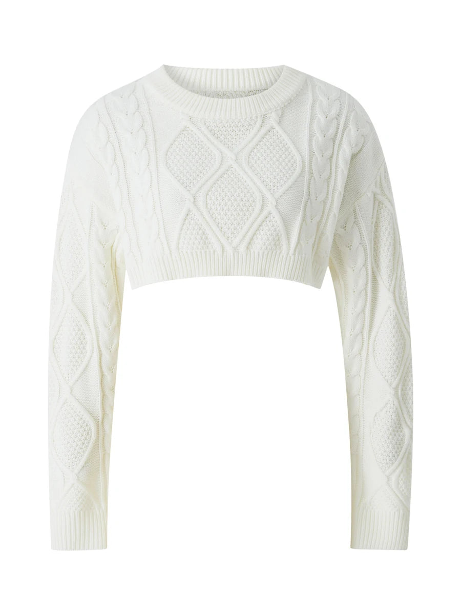 GETADME Women Fashion Cropped Knitted Sweater Solid Color Round Neck Long Sleeve Pullovers Spring Autumn Casual Tops