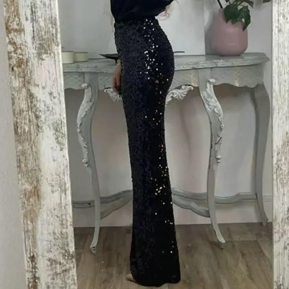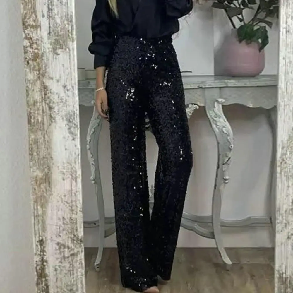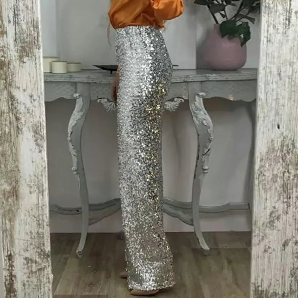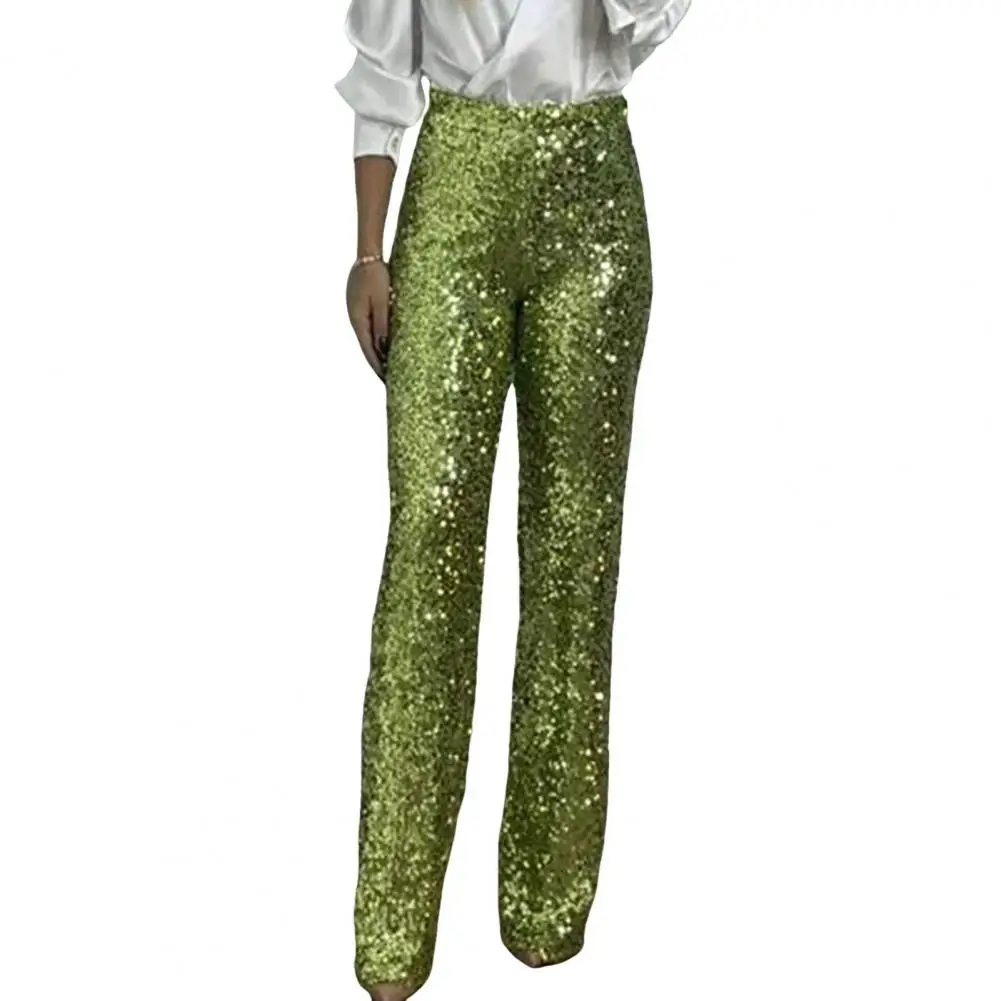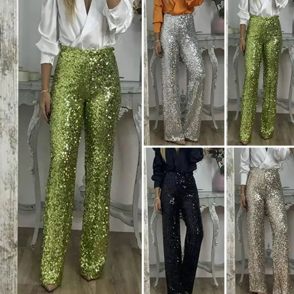 Women Pants Sequins High Waist Flared Pants for Women Shimmering Slim Fit Trousers with Elastic Waistband Stylish for A