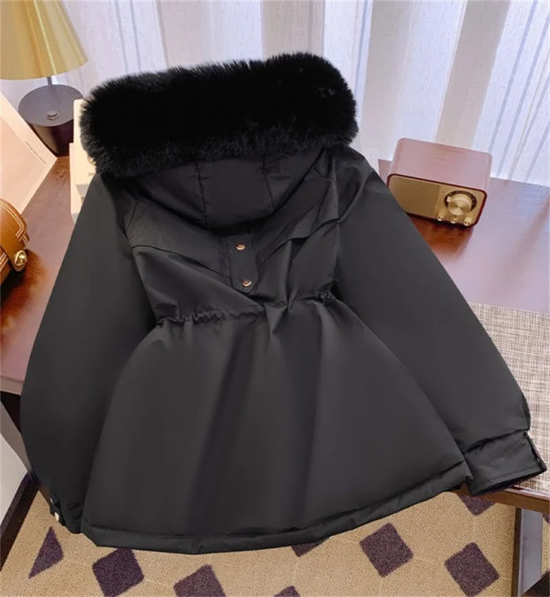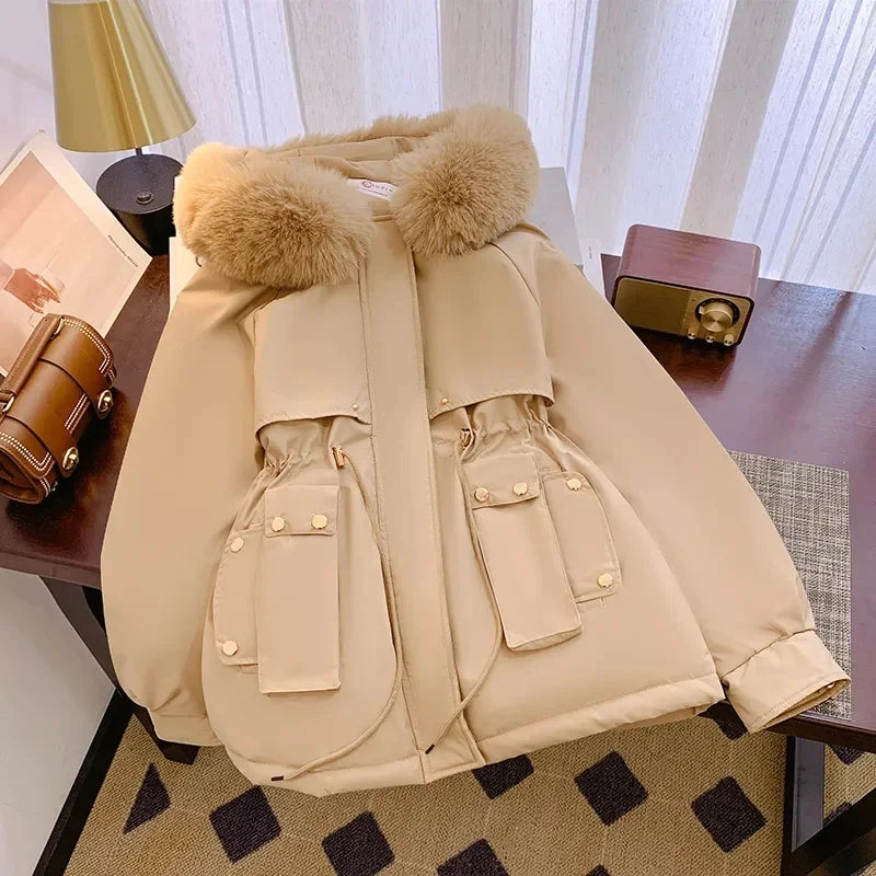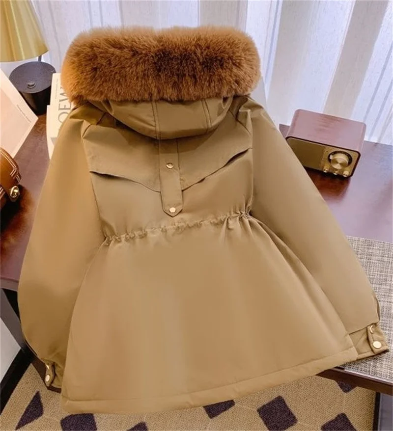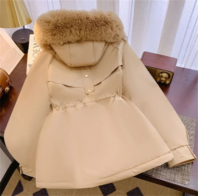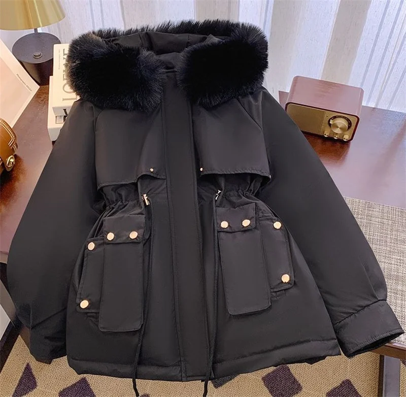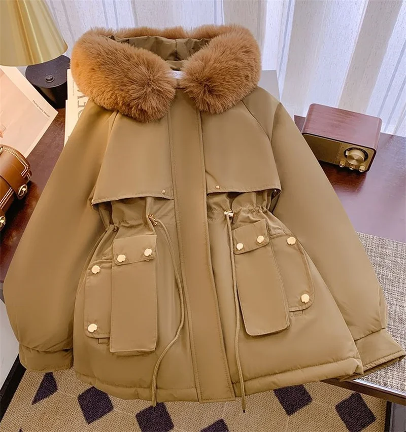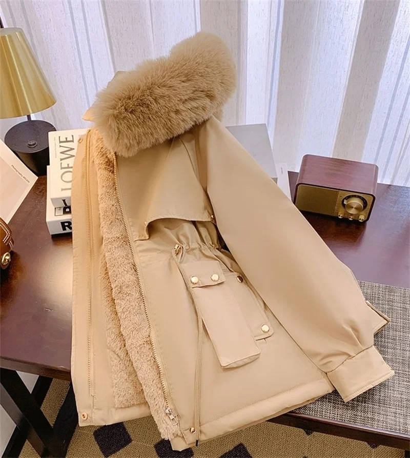 GETADME Women Parka Fashion Long Coat Wool Liner Hooded Parkas 2025 New Winter Jacket Slim with Fur Collar Warm Snow Wear Padded Clothes