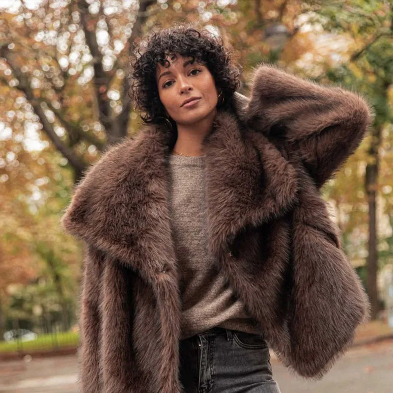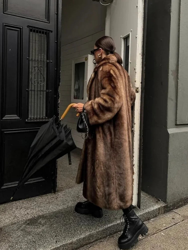 GETADME Women Retro Luxury Faux Fur Coat Fashion Lapel Single Breasted Long Sleeve Pockets Jacket Winter Plush Warm High Street Outwear