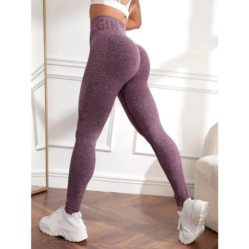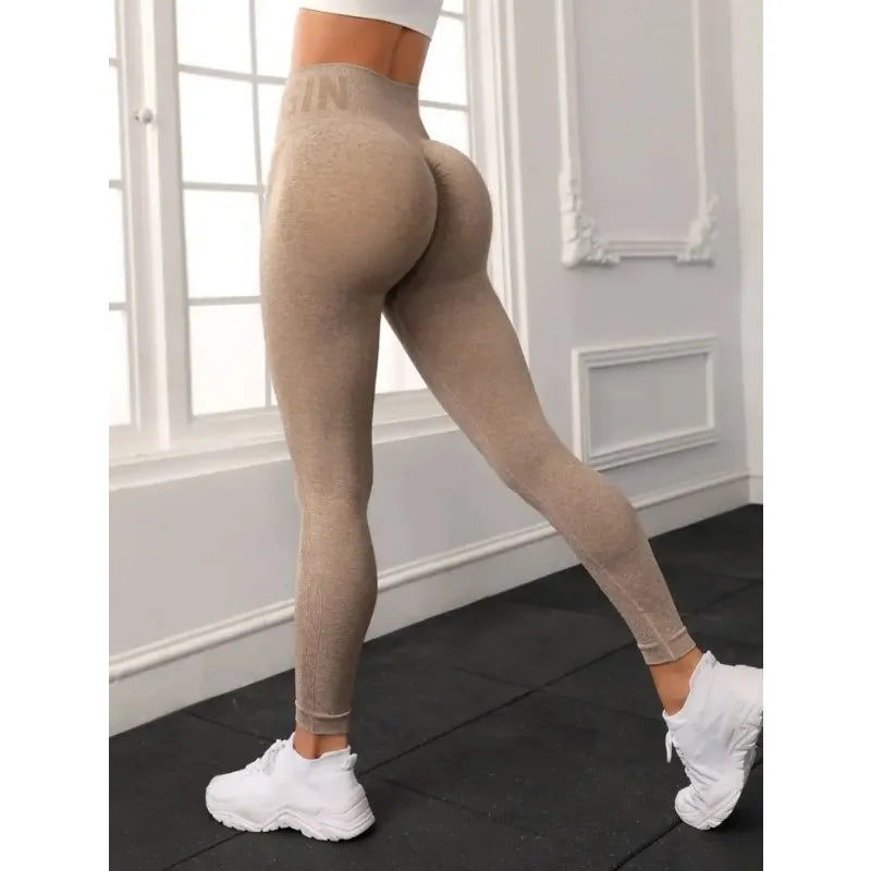 GETADME Women Summer Seamless Solid Sports Leggings with High Waist Hip Lifting Letter Pants Fitness Yoga PantsTraining Leggings