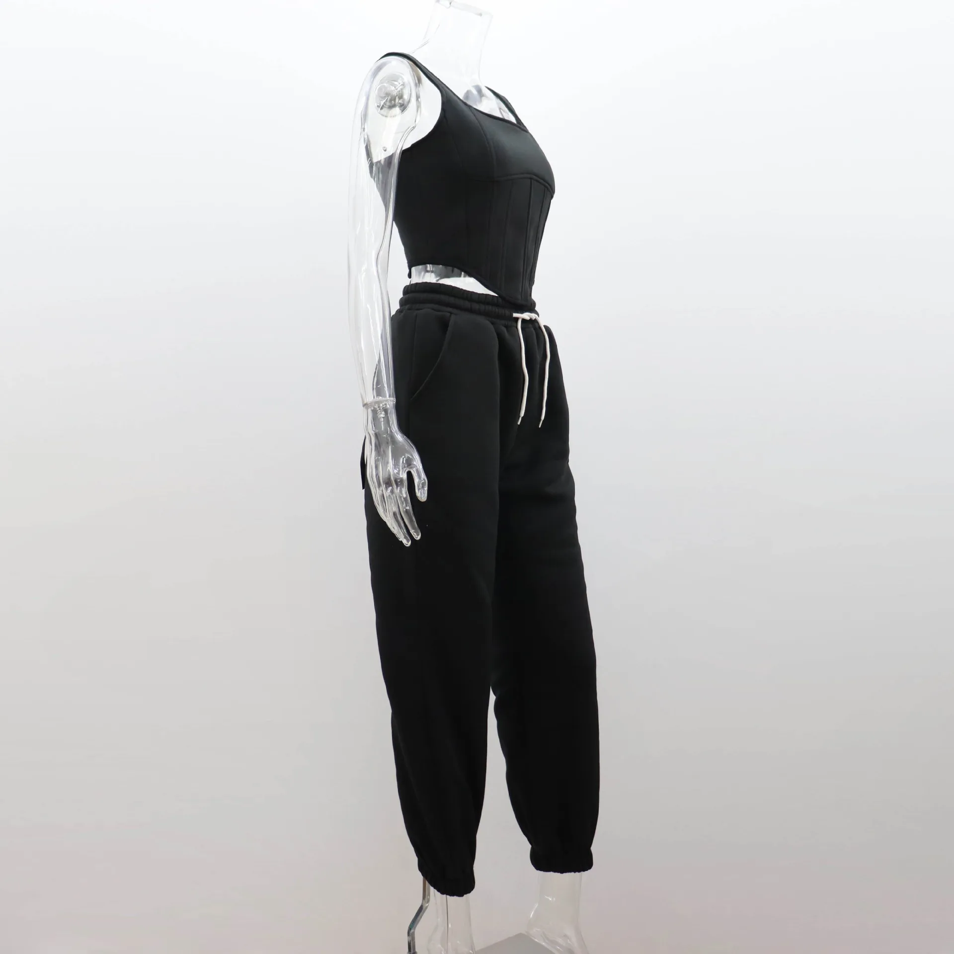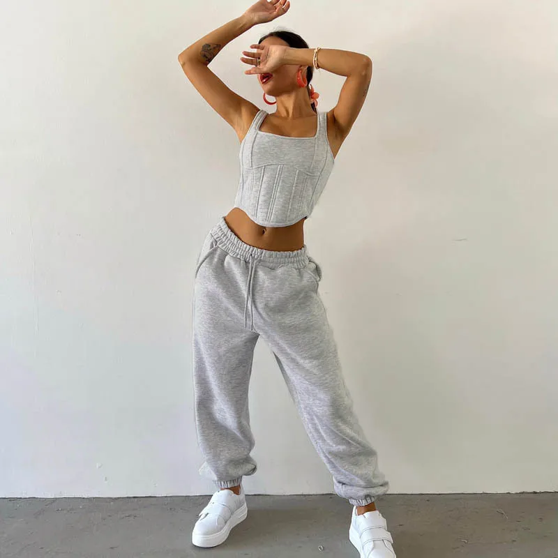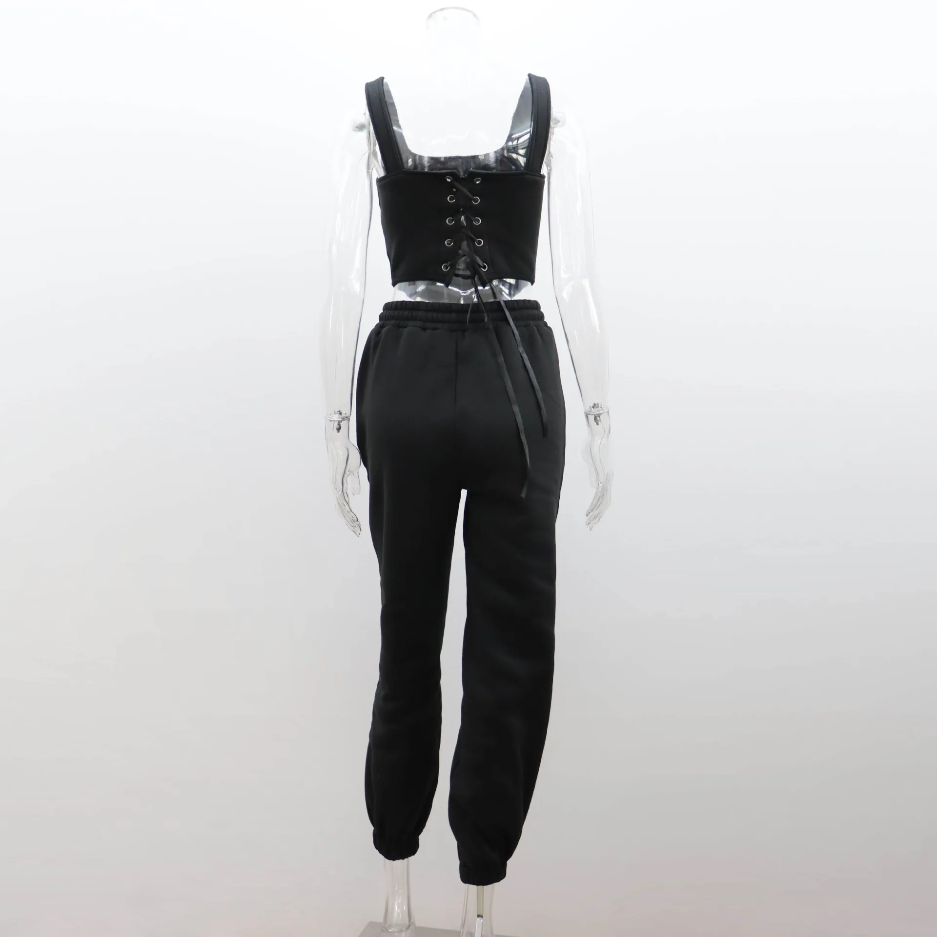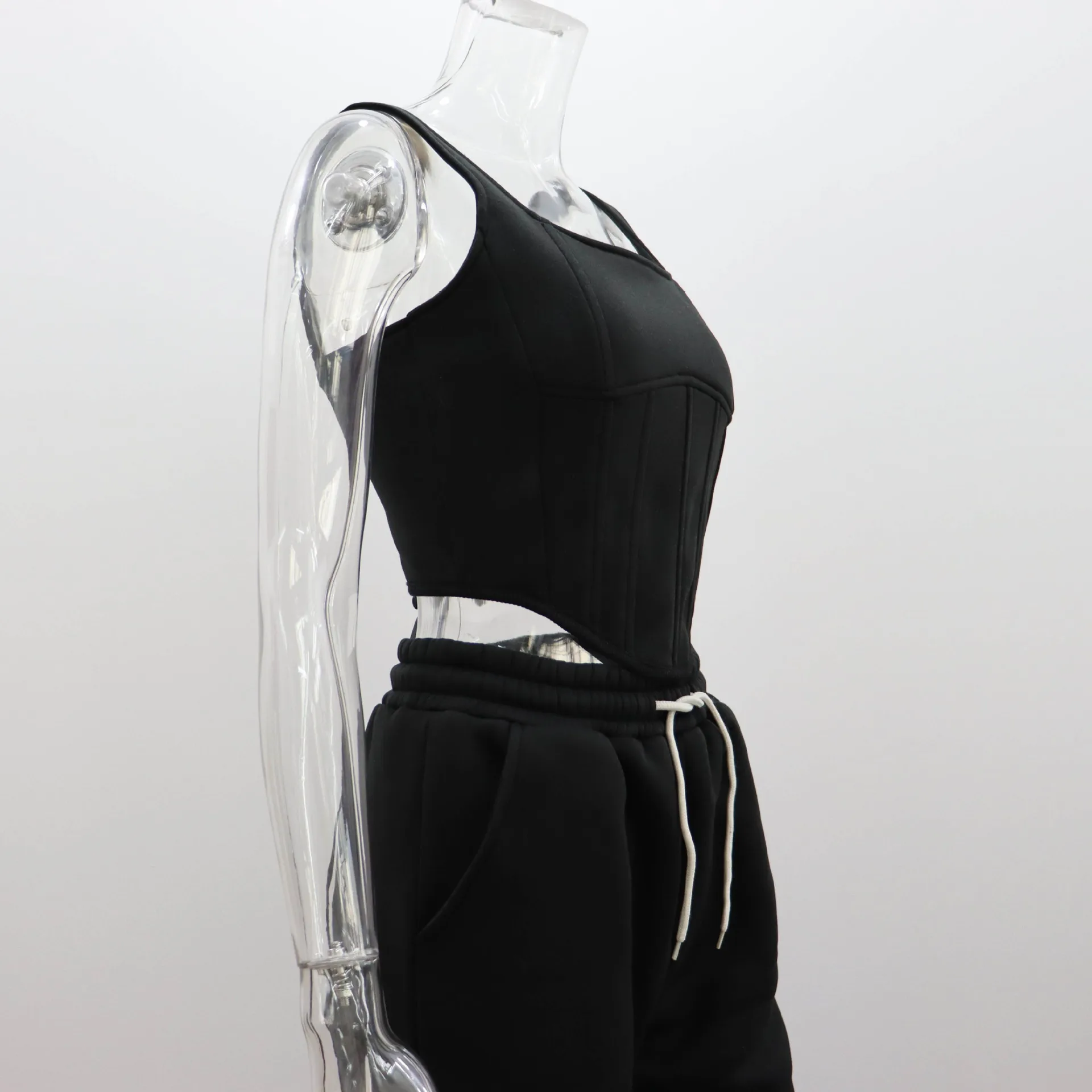 GETADME Women's casual sweatpants set 2025 autumn and winter new belted hooded short hoodie corset of three-piece trousers