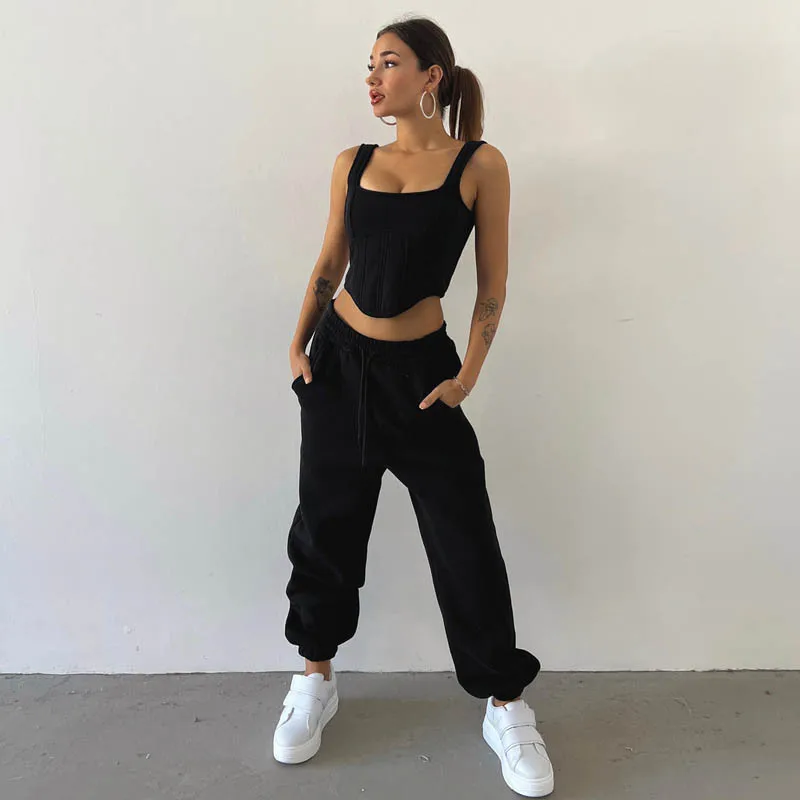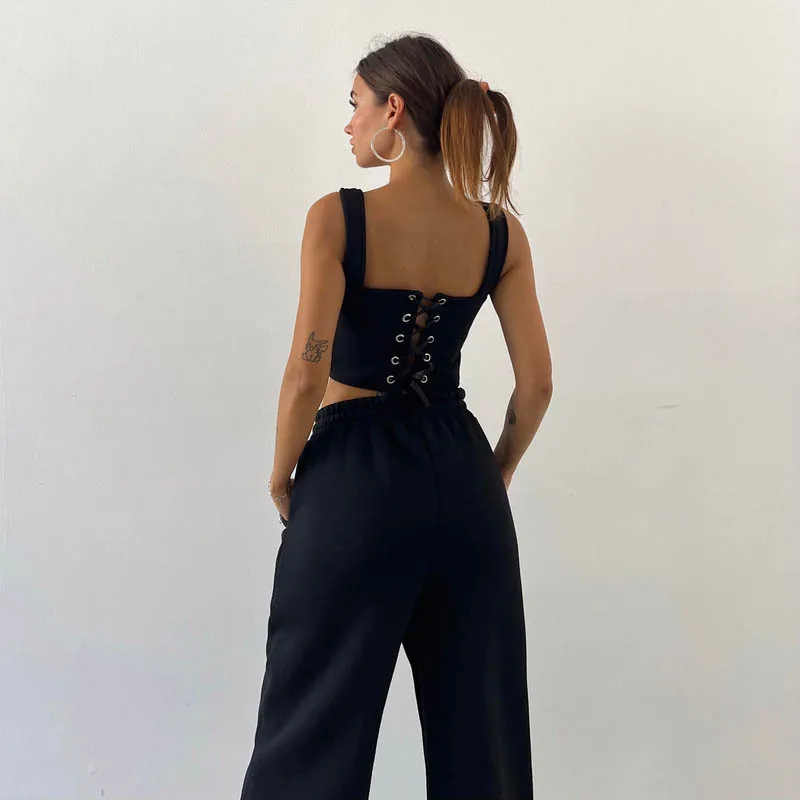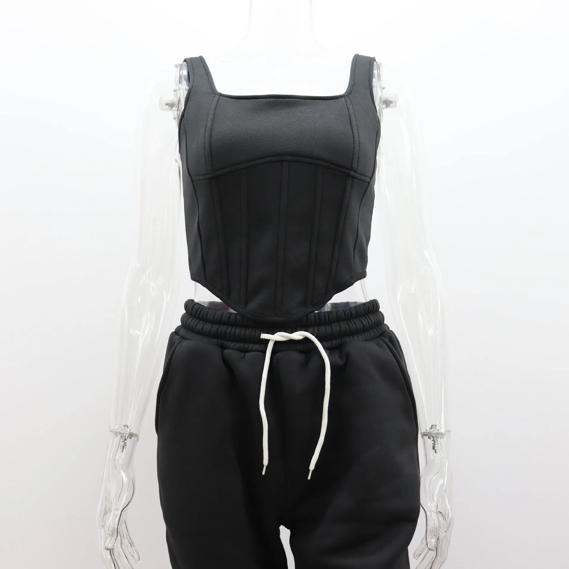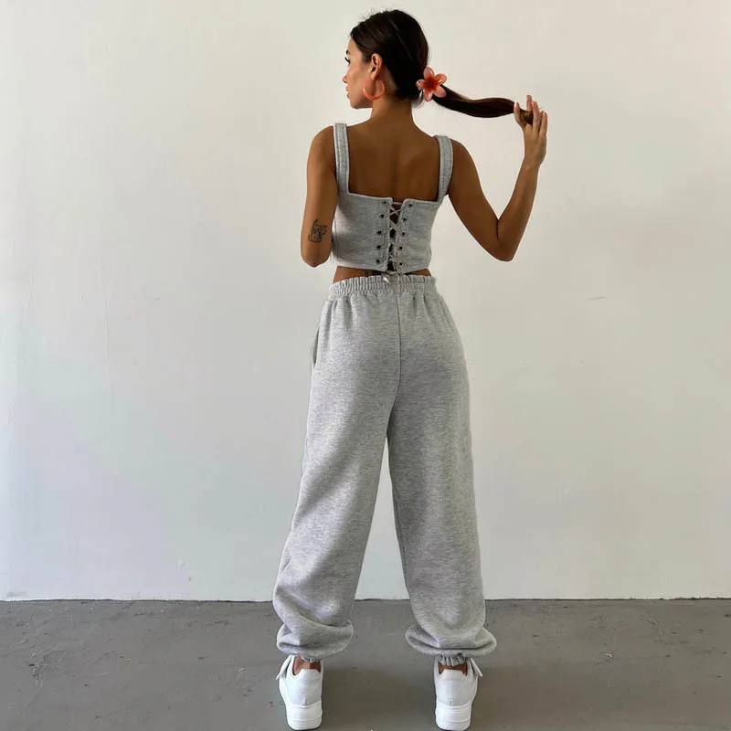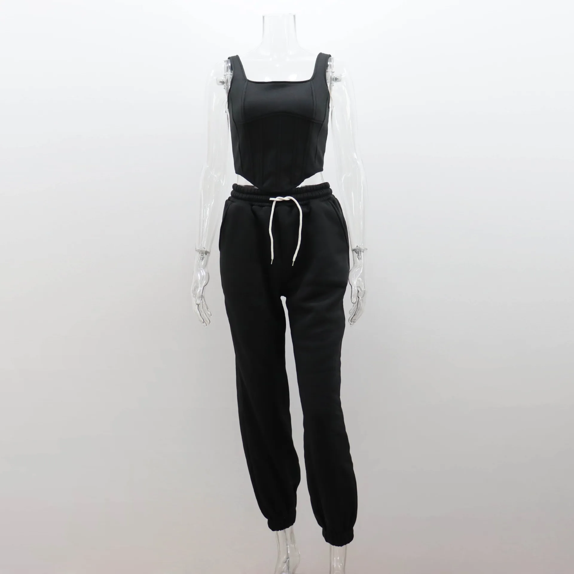 GETADME Women's casual sweatpants set 2025 autumn and winter new belted hooded short hoodie corset of three-piece trousers