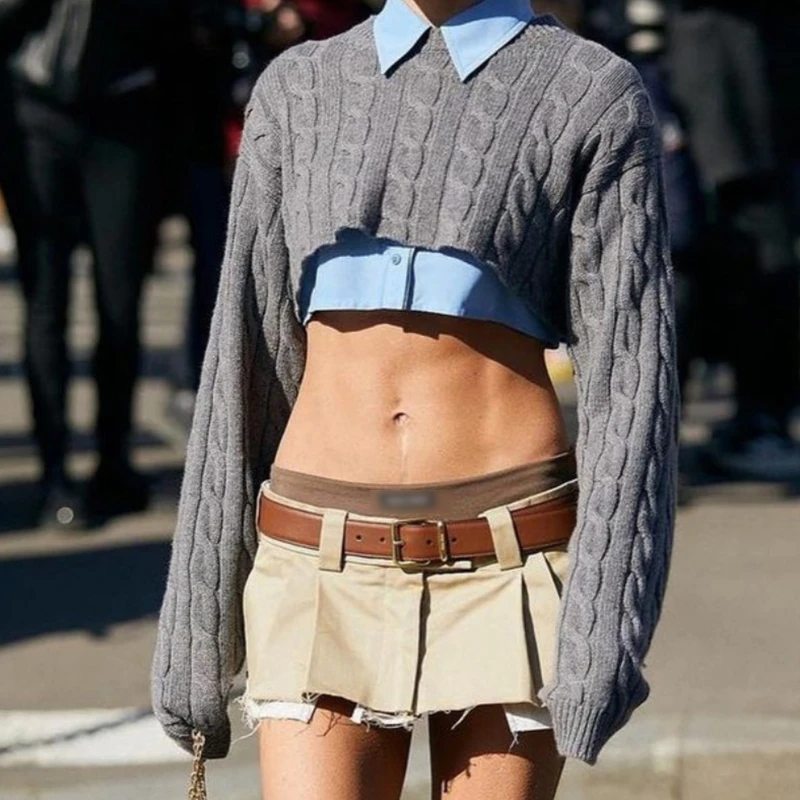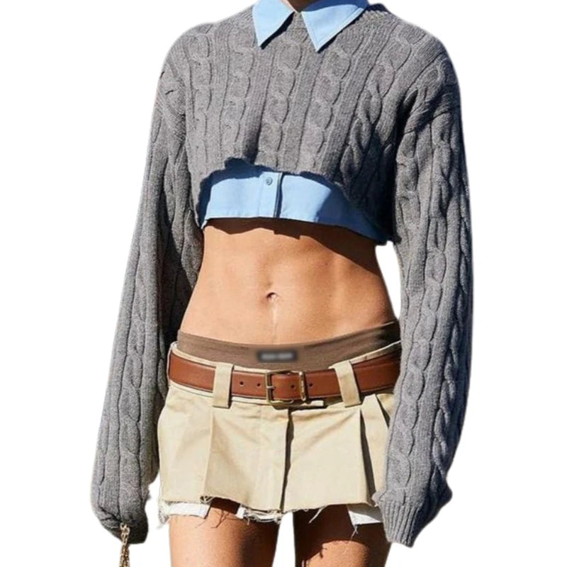 GETADME Womens Chunky Cable Knitted Crochet Sweater Y2k Crop Tops Long Sleeve T-Shirts Teen Summer Clothes Streetwear