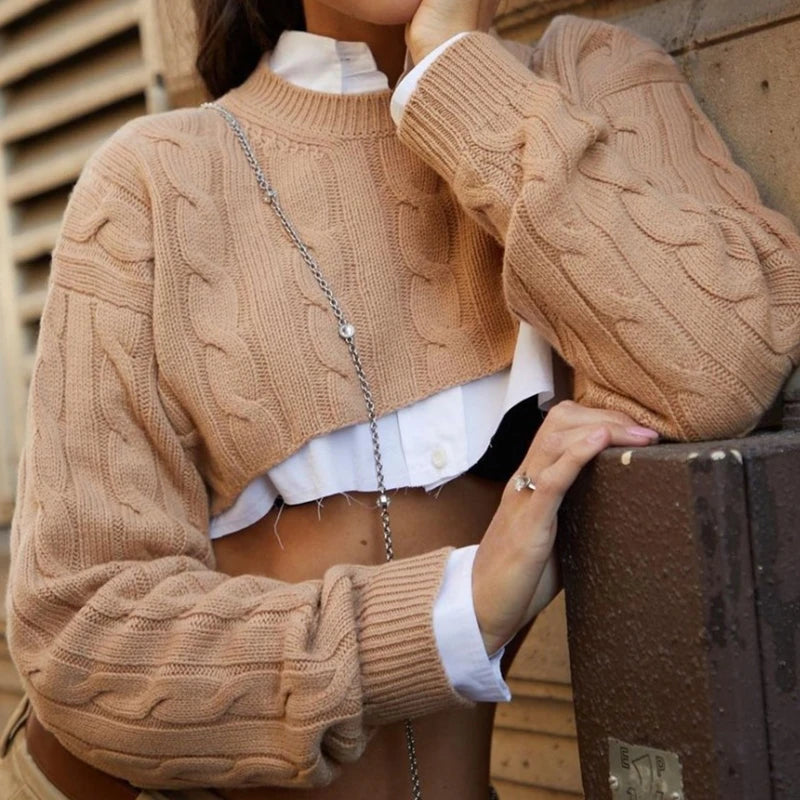 Feature, long sleeve ,knitted crop top,cable knitted crochet crop top,short knitted tops,mini fall sweater.