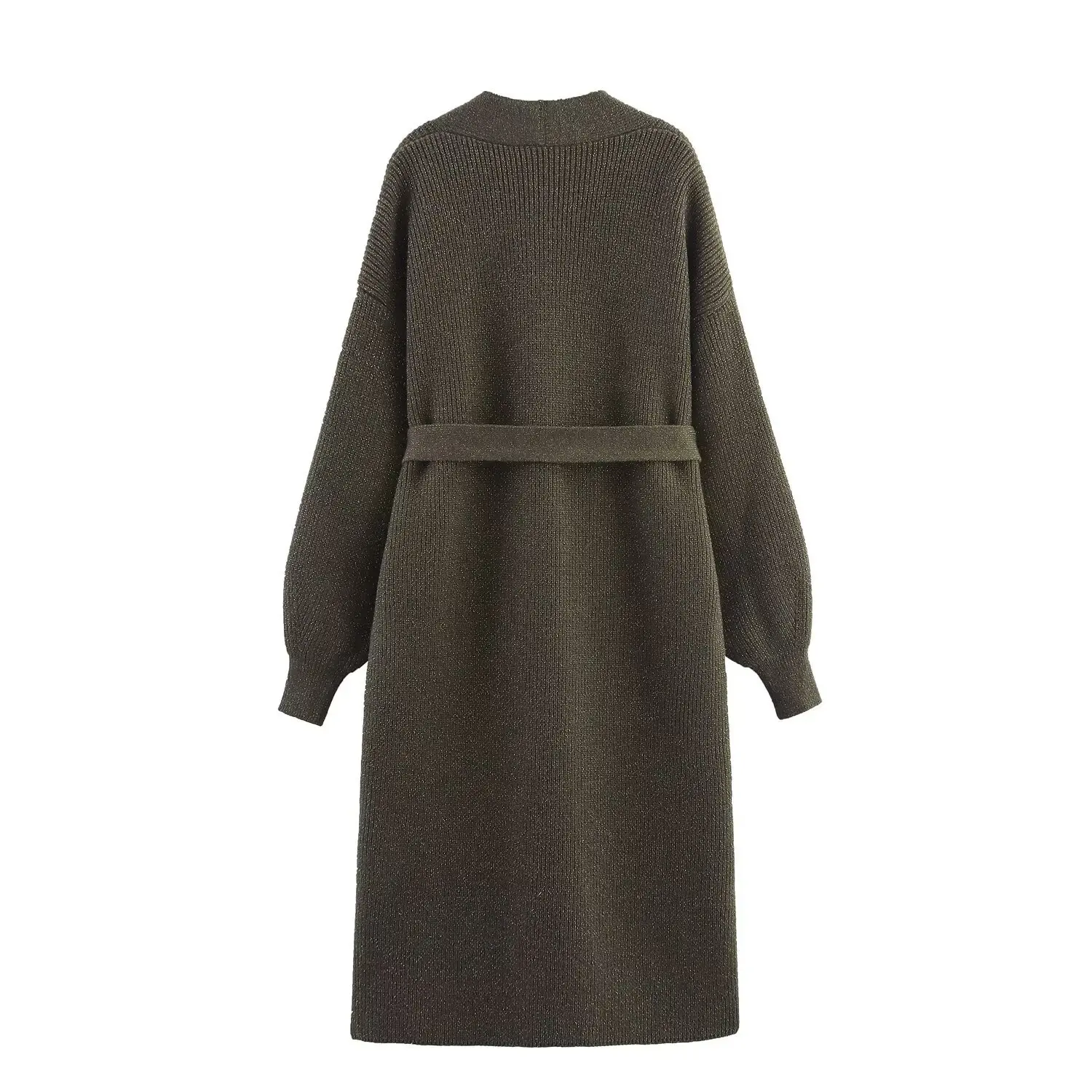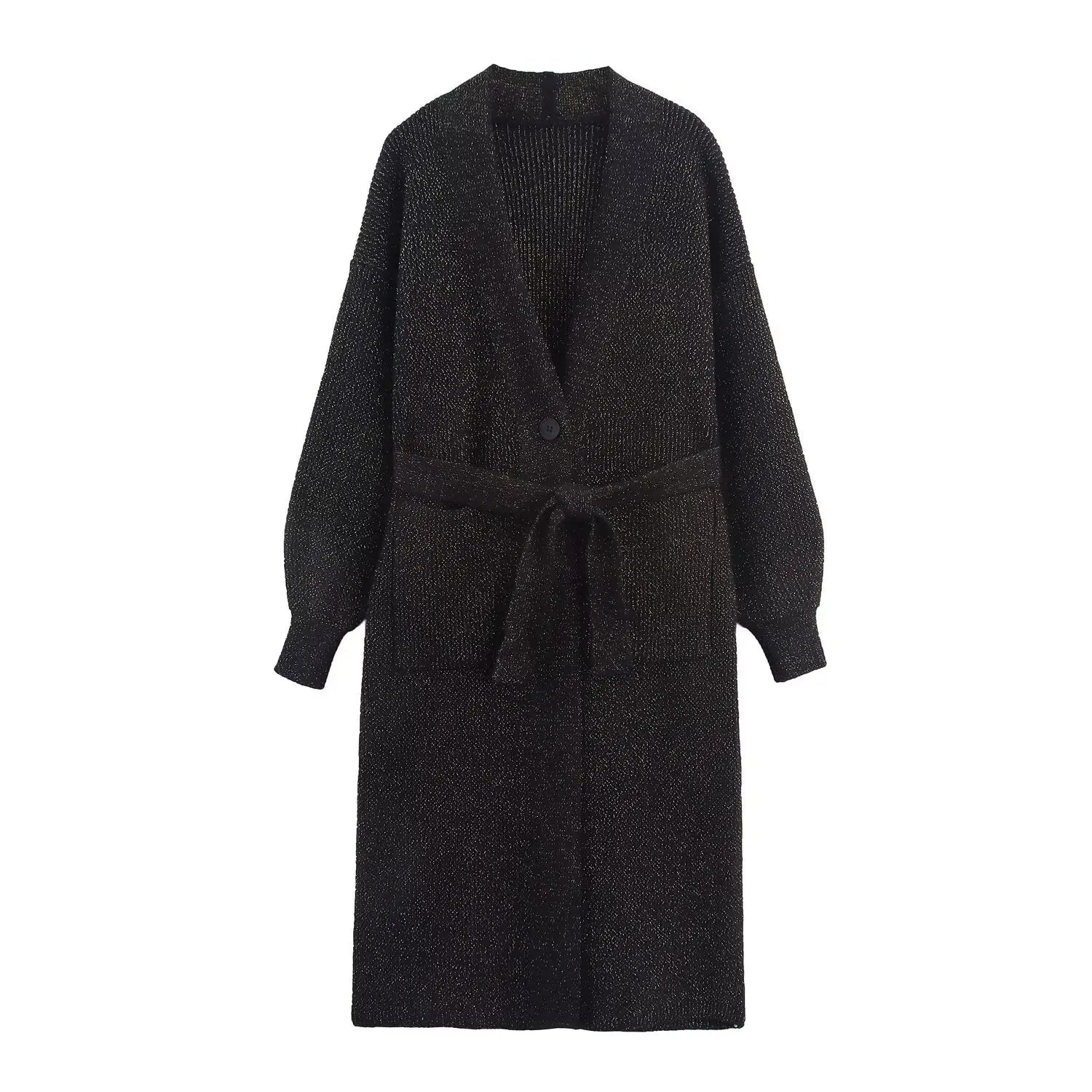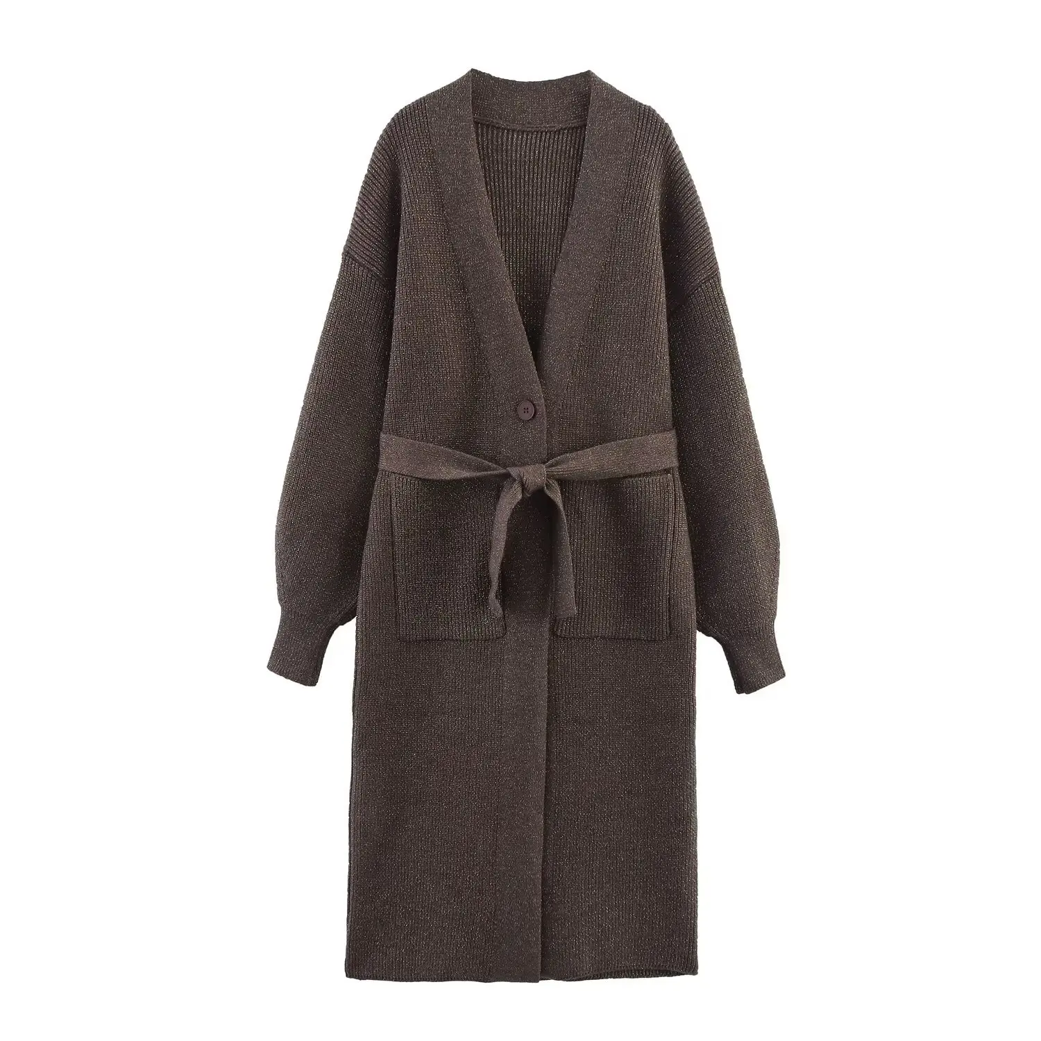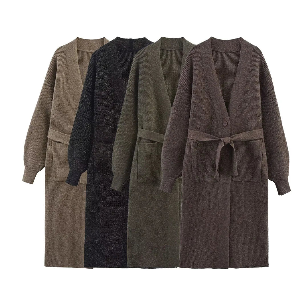GETADME Women's Faionable Knitted V Neck Button Belt Sweater Large Cardigan Autumn Winter 2025 Long Sleeve Knitted Open Cardigan