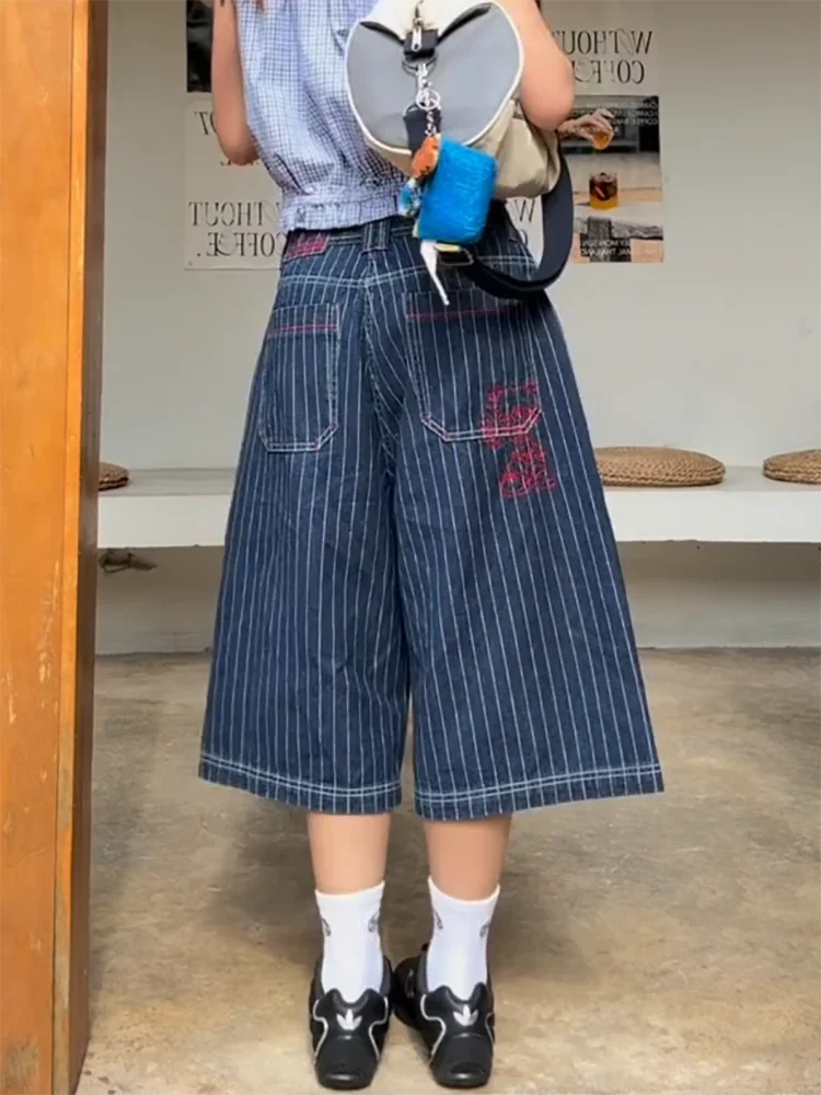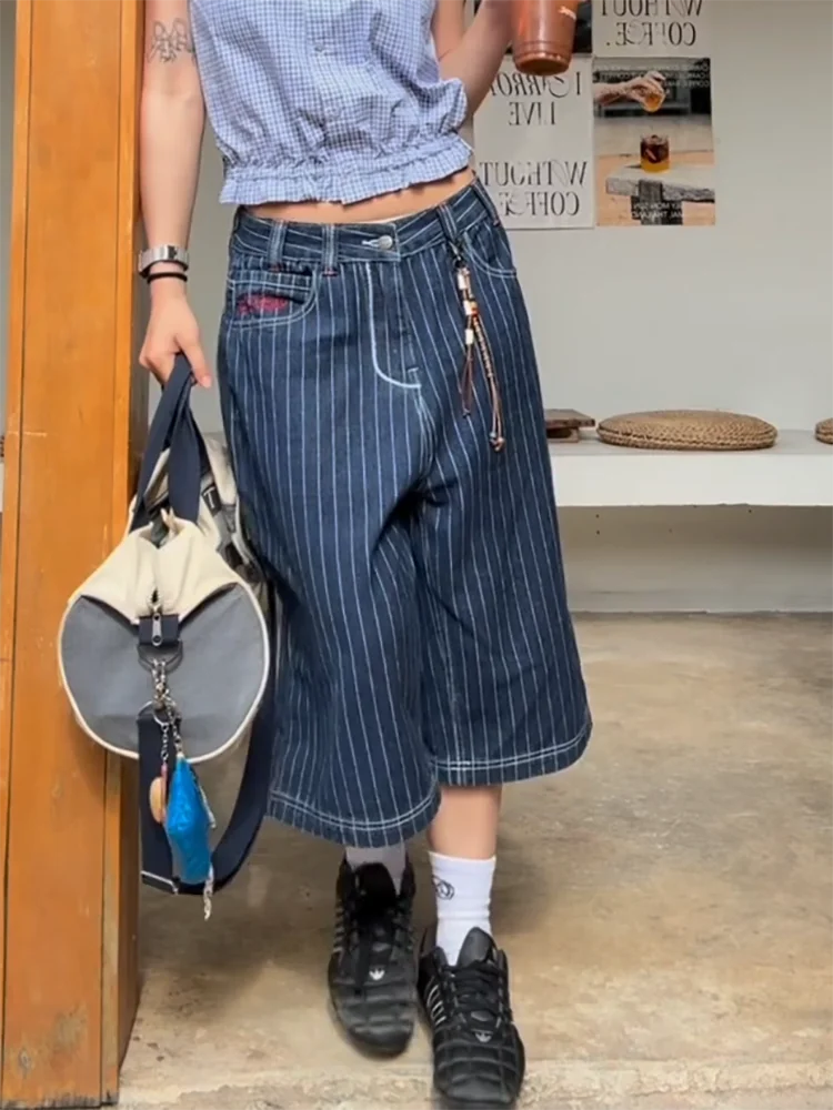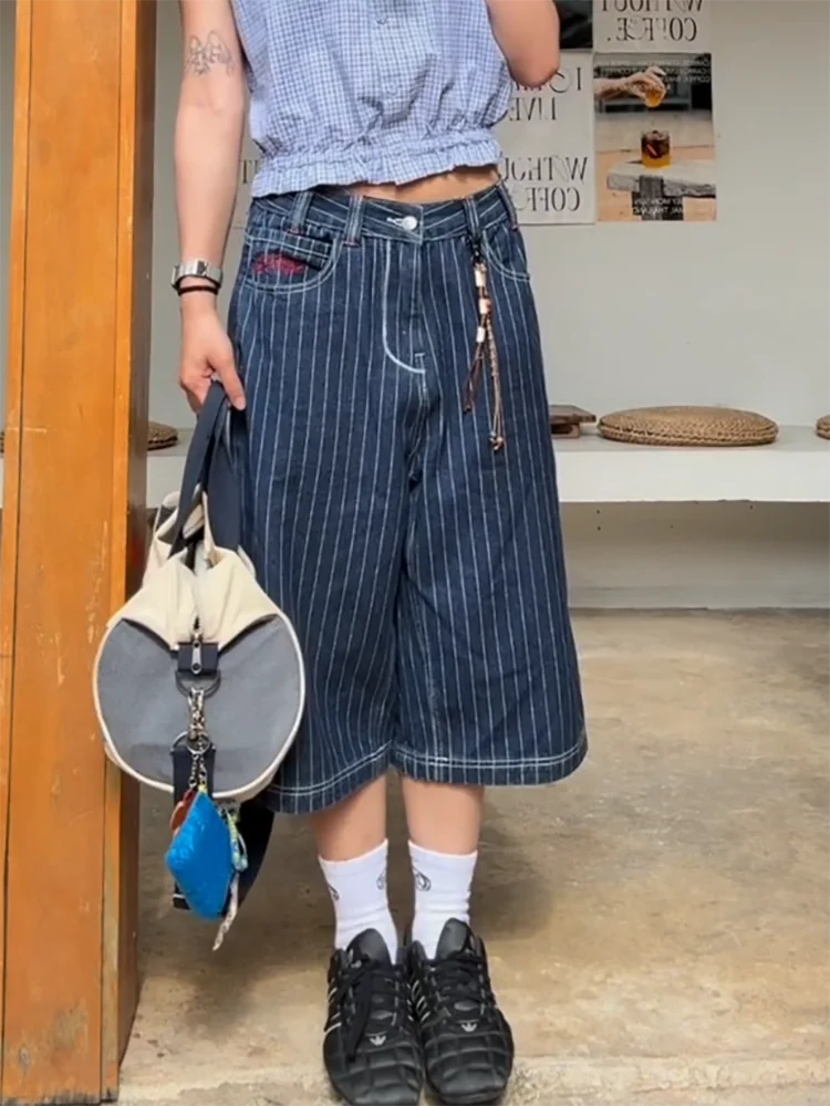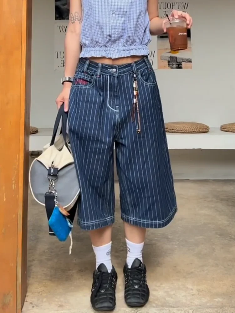 GETADME Women's Light Blue Calf Length Cargo Jeans Harajuku Y2k Baggy Denim Trousers Japanese 2000s Oversize Jean Pants Vintage Clothes