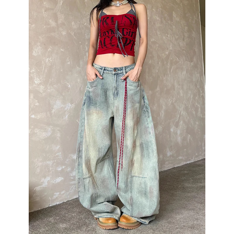 GETADME Women's Light Blue Y2k Baggy Jeans Harajuku Aesthetic Japanese 2000s Style Denim Trousers Vintage Cargo Pants Trashy Clothes