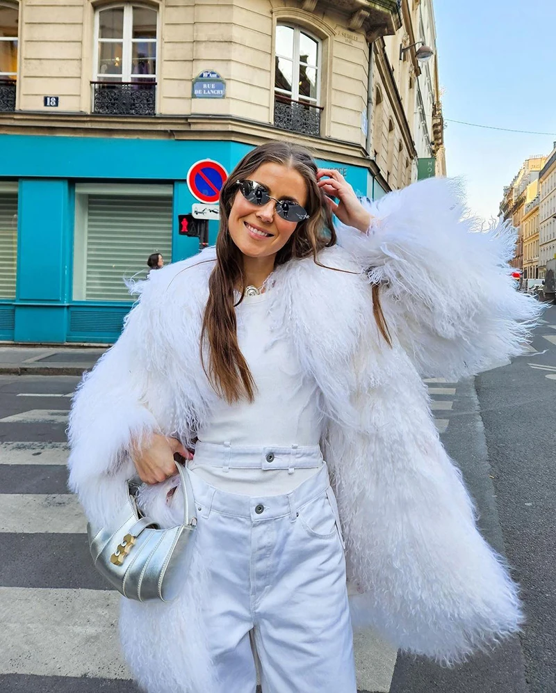 GETADME Women's Natural Mongolian Fur Coats Lady Luxury Winter Jackets Long Thick Warm Fluffy Outerwear S5456